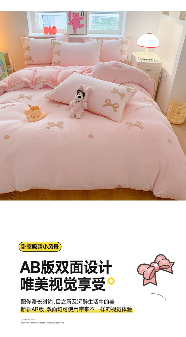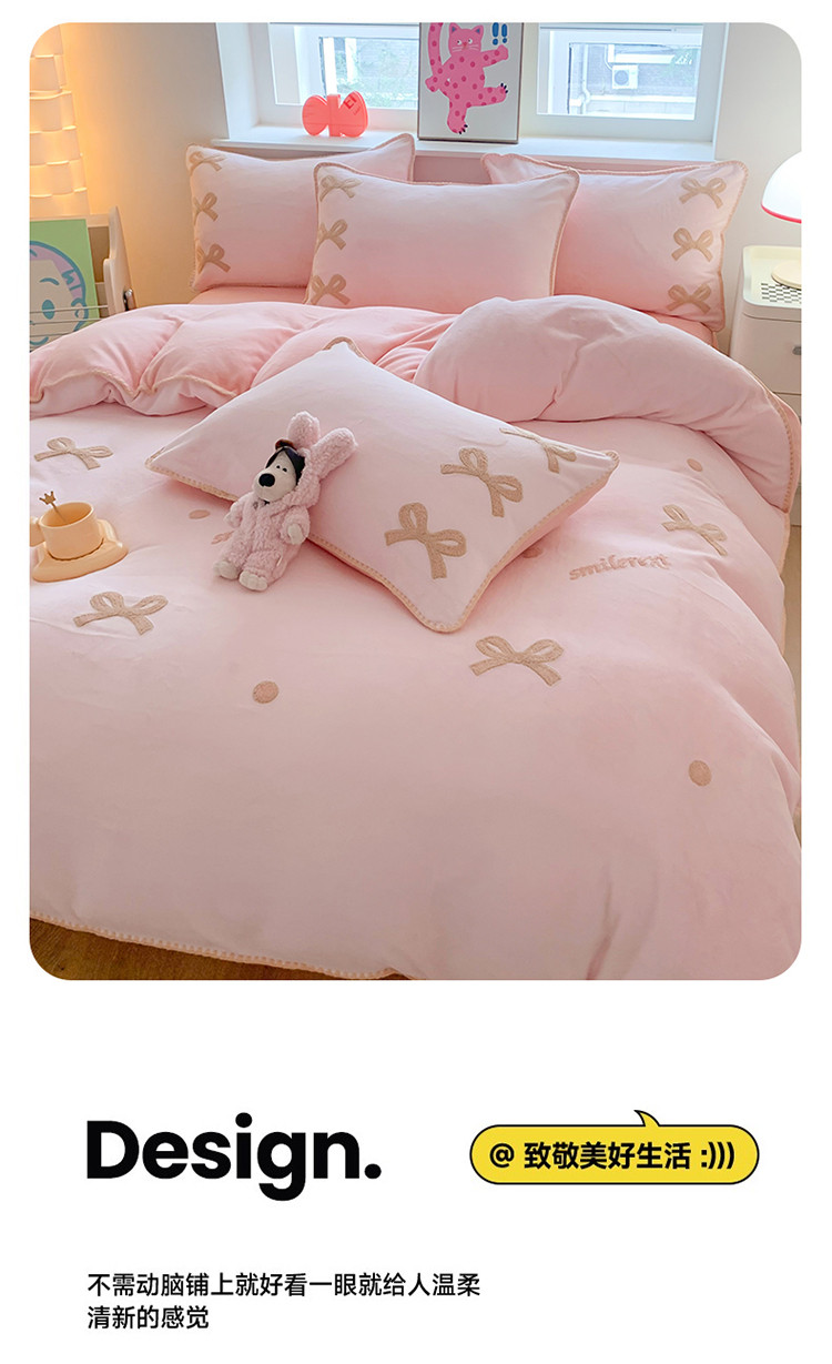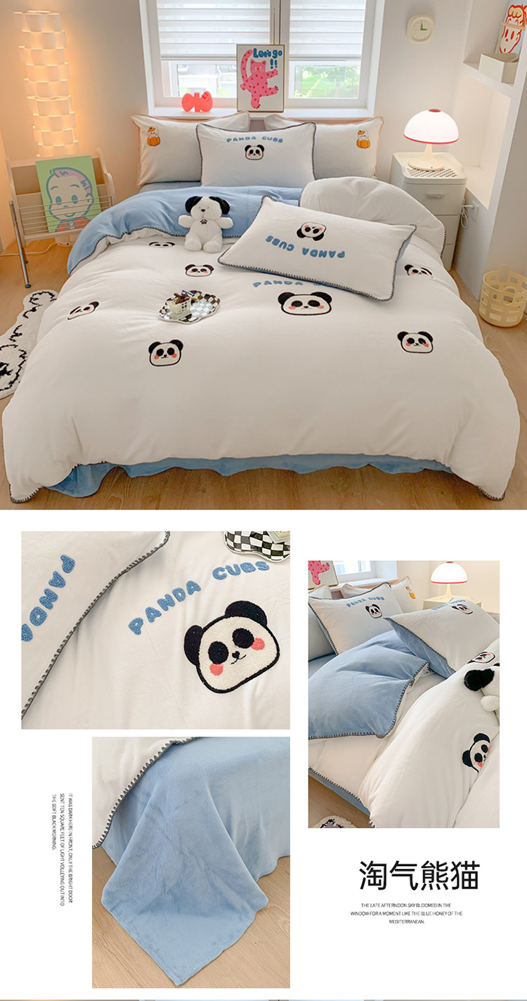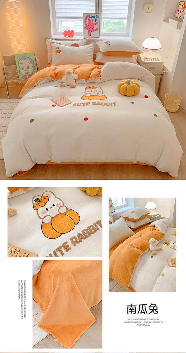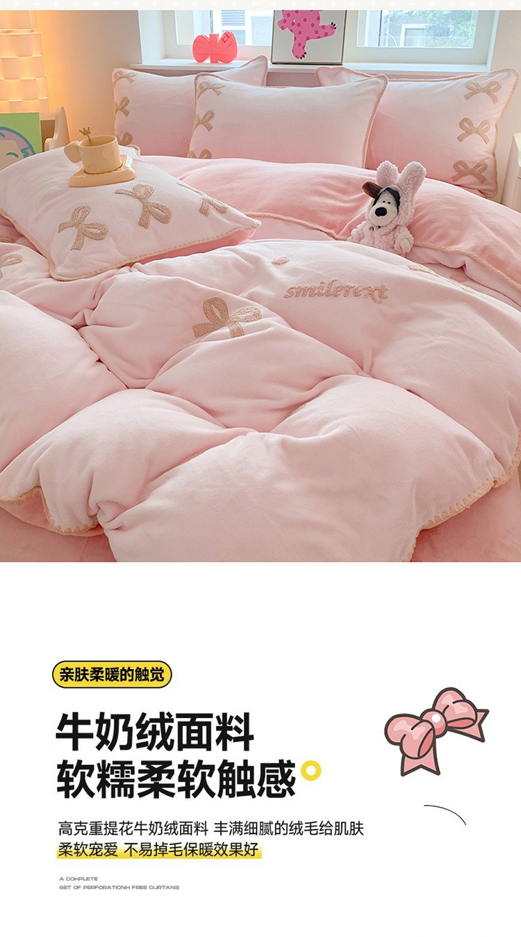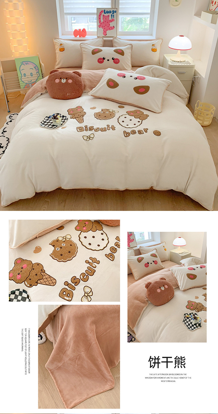 (总)蜜柚 2025新款秋冬高克重全消光牛奶绒小清新卡通贴布四件套,快乐鸭鸭-鹅黄,快乐鸭鸭-蓝,泡芙狗狗-白,泡芙狗狗-蓝