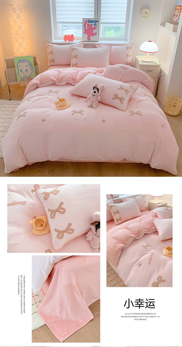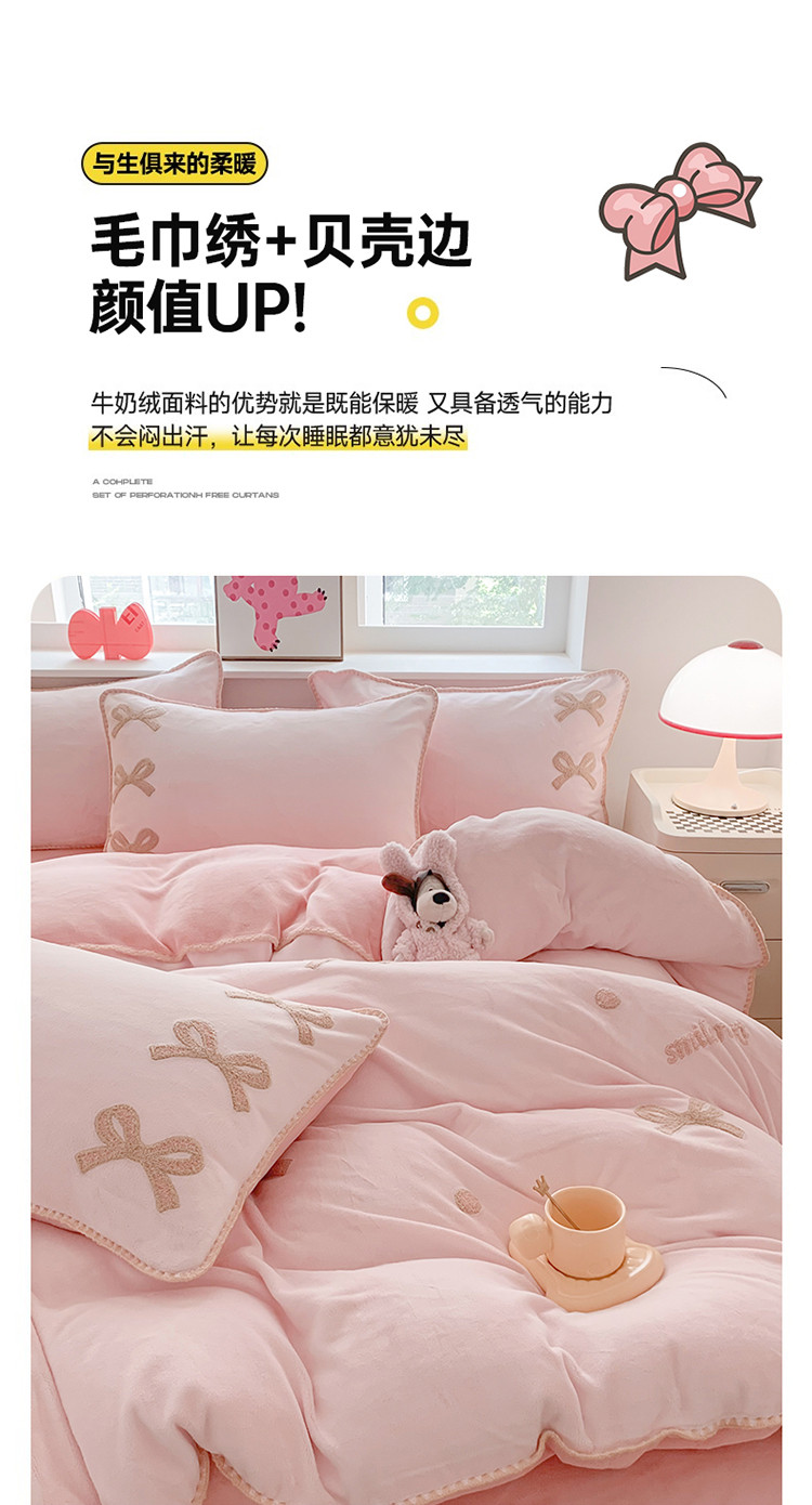 (总)蜜柚 2024新款直播电商爆款卡通高克重牛奶绒贝壳边毛巾绣四件套