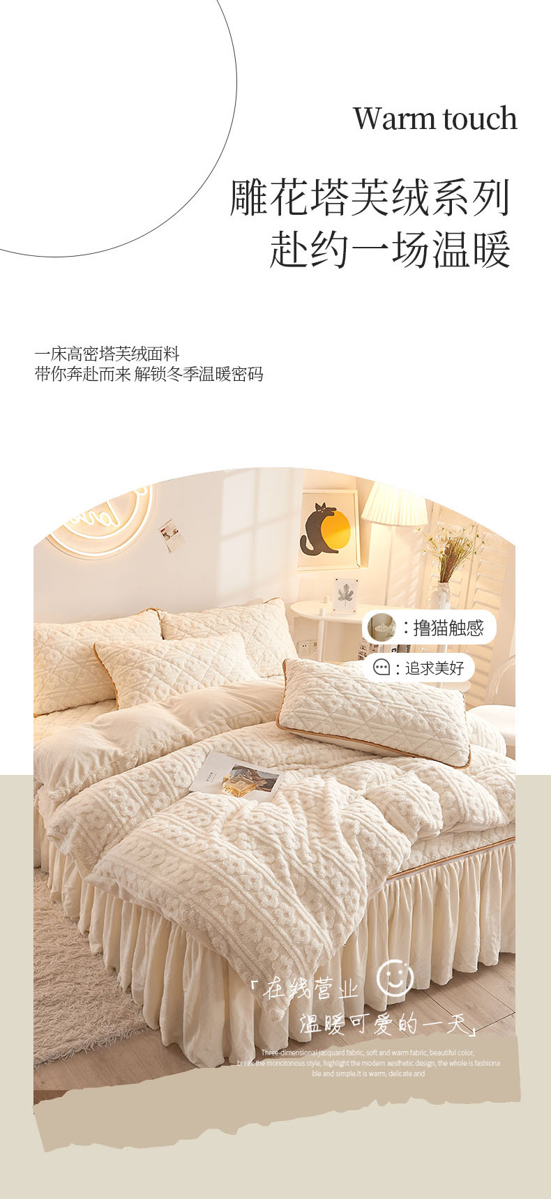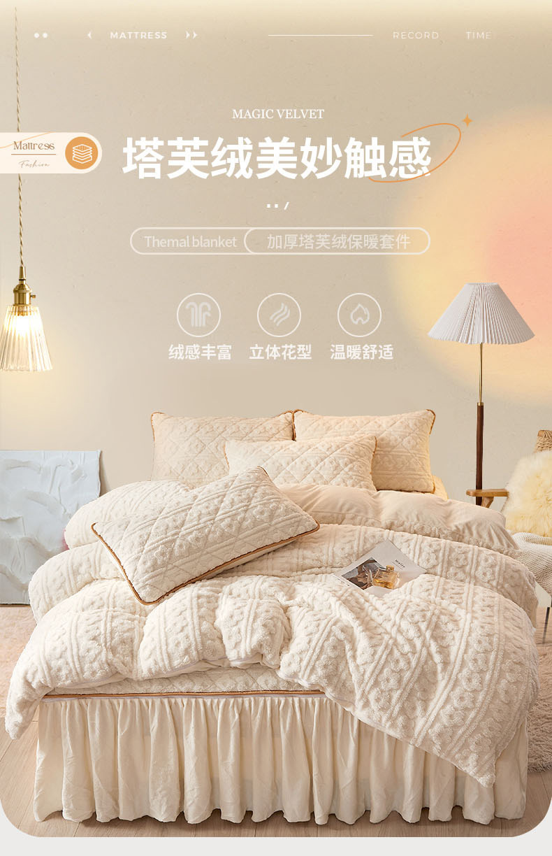当前位置: 91家纺网 > 商品网购 > 床品套件 > 四件套 > 牛奶绒四件套 > 恋尚 2023新款塔芙绒床笠加床裙四件套可脱卸款 塔芙绒-米白