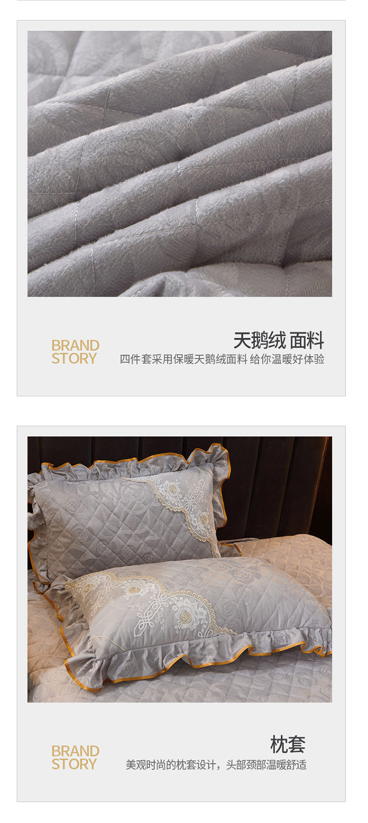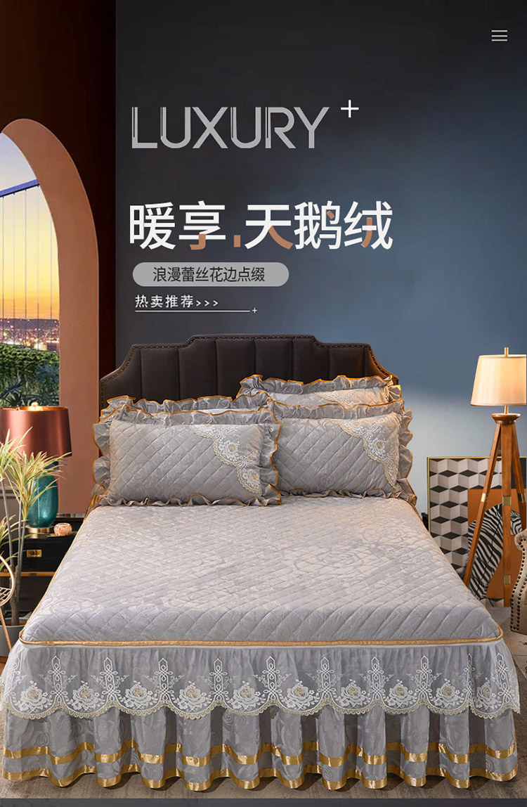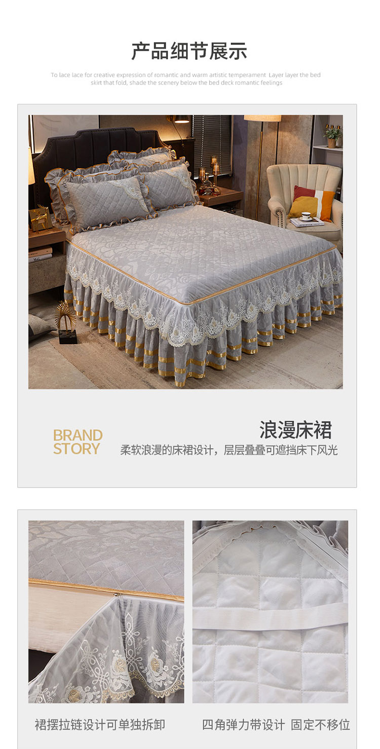 商品名称:恋尚 2023新款天鹅绒可脱卸夹棉床裙 床盖四件套 床裙 浅灰