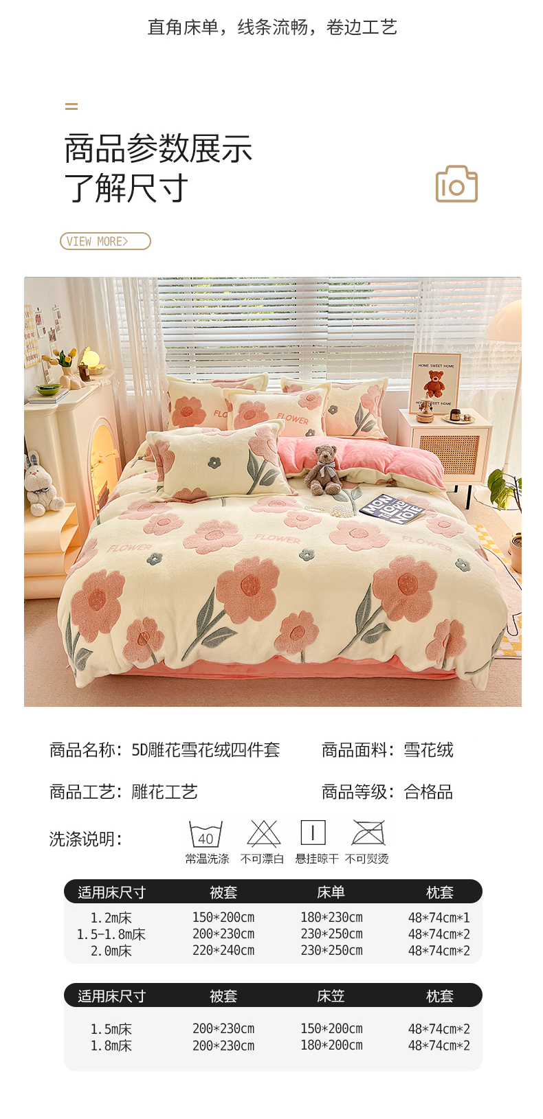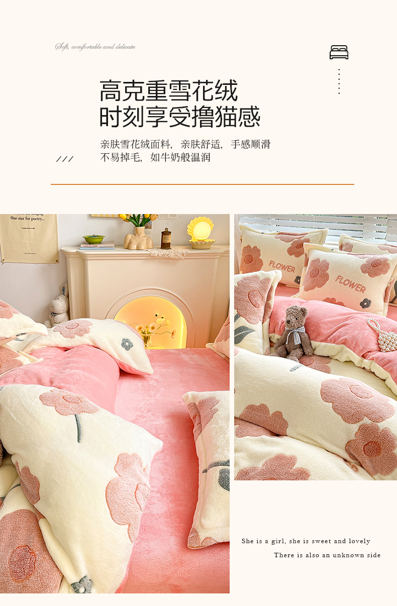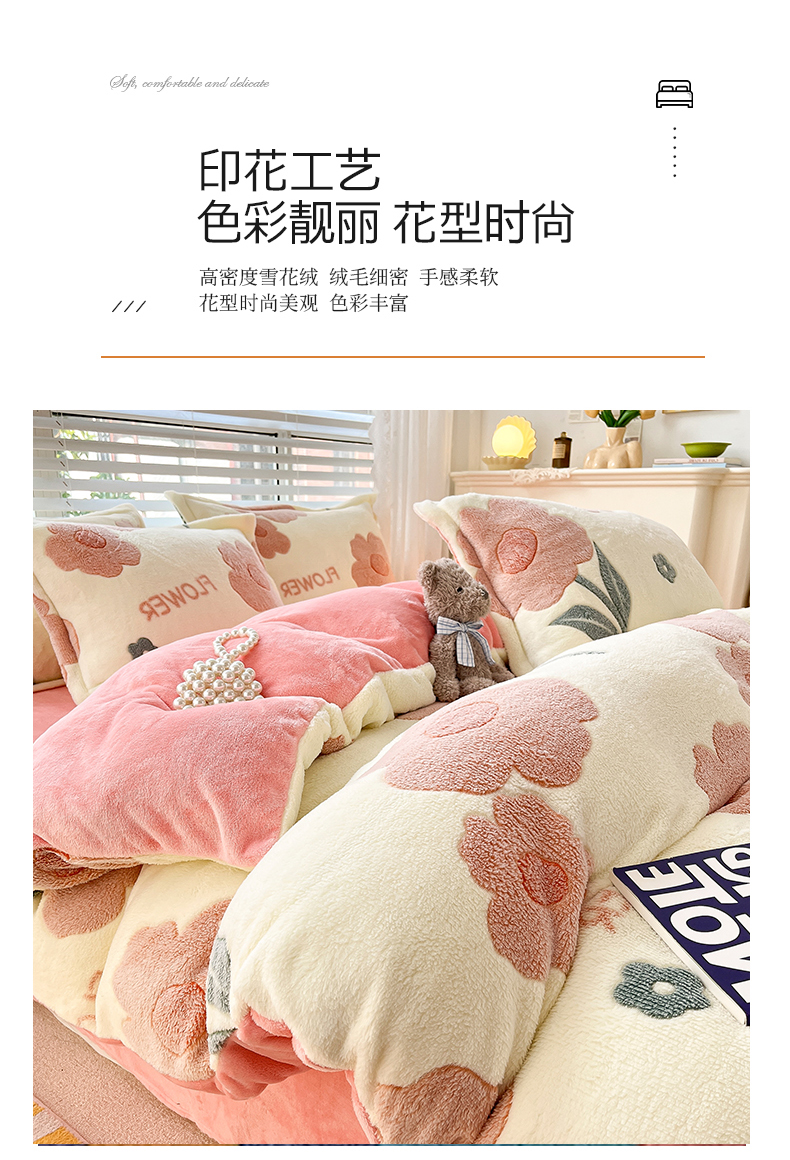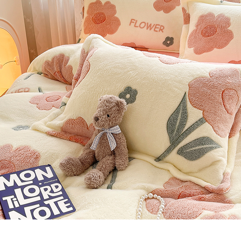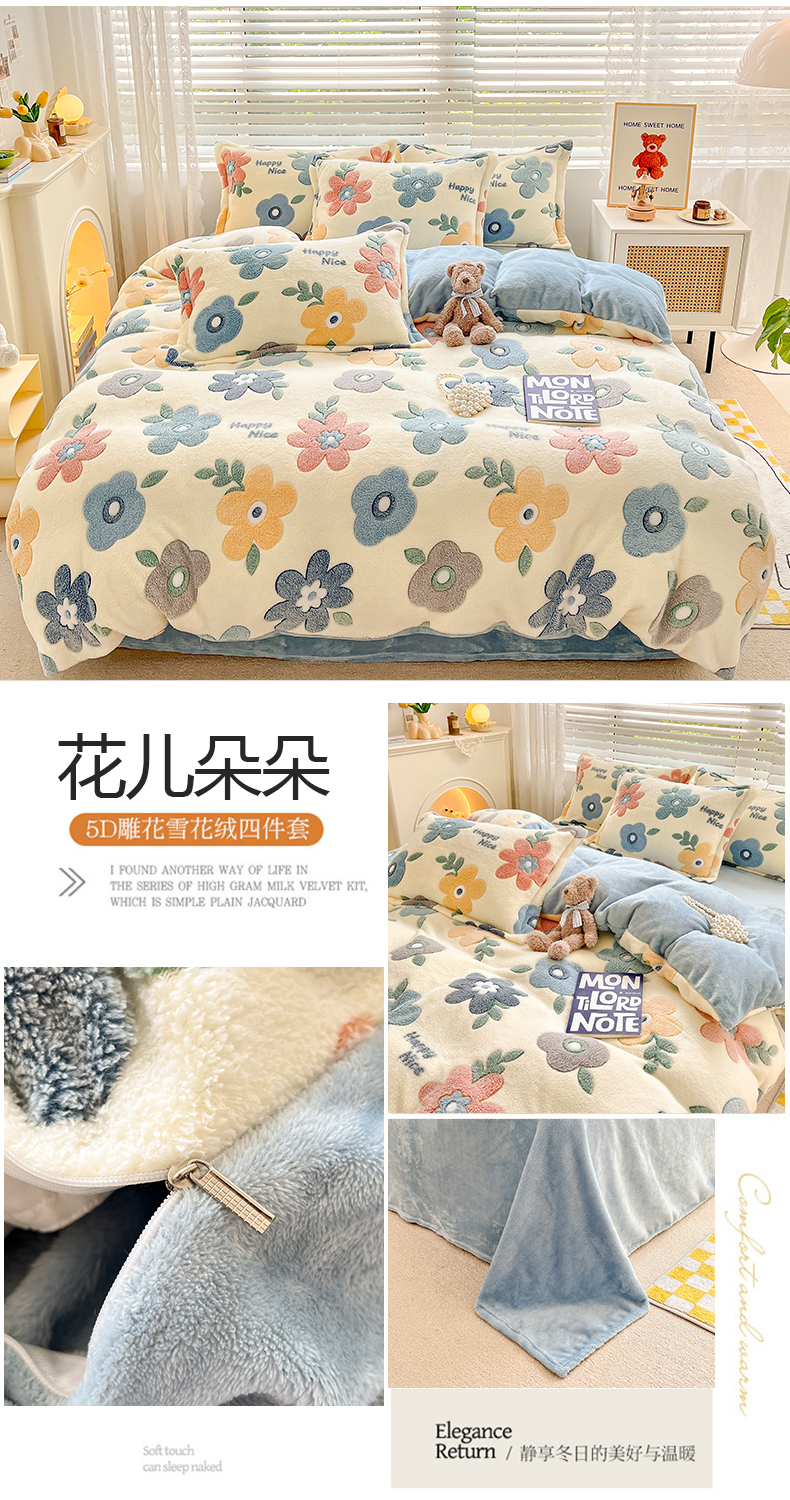 当前位置: 91家纺网 > 商品网购 > 床品套件 > 四件套 > 雕花绒四件套 > 苏拉家居 2023新款5D雕花雪花绒四件套 花儿朵朵