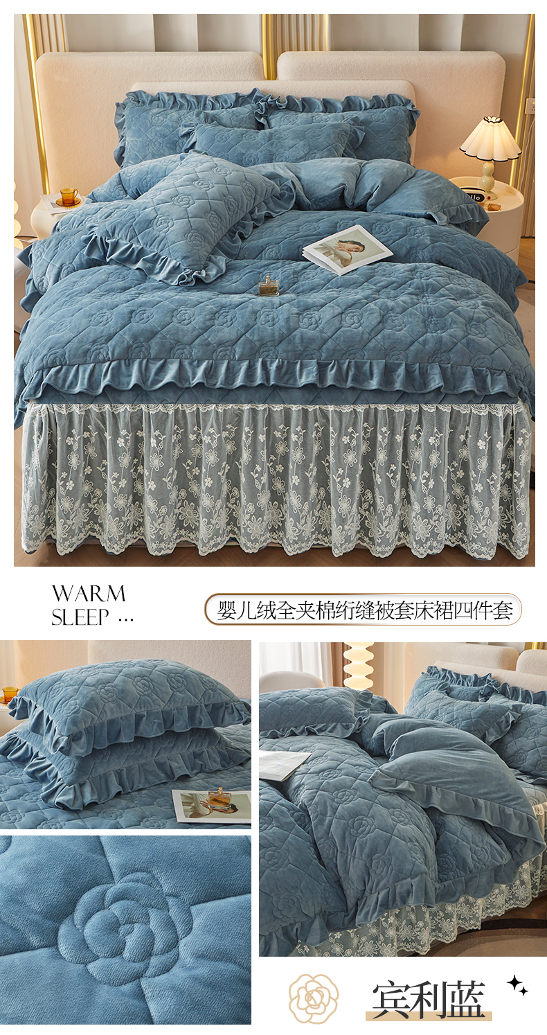 当前位置: 91家纺网 > 商品网购 > 床品套件 > 四件套 > 宜凡2023新款婴儿绒全夹棉床裙四件套 宾利蓝