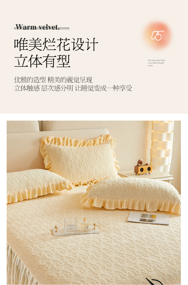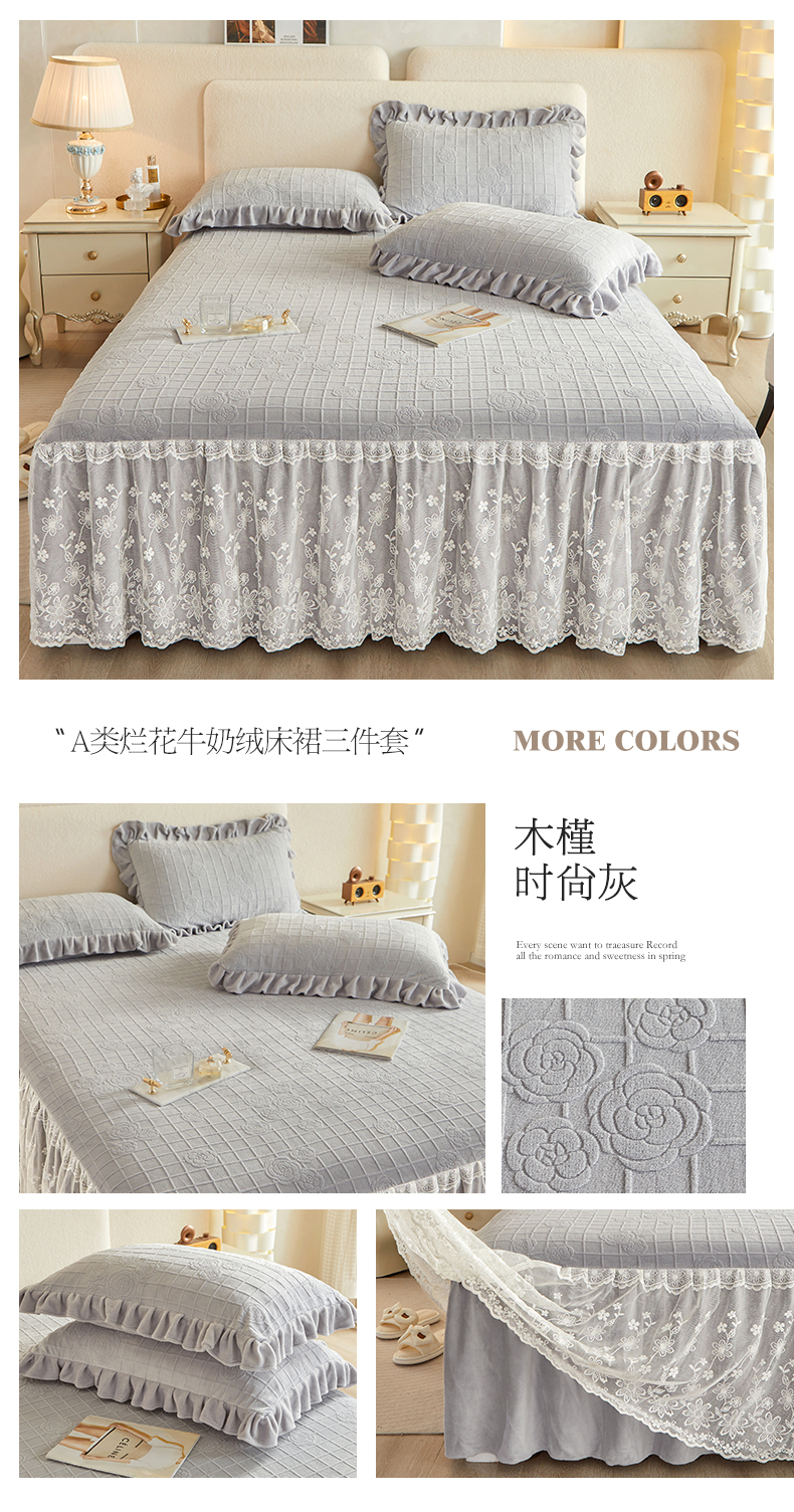 商品名称:宜凡 2023新款烂花牛奶绒床裙三件套 木槿-时尚灰