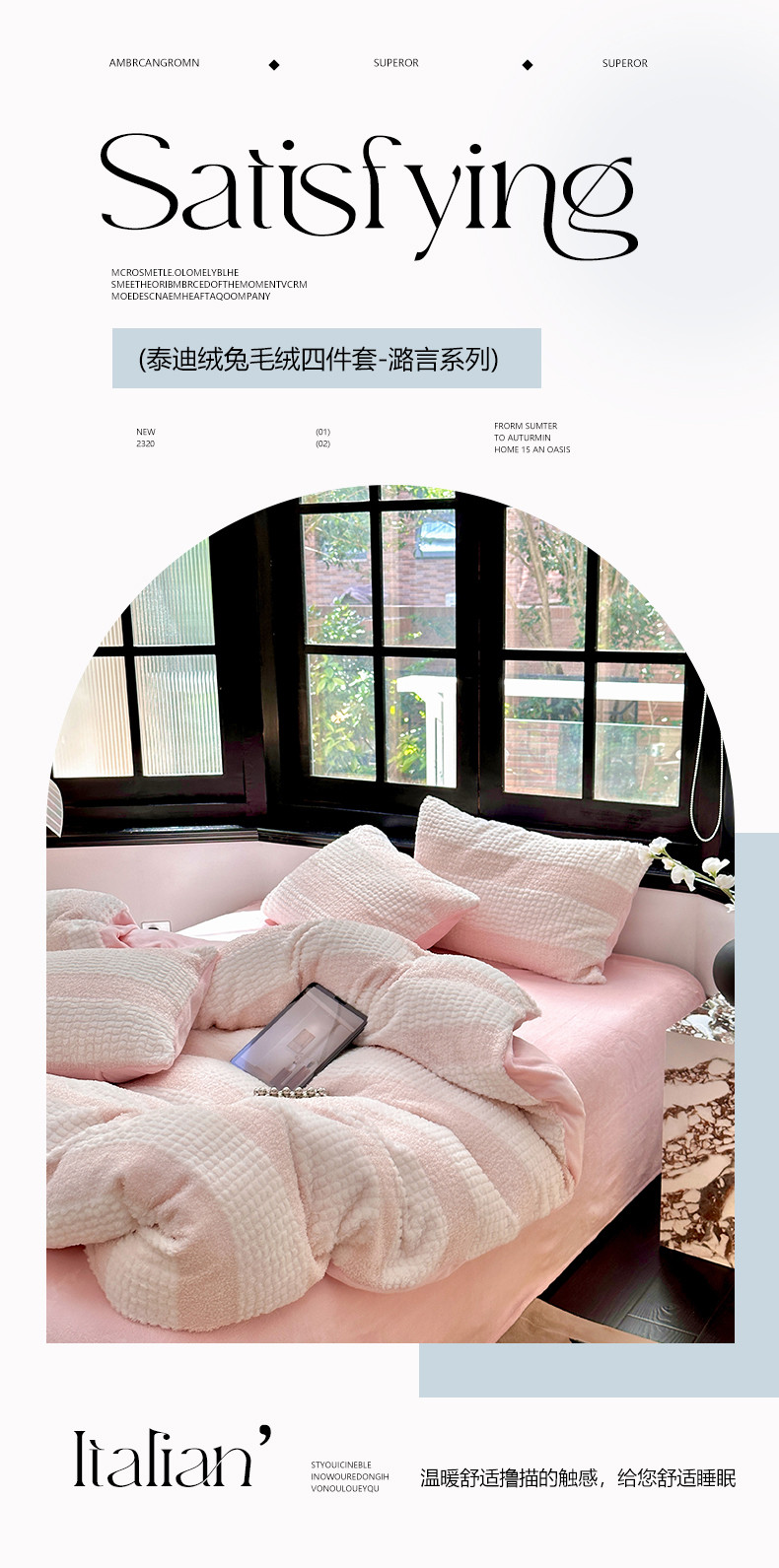 N先生 2024秋冬新款9斤重泰迪绒兔毛绒四件套-潞言系列 潞言-粉