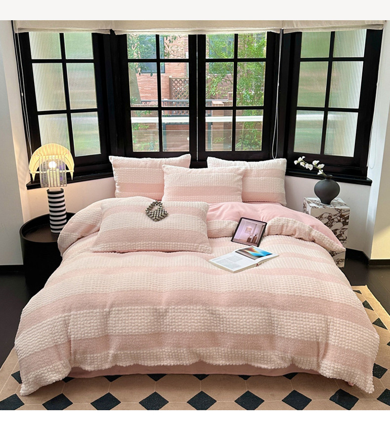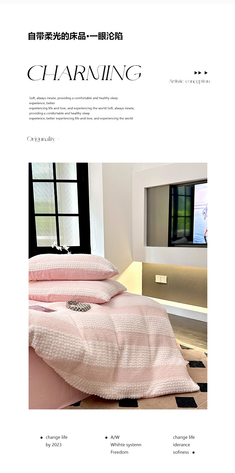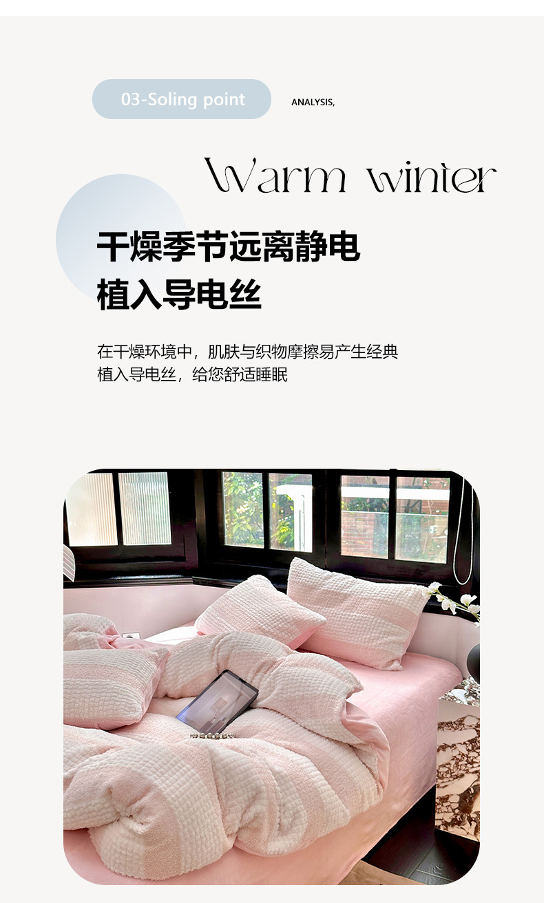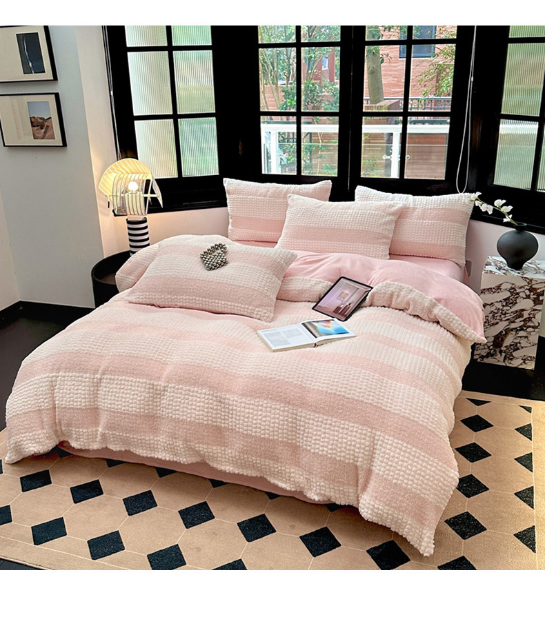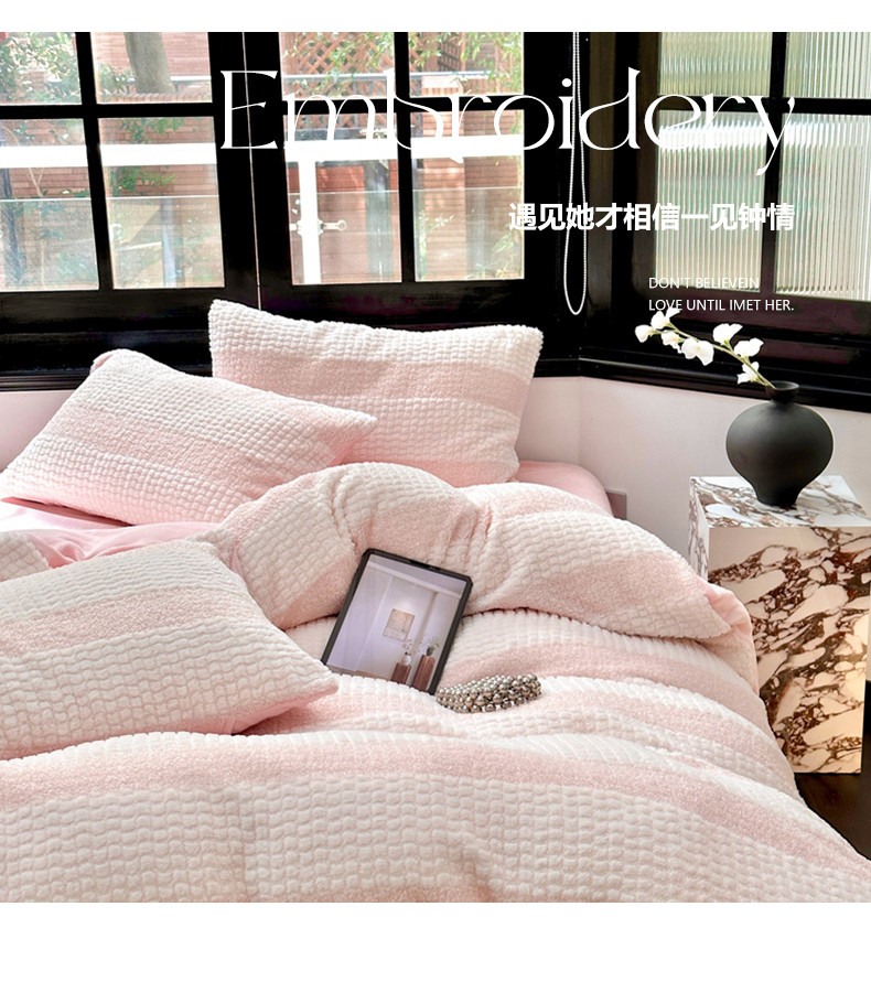商品名称:N先生 2024秋冬新款9斤重泰迪绒兔毛绒四件套-潞言系列 潞言-粉