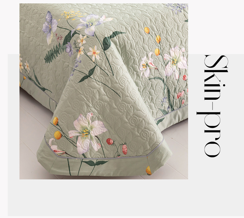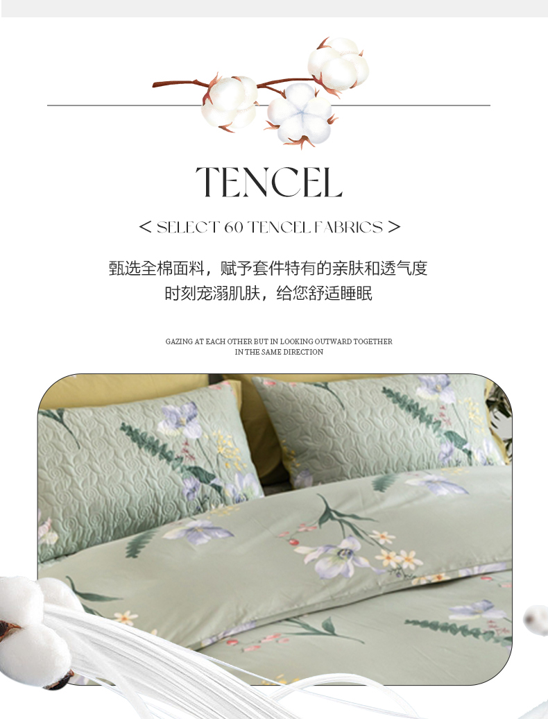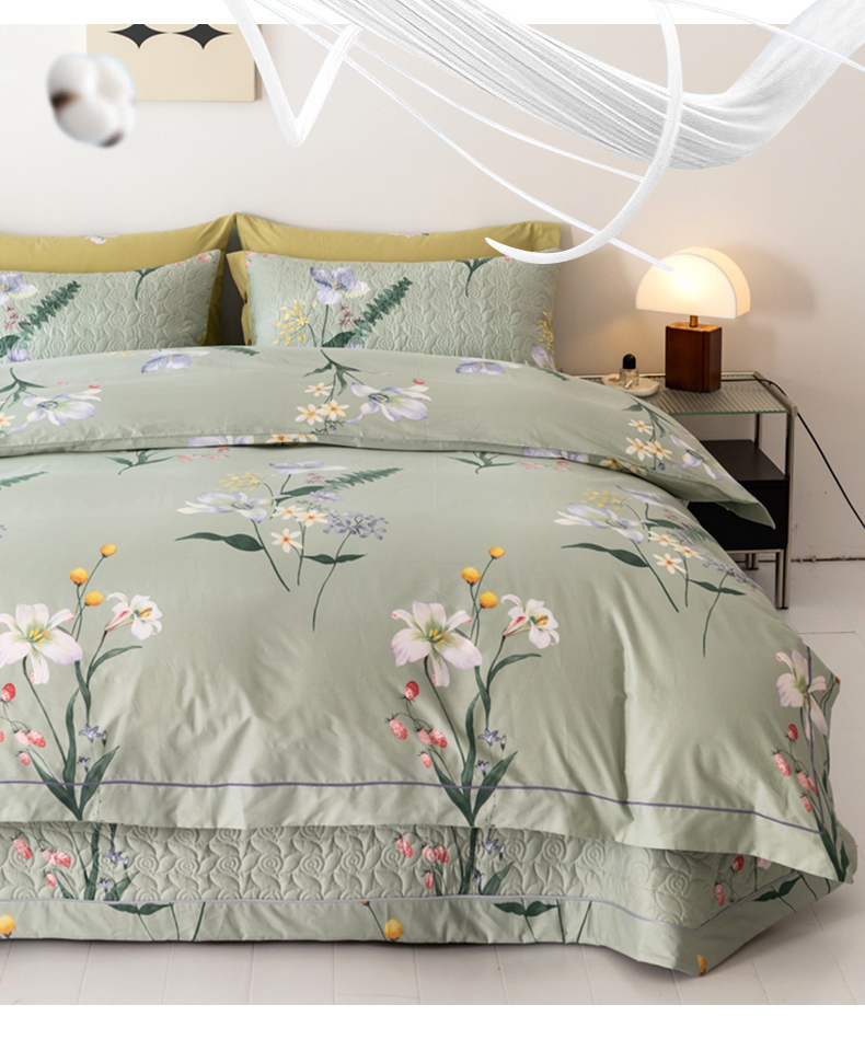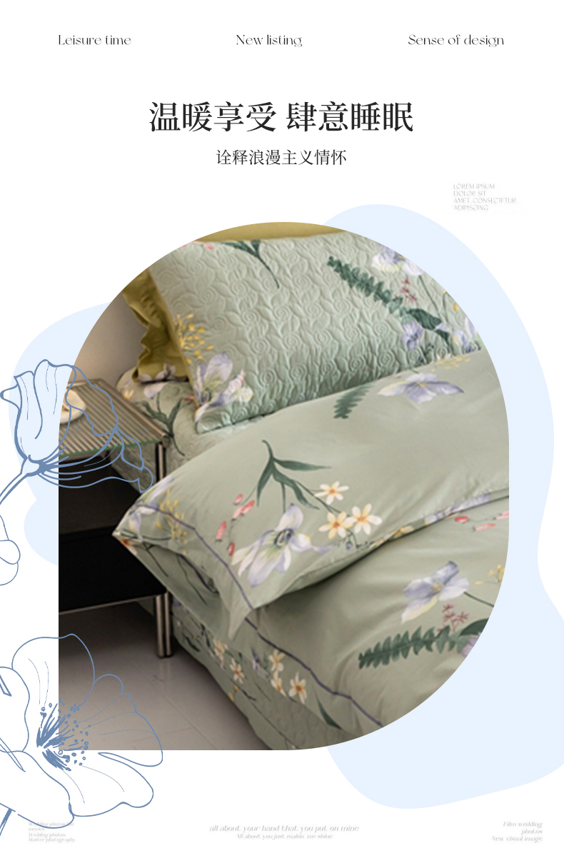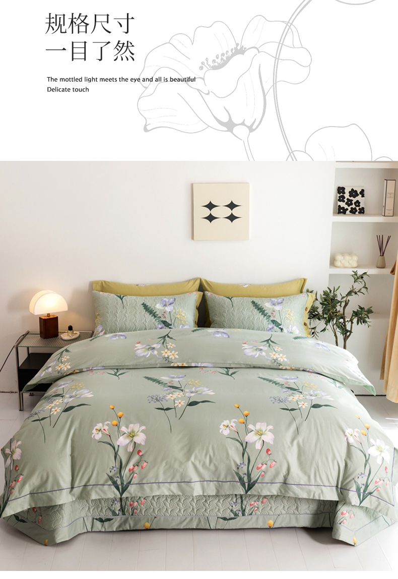 商品名称:优乐家纺 2025新款纯棉斜纹床盖款单层被套四件套 晗蕊初开-绿