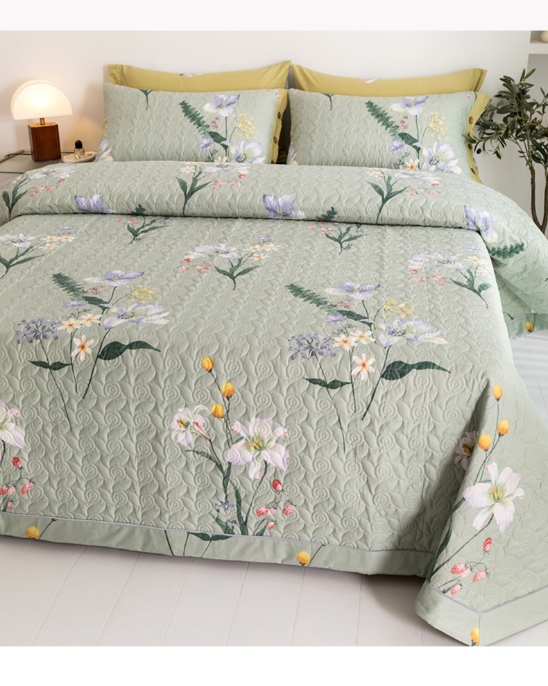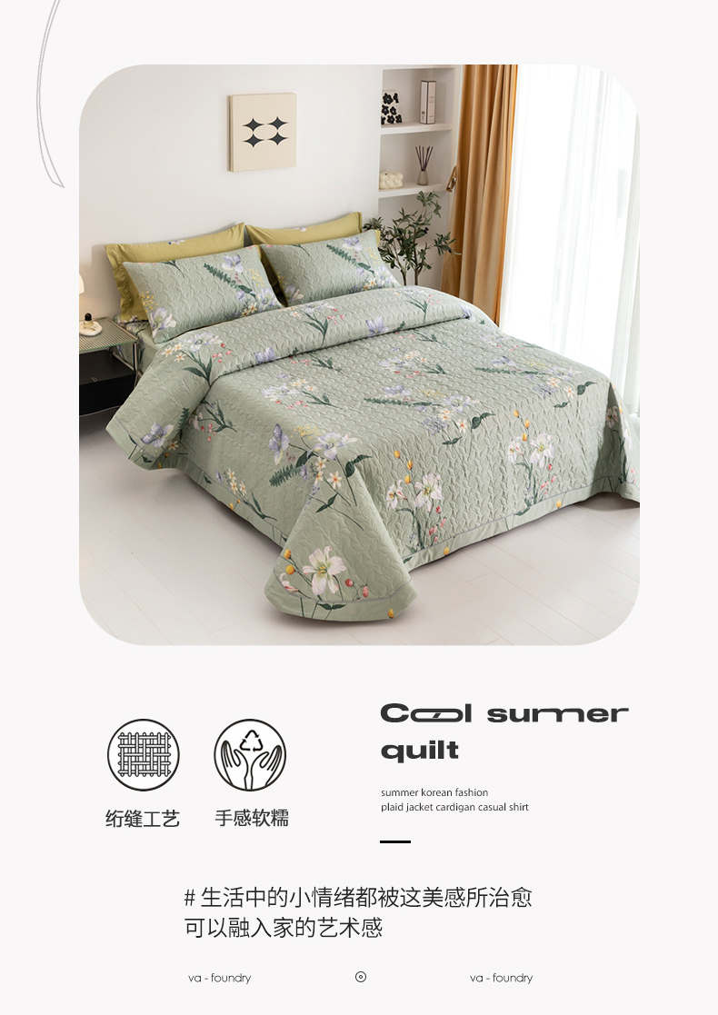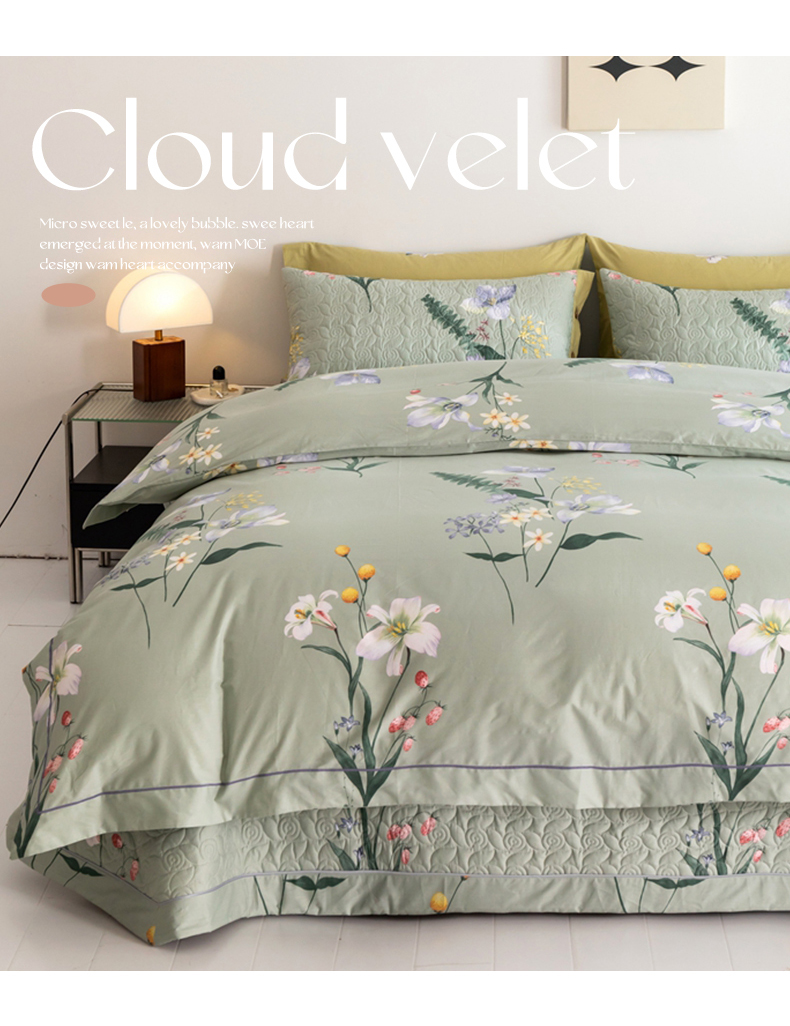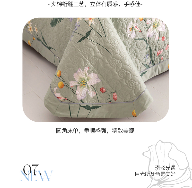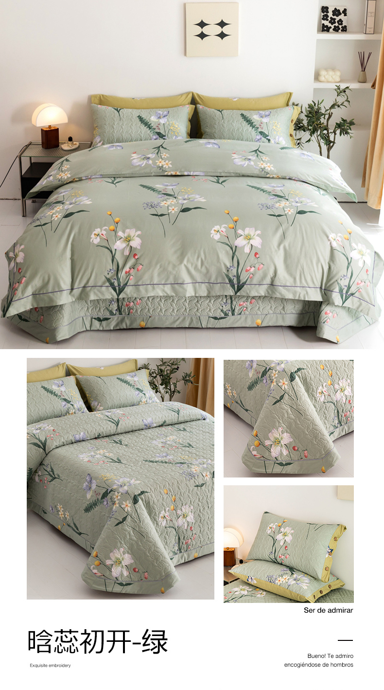 优乐家纺 2025新款纯棉斜纹床盖款单层被套四件套 晗蕊初开-绿