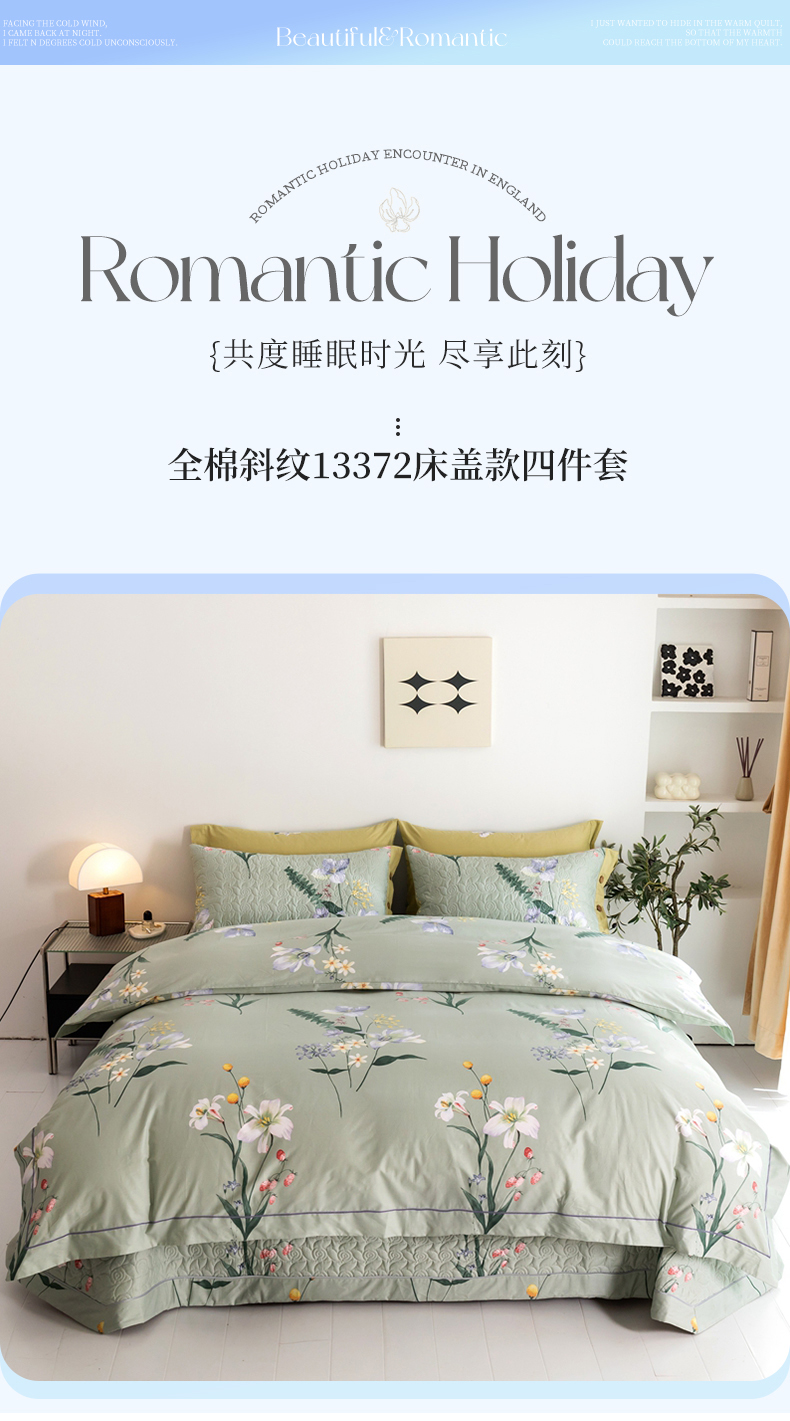 (总)优乐家纺 2025新款全棉斜纹13376单层被套夹棉床盖款四件套,安琪-黄,安琪-绿,波西米亚,博尔-咖,春意盎然,朵唯,花颜悦色,迷雾,慕斯,南薇,南薇-兰,普卡拉-红,普卡拉-兰,清婉,蔚然花,早春
