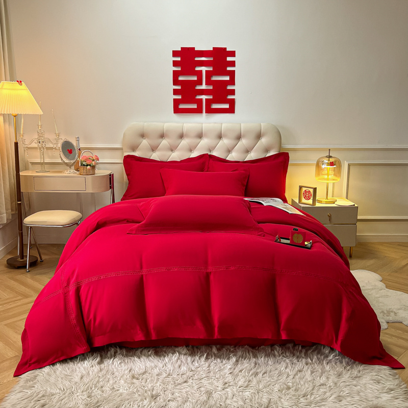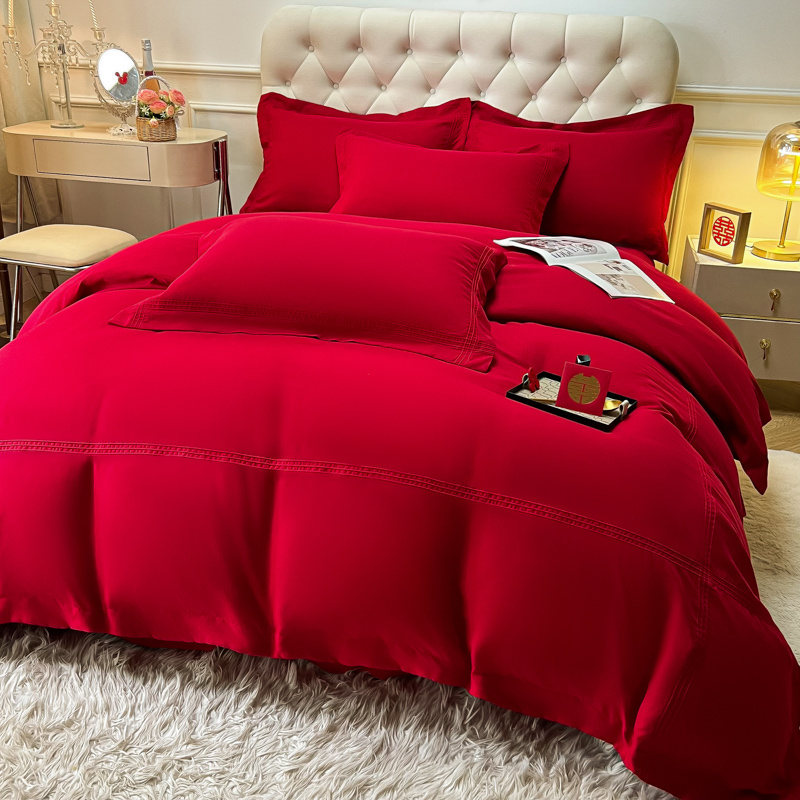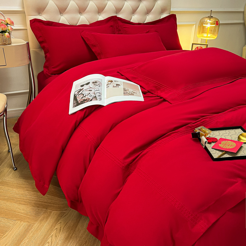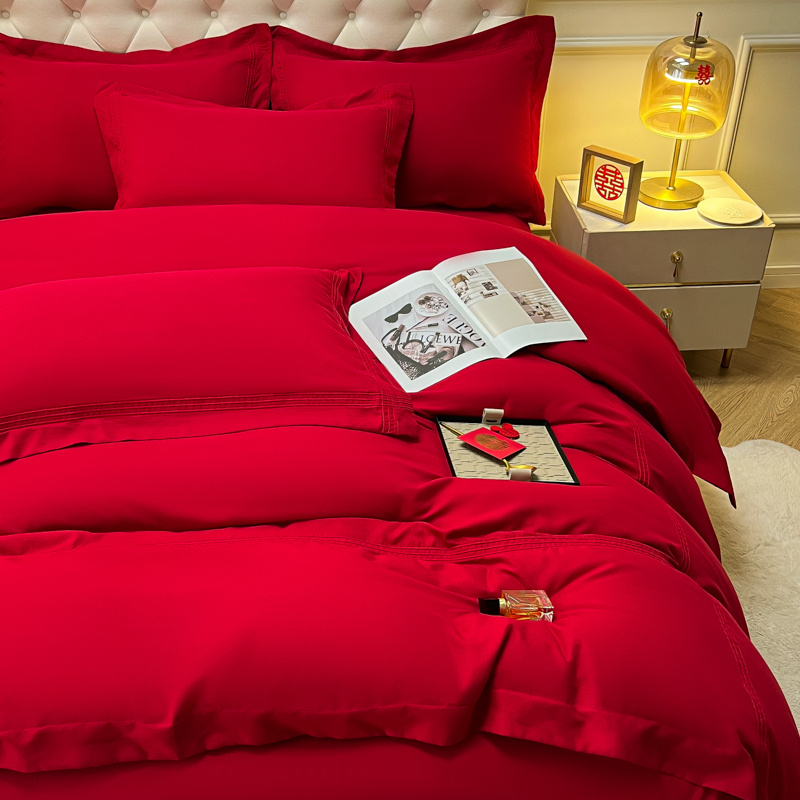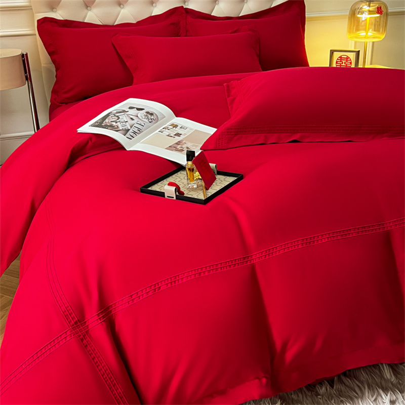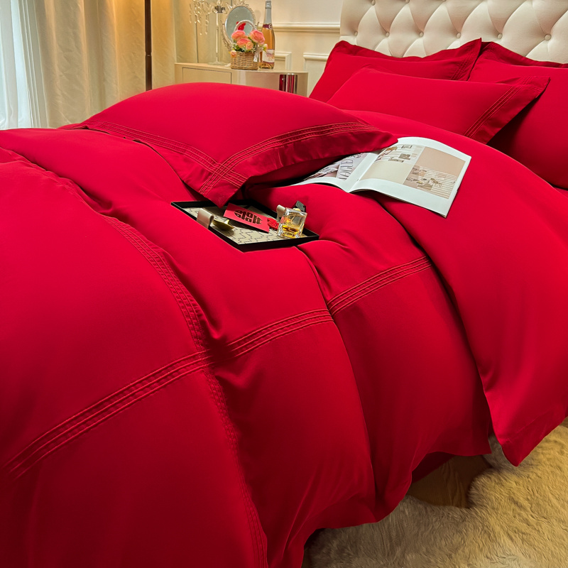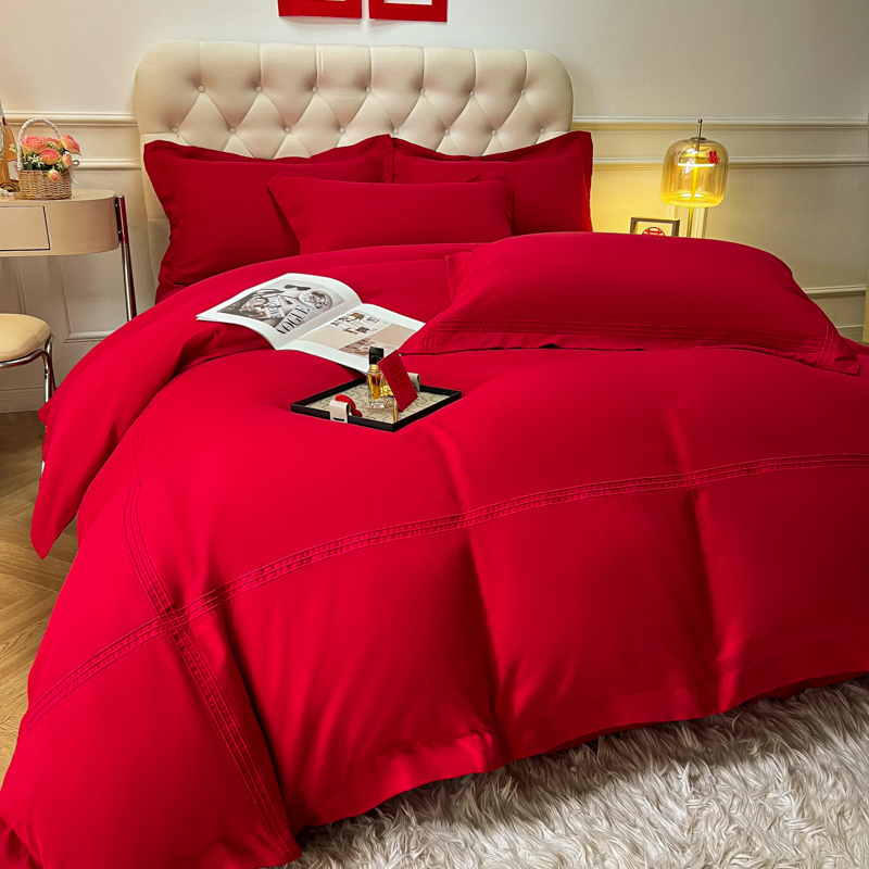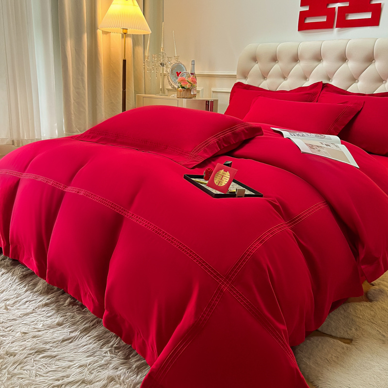 (总)苏源 2023新款结婚酒红喜庆简爱埋绳压线婚庆四件套