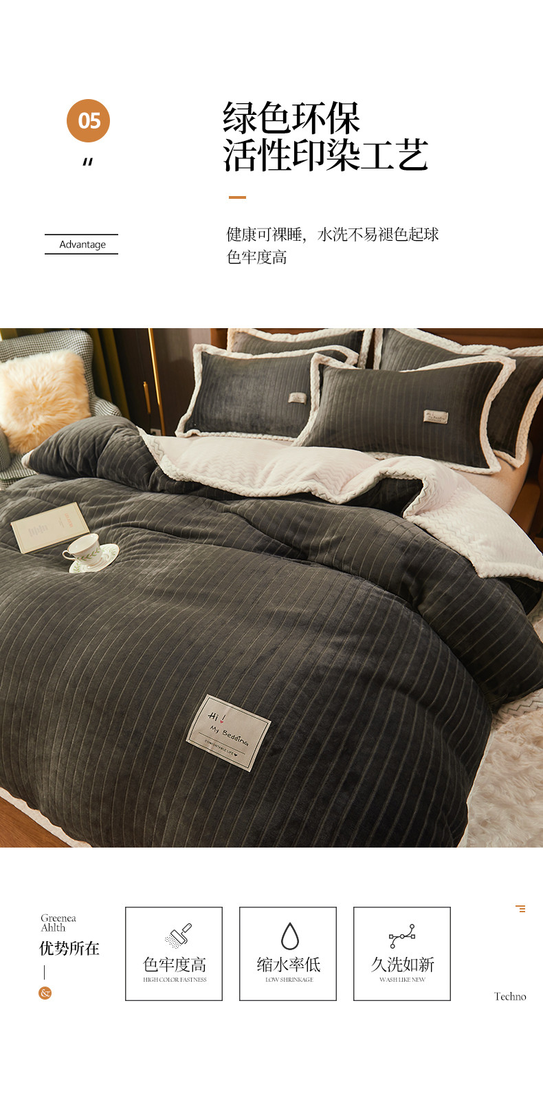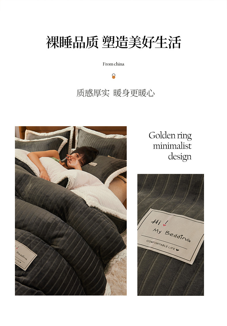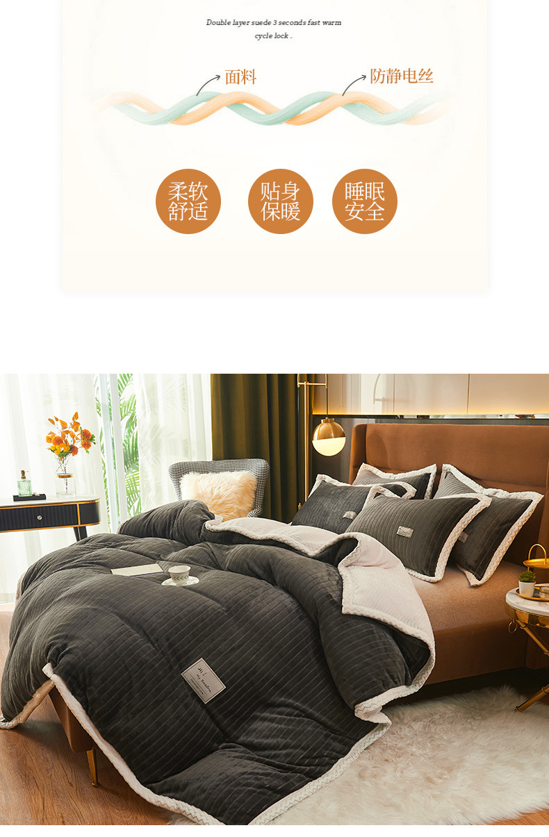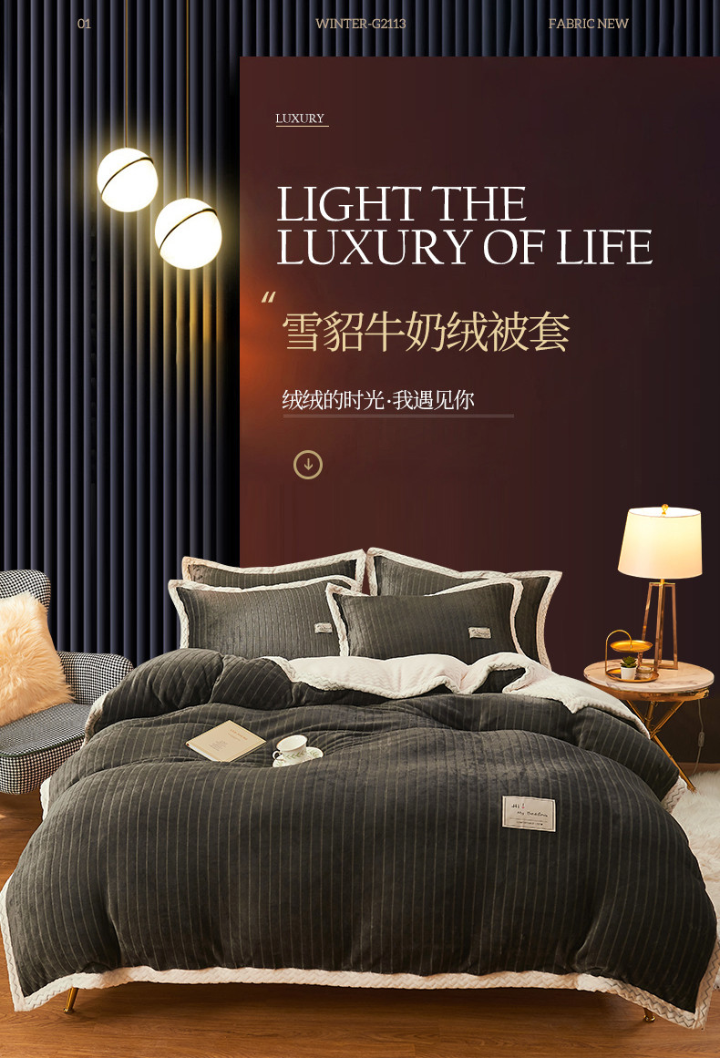 商品名称:全季家居 2023新款纯色印花抗静电大包边牛奶绒贝贝绒单被套 深灰