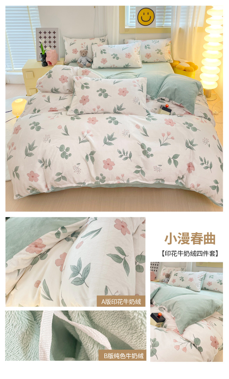 当前位置: 91家纺网 > 商品网购 > 床品套件 > 四件套 > 牛奶绒四件套 > 梦柏家纺 2023新款高克重牛奶绒印花四件套 小漫春曲