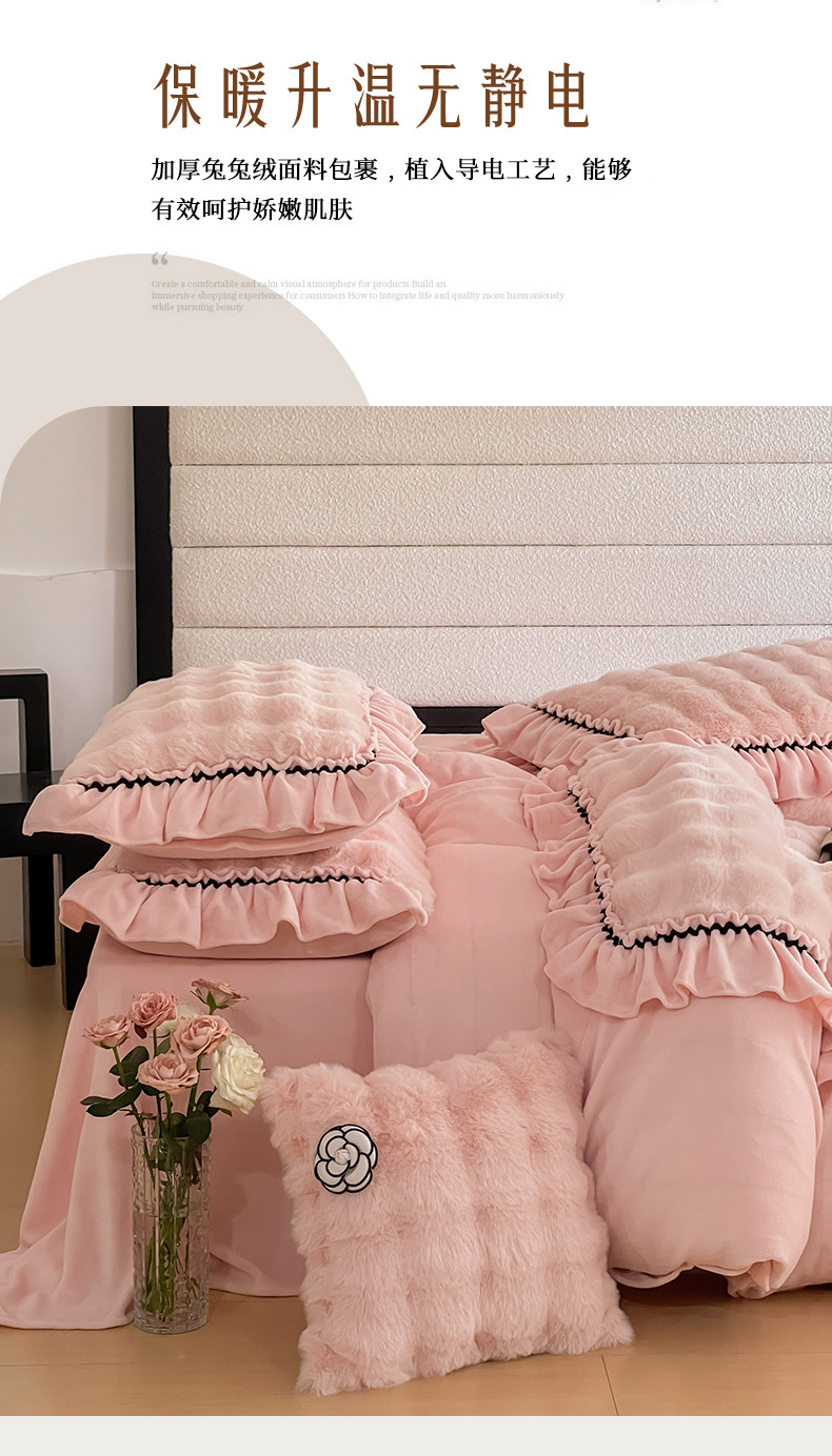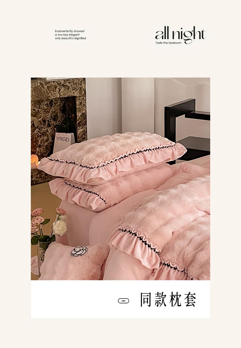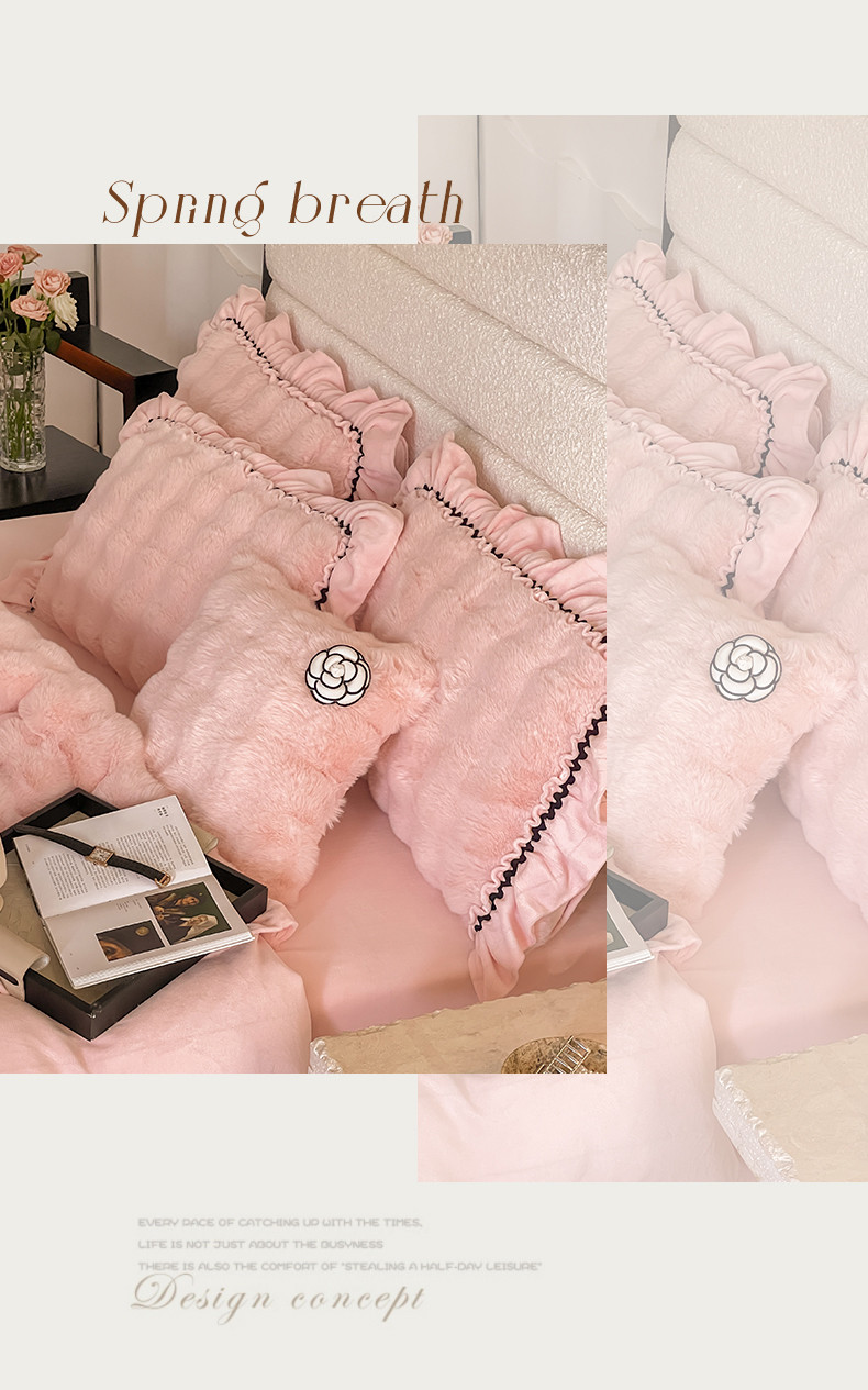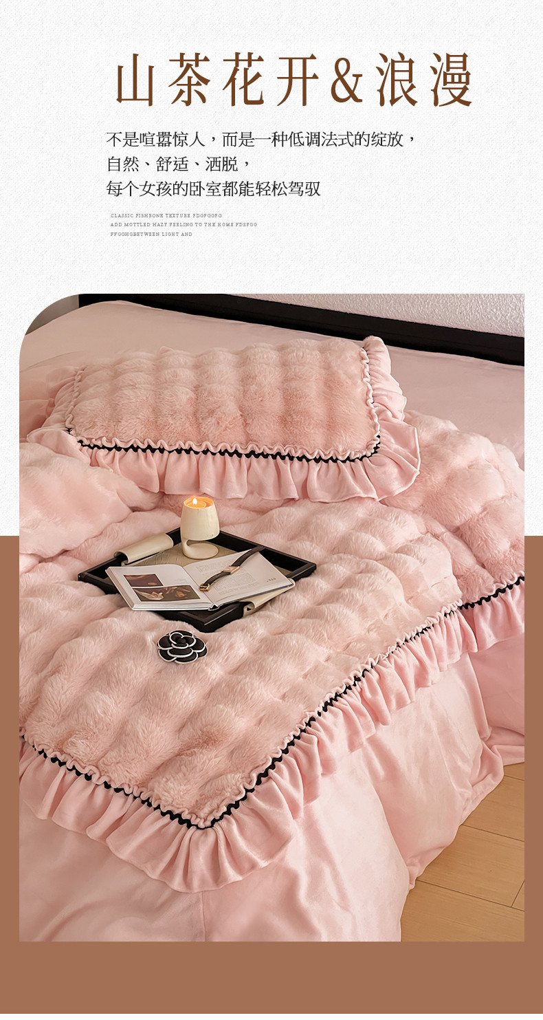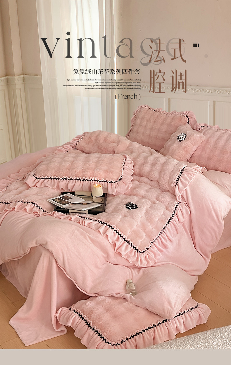 当前位置: 91家纺网 > 商品网购 > 床品套件 > 四件套 > 兔毛绒四件套 > 婳庭家居 2023新款山茶花兔兔绒系列四件套 山茶花-浅粉