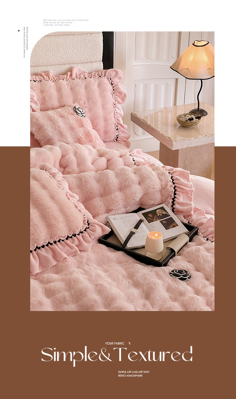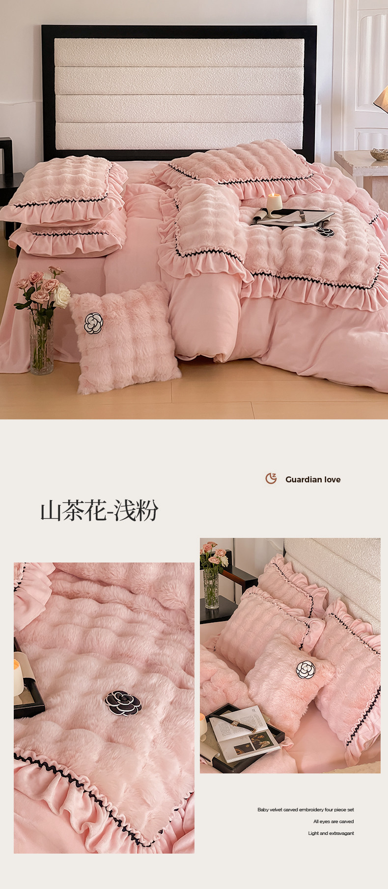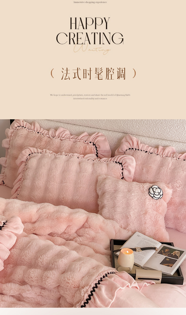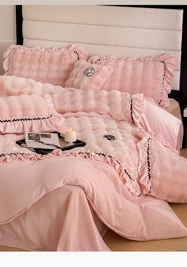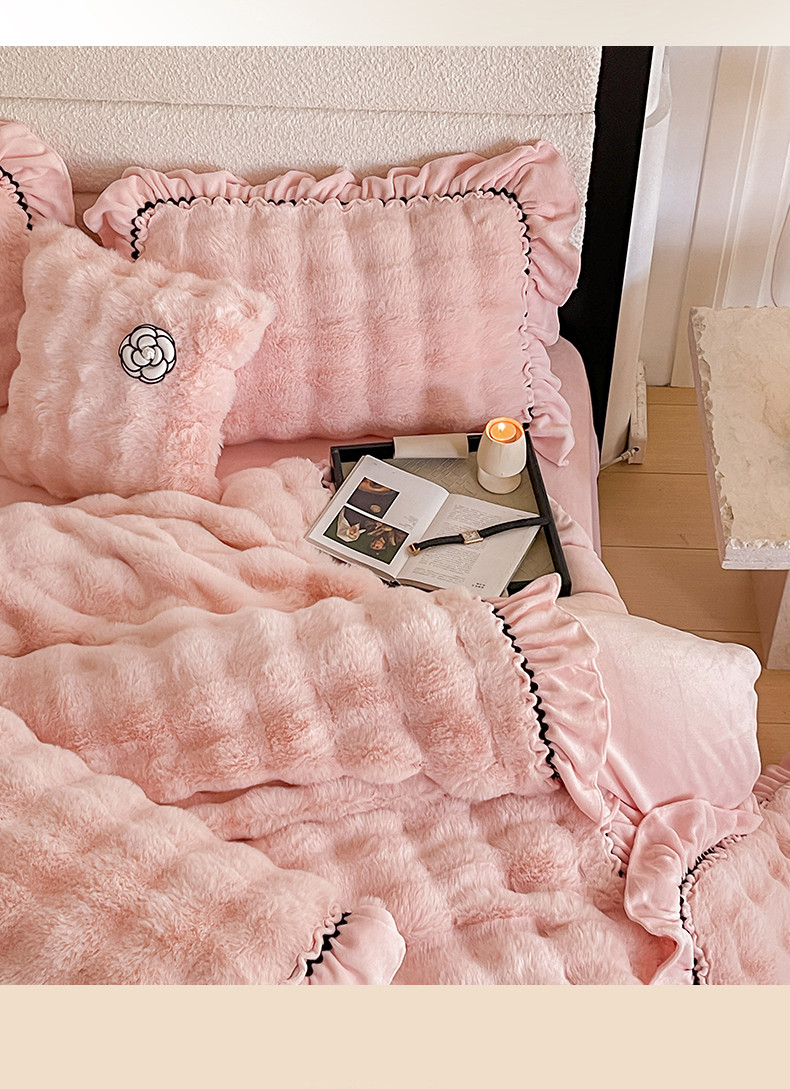 当前位置: 91家纺网 > 商品网购 > 床品套件 > 四件套 > 兔毛绒四件套 > 婳庭家居 2023新款山茶花兔兔绒系列四件套 山茶花-浅粉