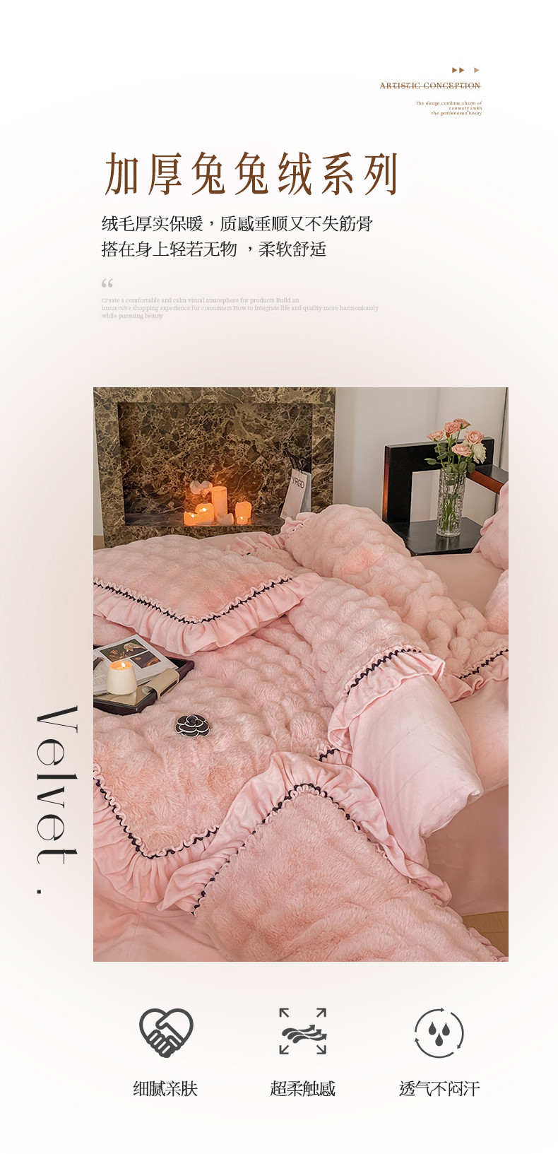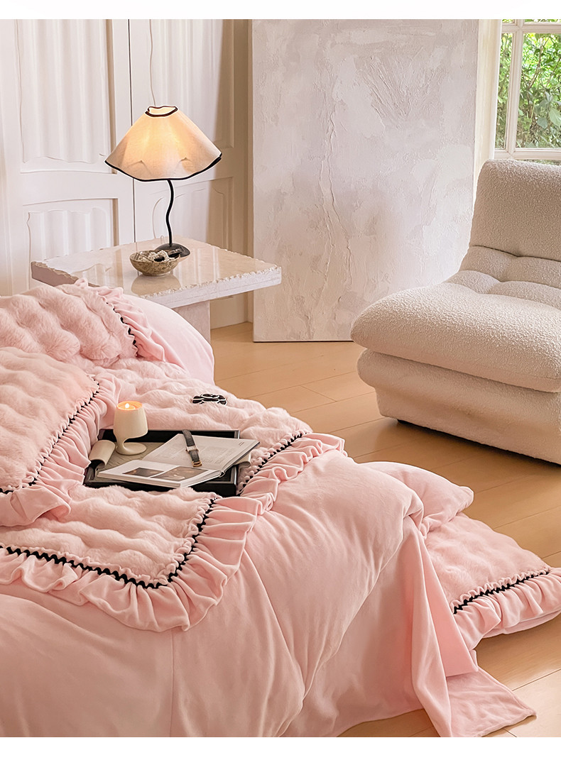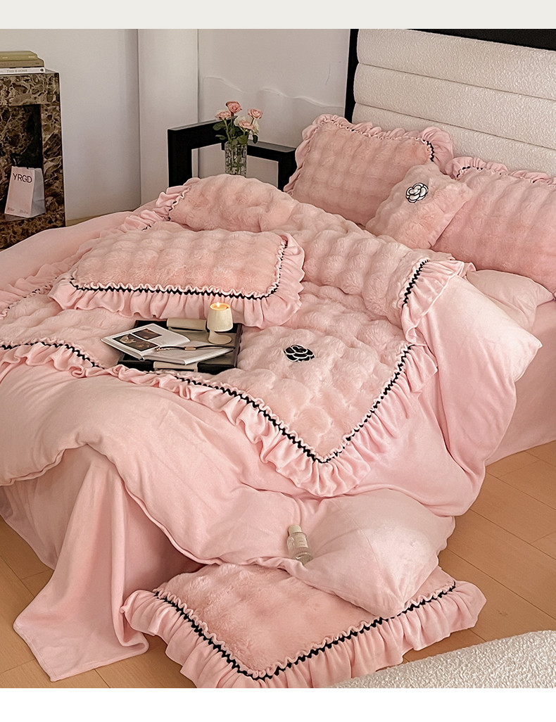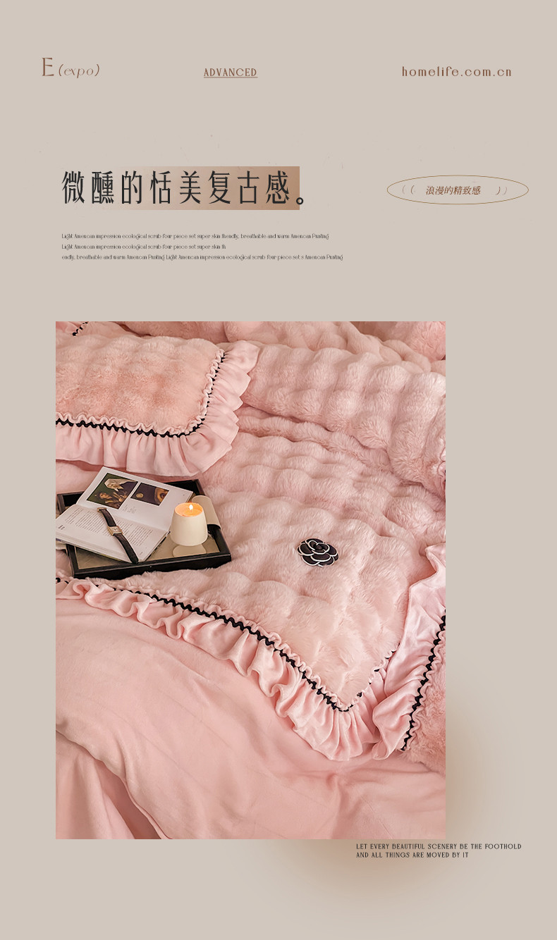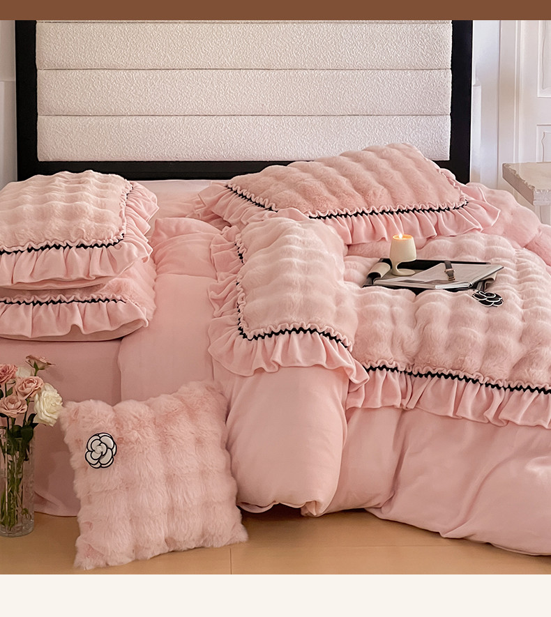 当前位置: 91家纺网 > 商品网购 > 床品套件 > 四件套 > 兔毛绒四件套 > 婳庭家居 2023新款山茶花兔兔绒系列四件套 山茶花-浅粉