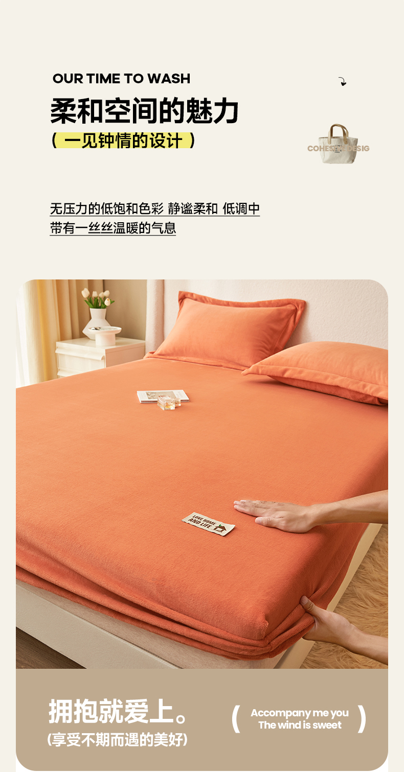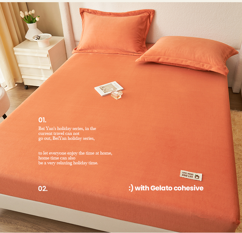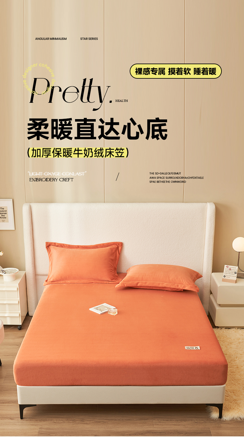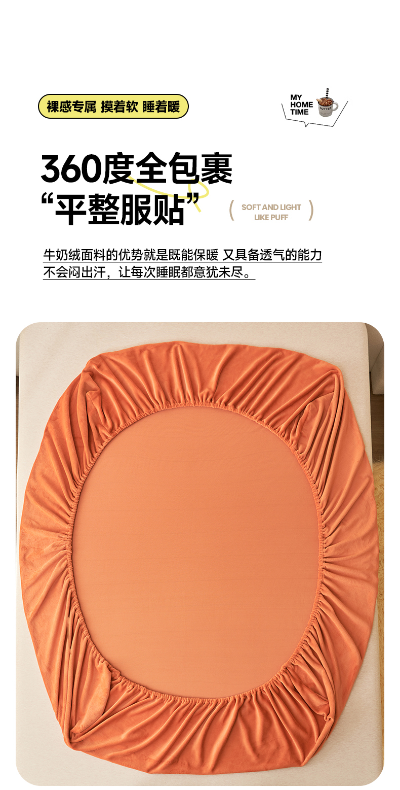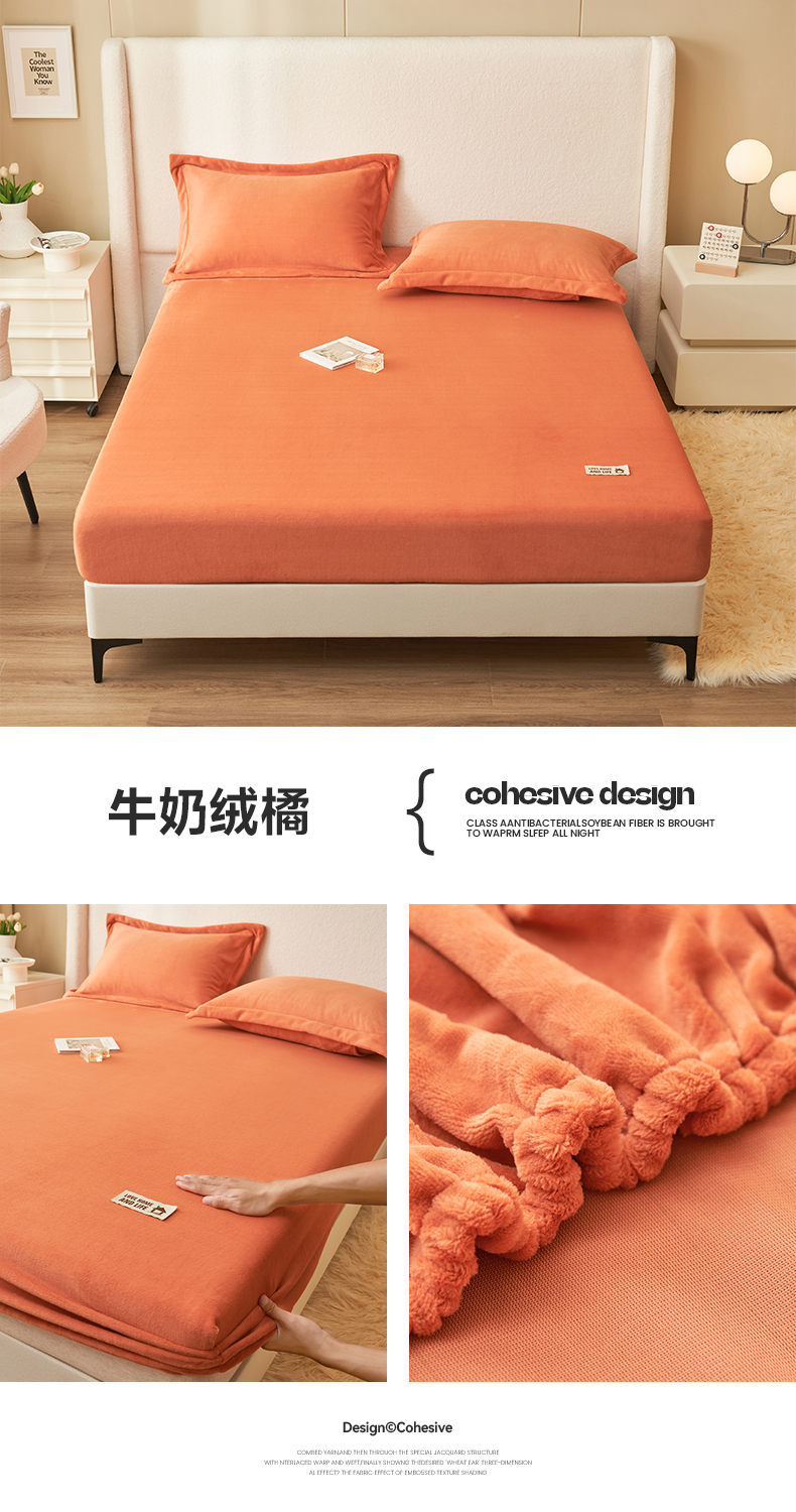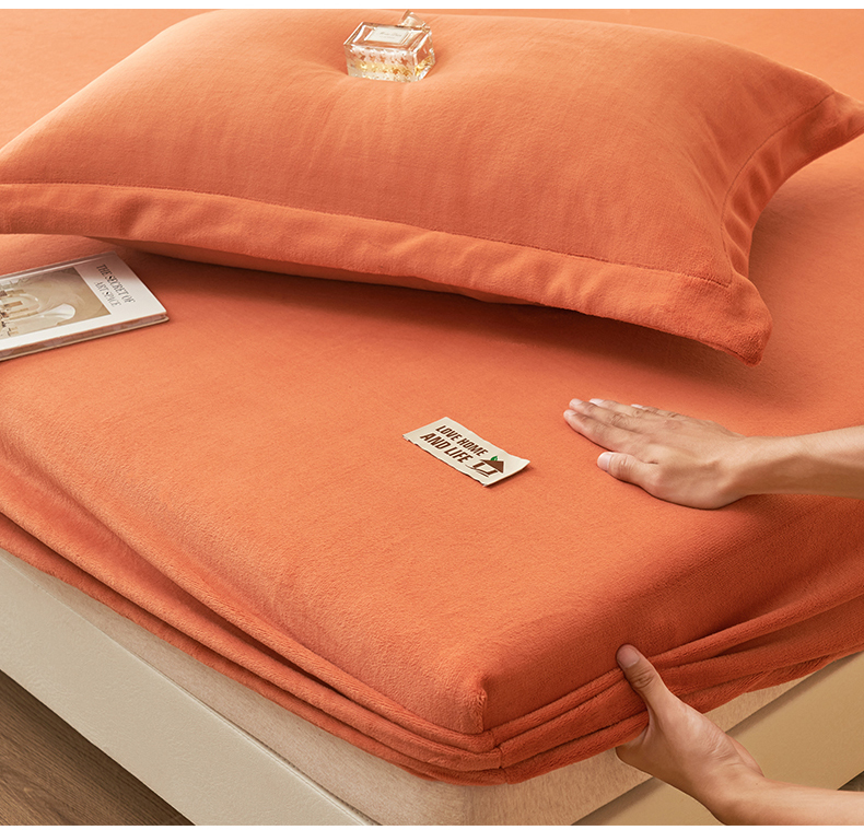 • 91家纺网 家纺一手货源 找家纺 艾佳 2025新款高克重加厚保暖牛奶绒床笠 牛奶绒橘
