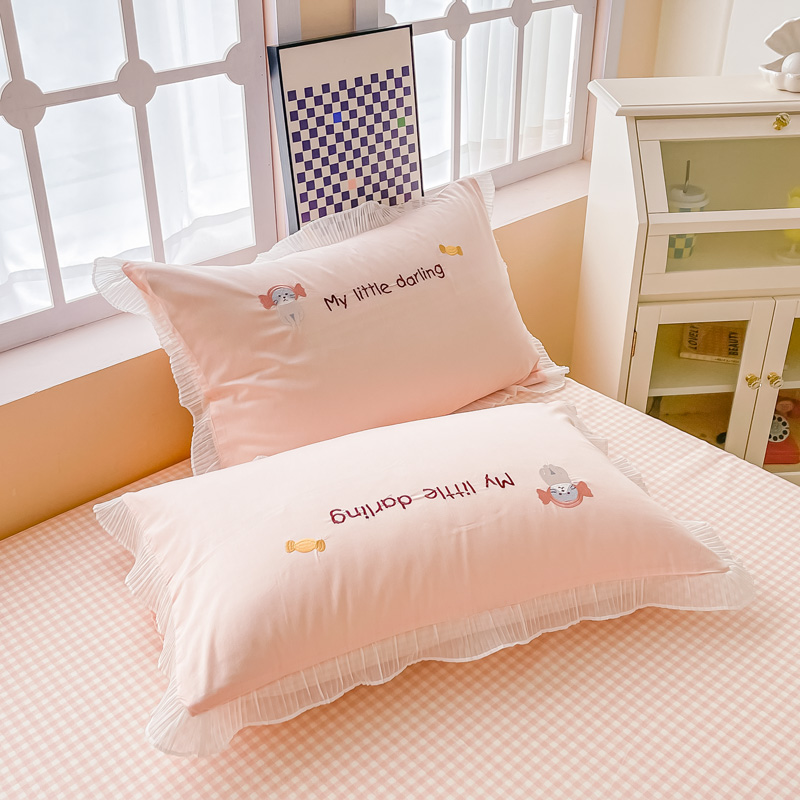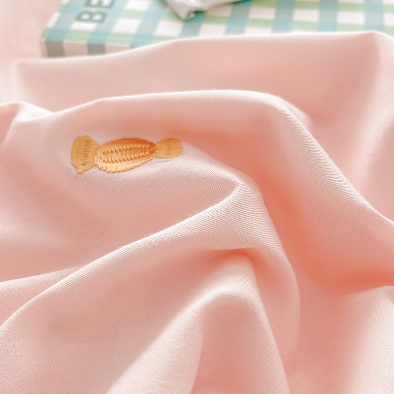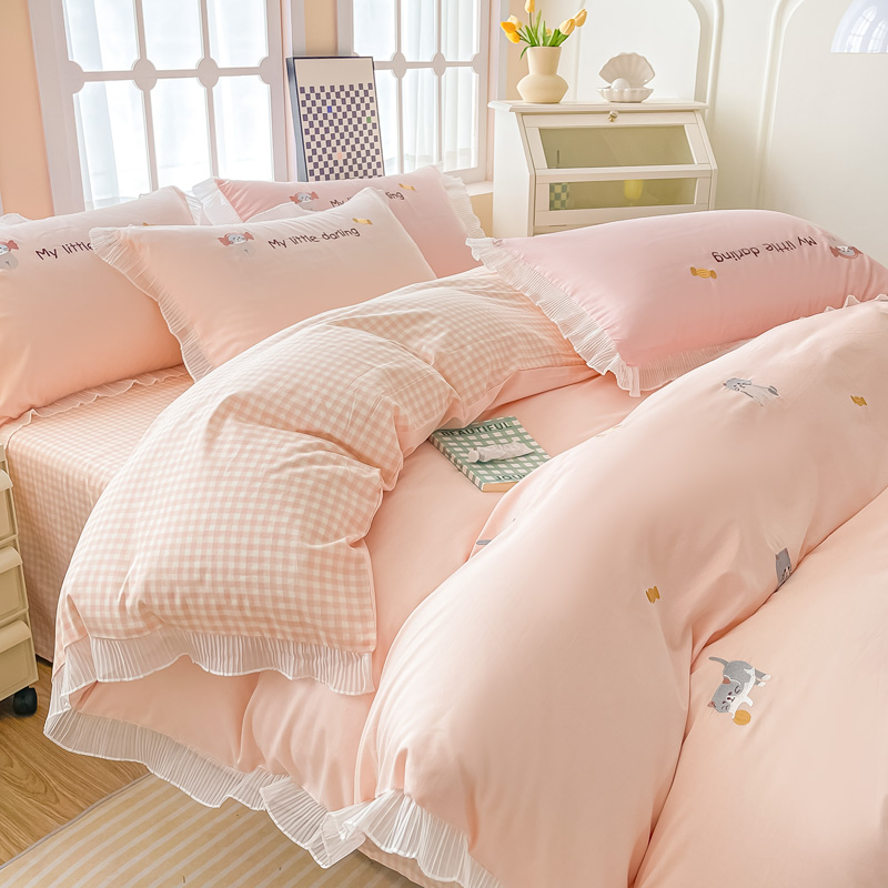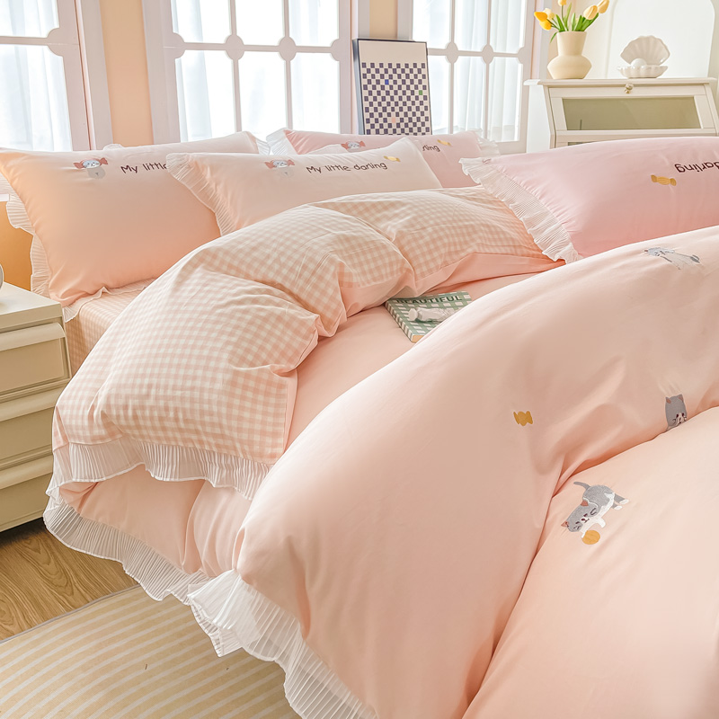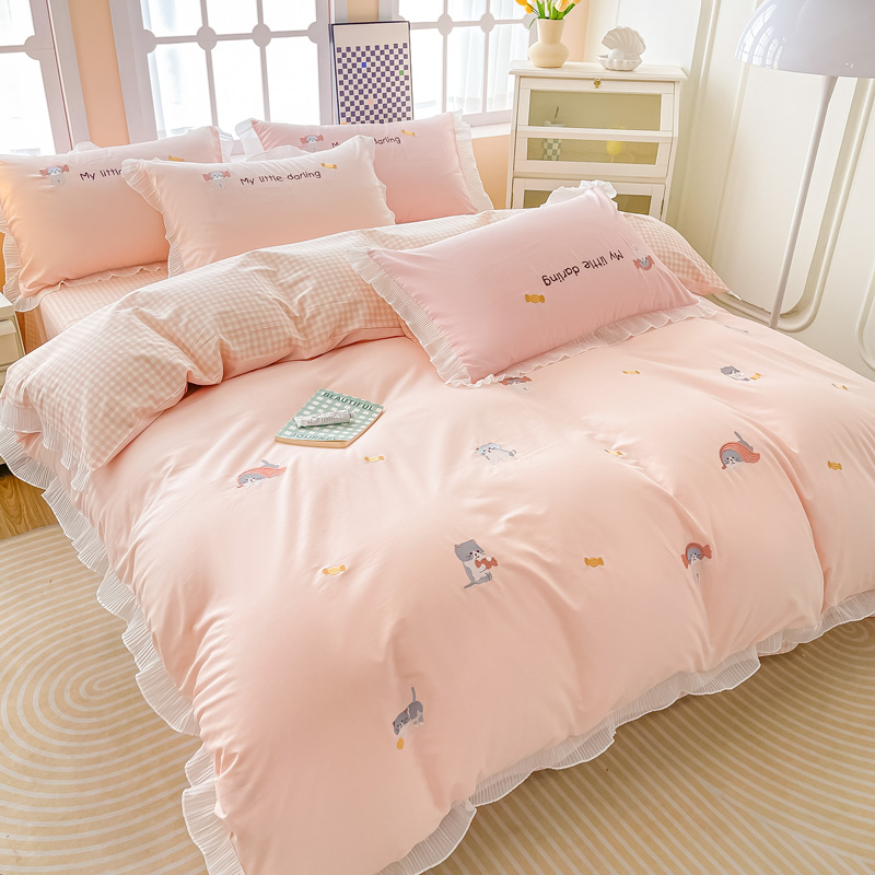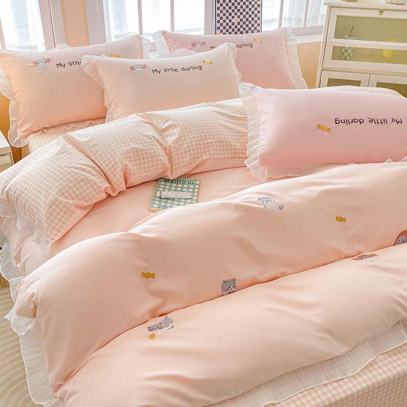 梧桐家居 2023新款全棉磨毛刺绣四件套-糖果小猫 粉