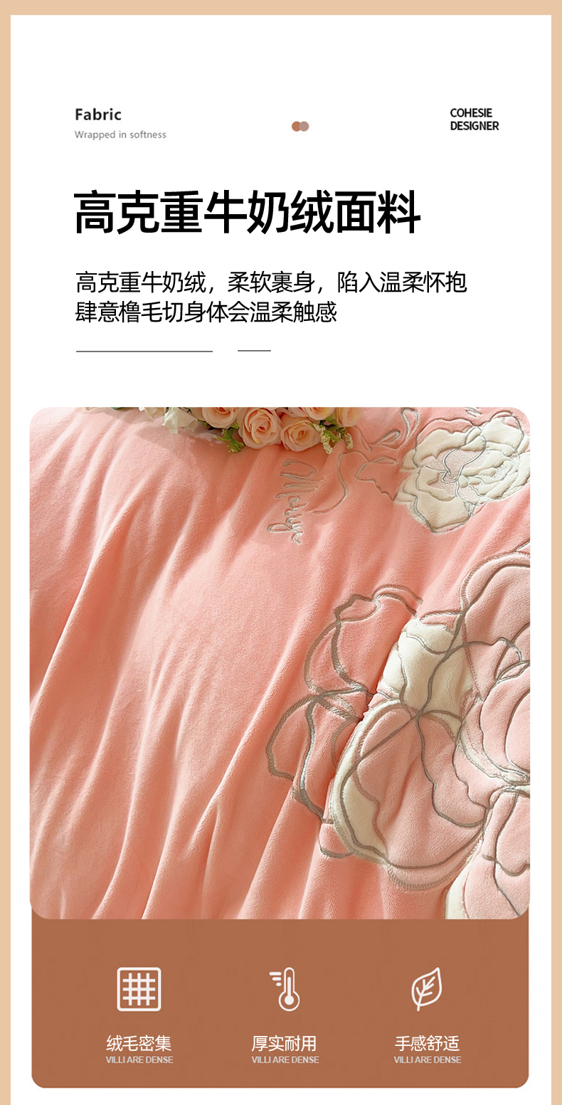 (总)云锦家居 2023秋冬新品花梦--230克全消光牛奶绒四件套