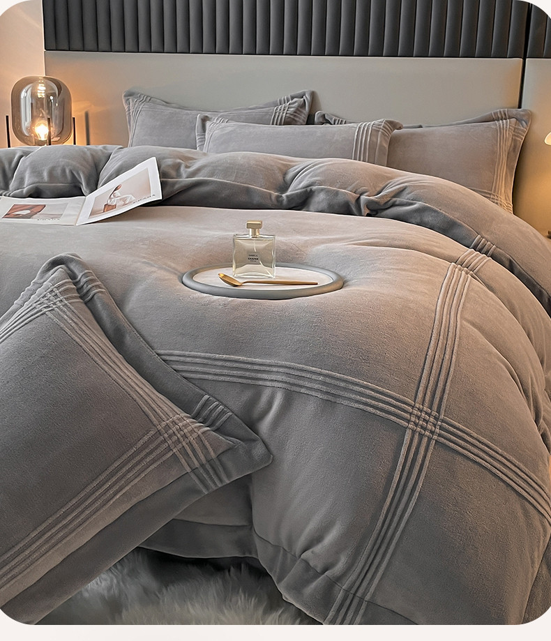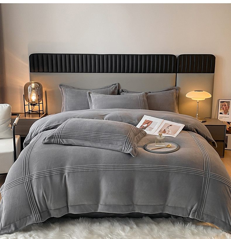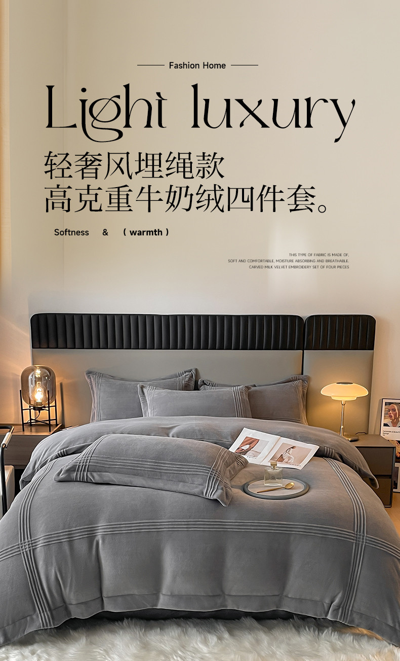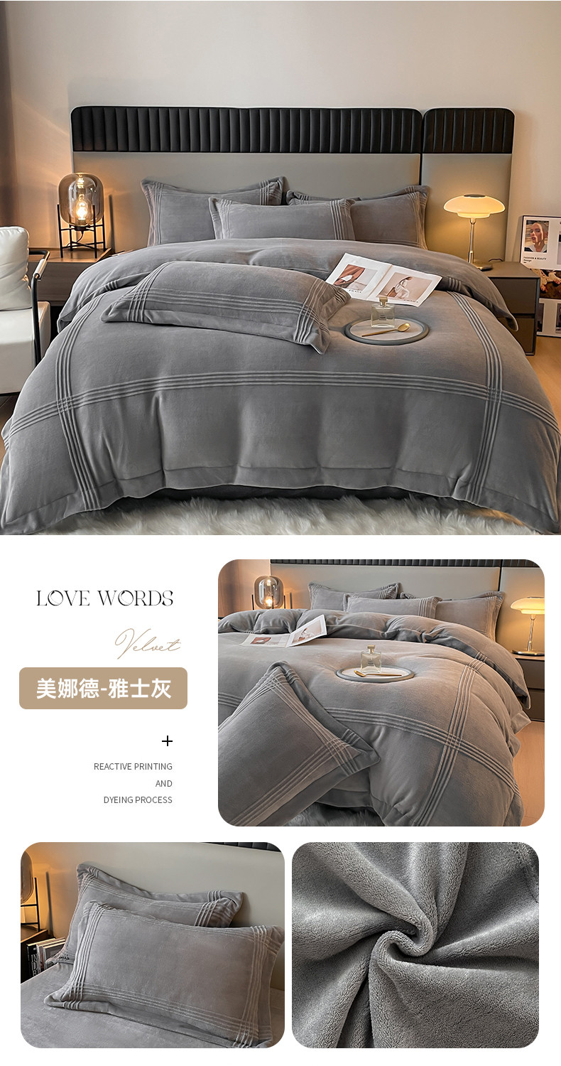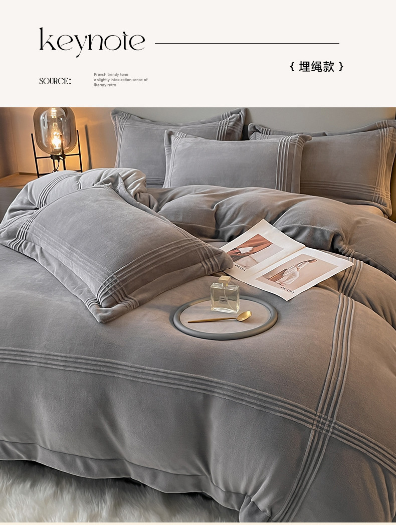 商品名称:米瑞娜 2024新款轻奢风埋绳款高克重牛奶绒四件套 美娜德-雅士灰