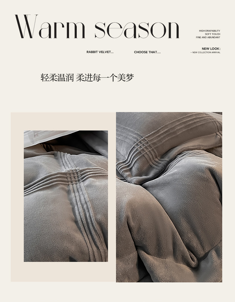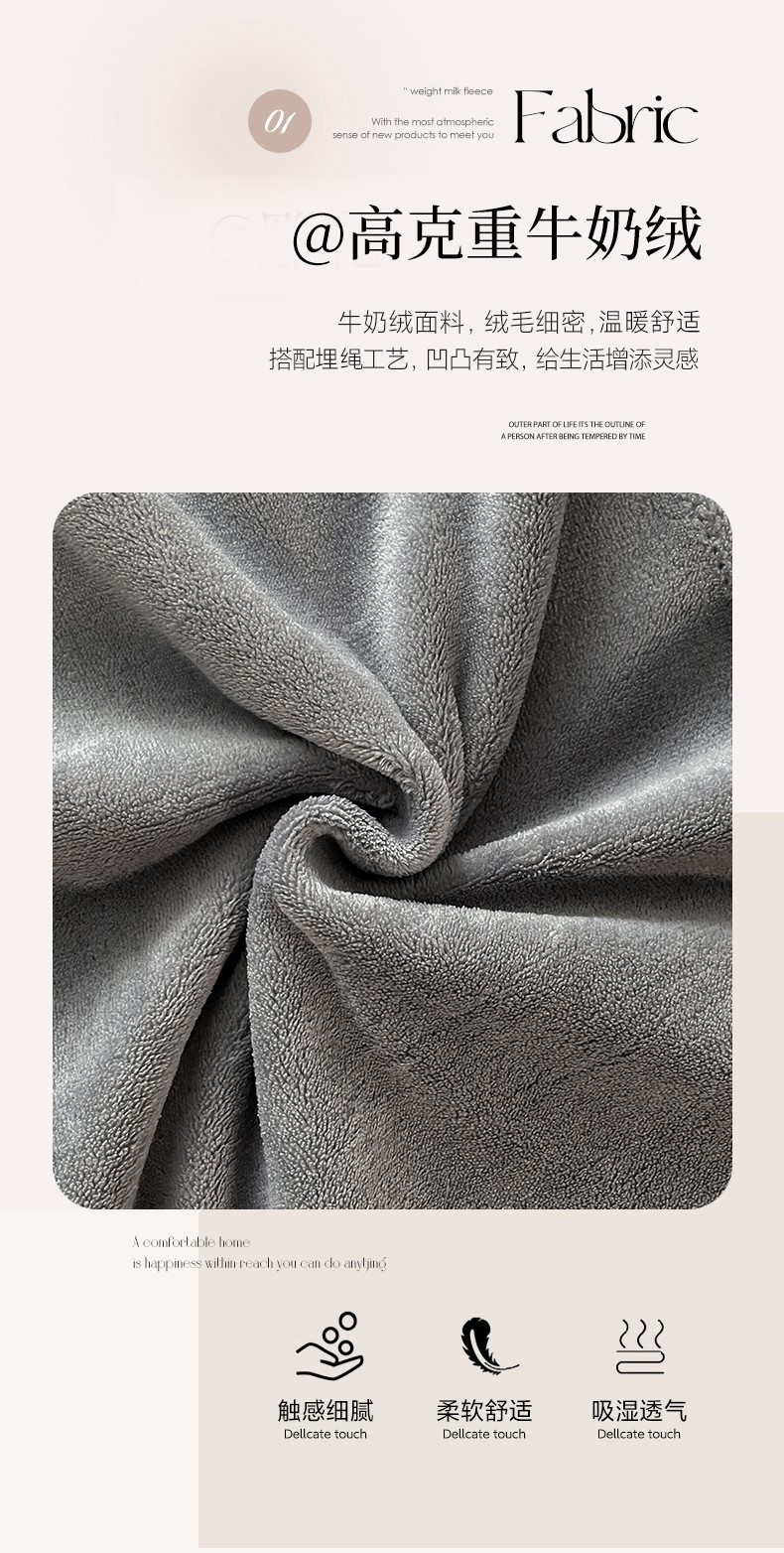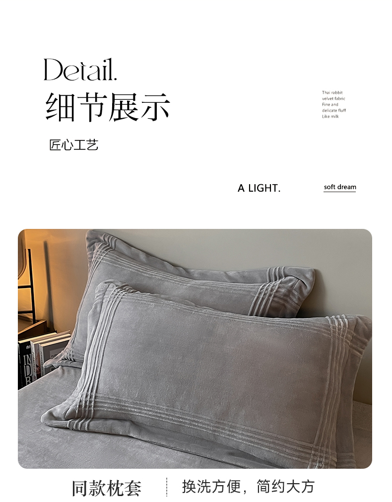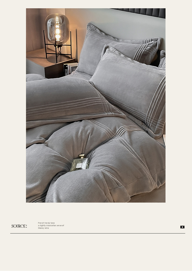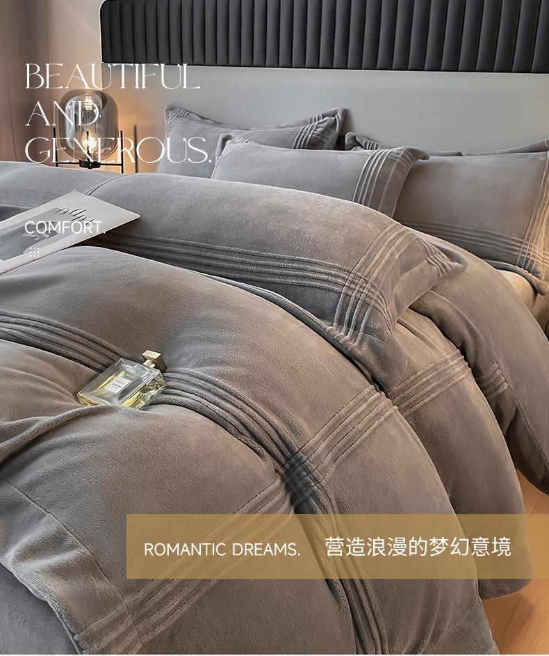 商品名称:米瑞娜 2024新款轻奢风埋绳款高克重牛奶绒四件套 美娜德-雅士灰