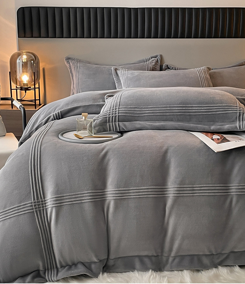 米瑞娜 2024新款轻奢风埋绳款高克重牛奶绒四件套 美娜德-雅士灰