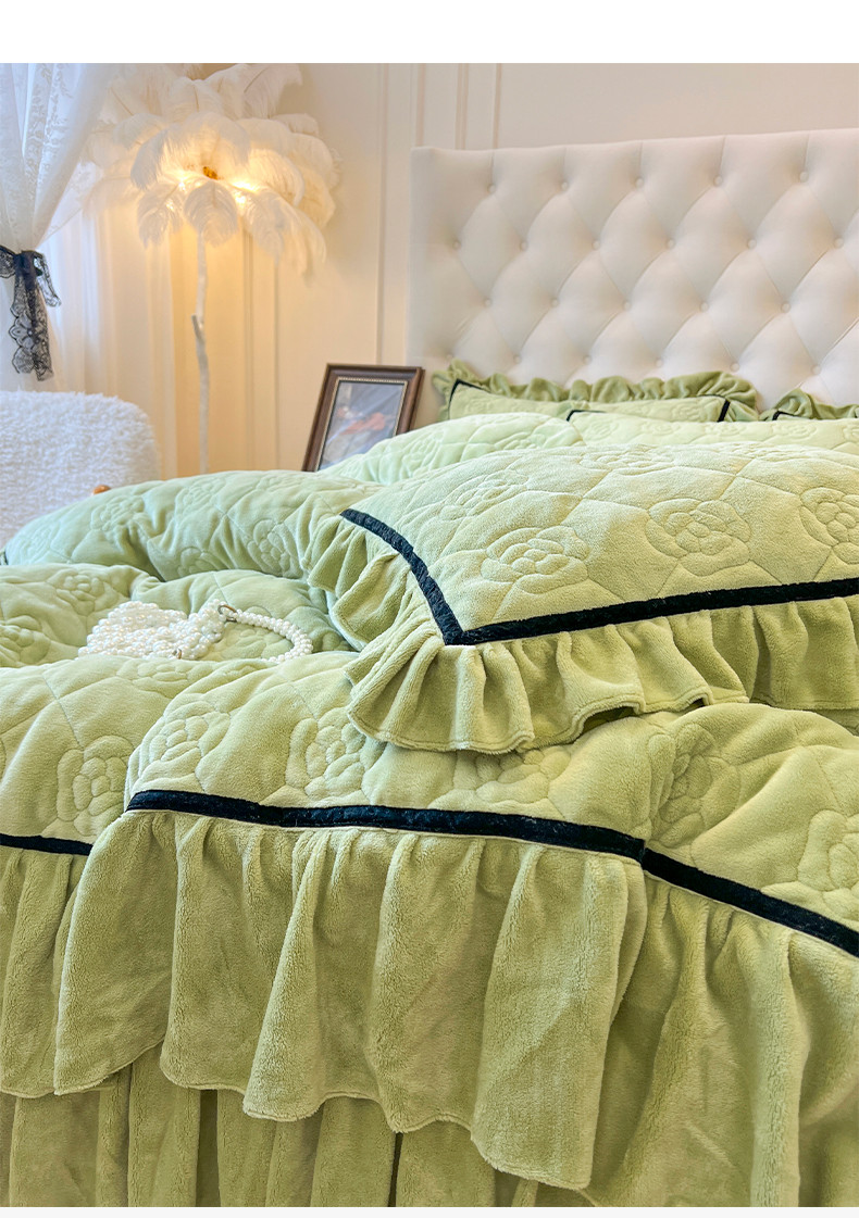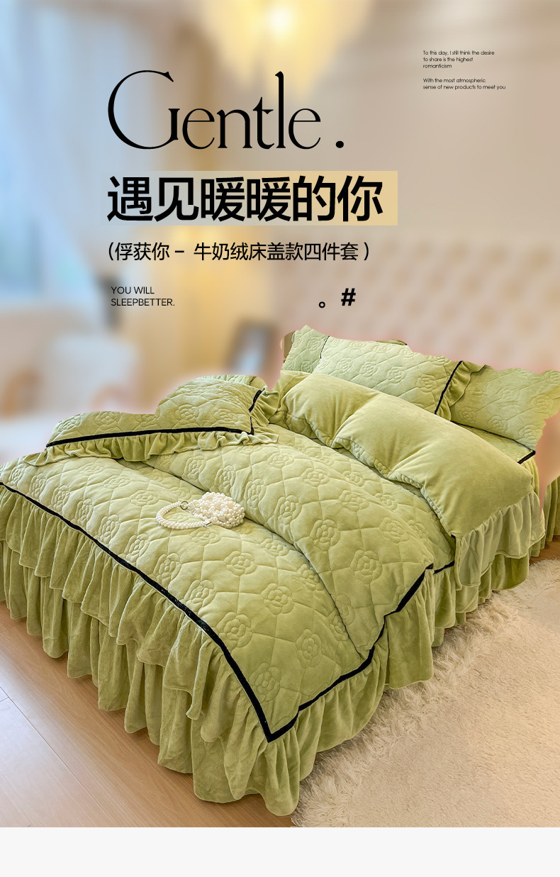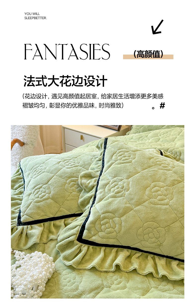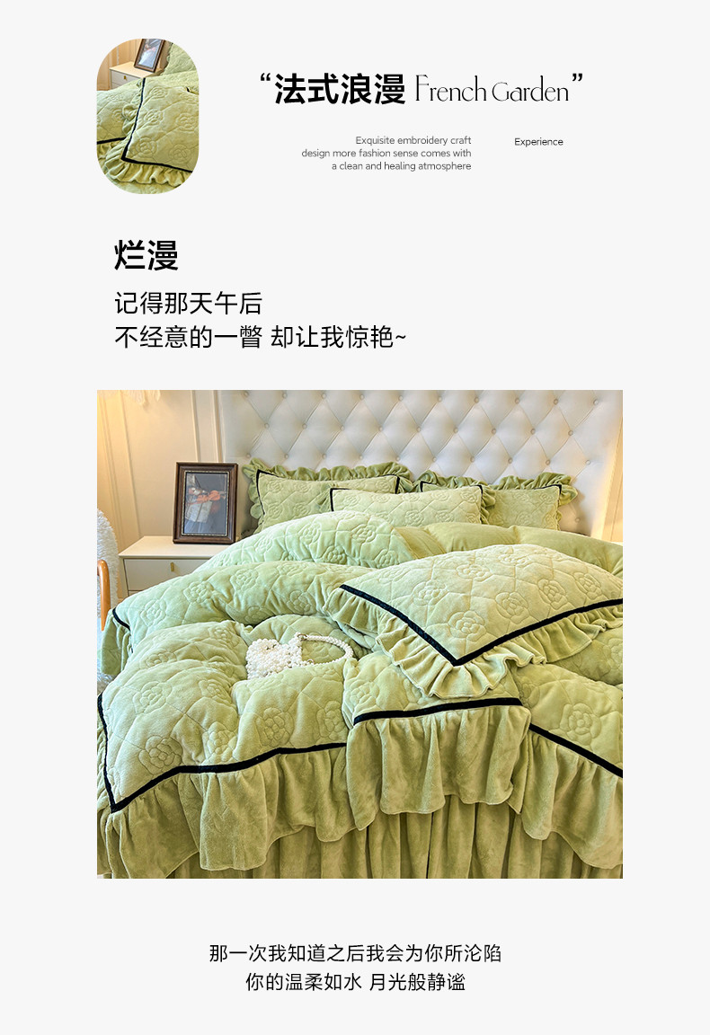 当前位置: 91家纺网 > 商品网购 > 床品套件 > 四件套 > 牛奶绒四件套 > 网红馆 2025新款高克重加厚保暖牛奶绒法式大花边四件套-眷恋 眷恋-水果绿