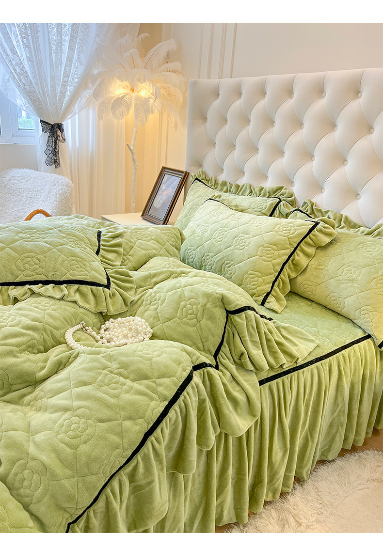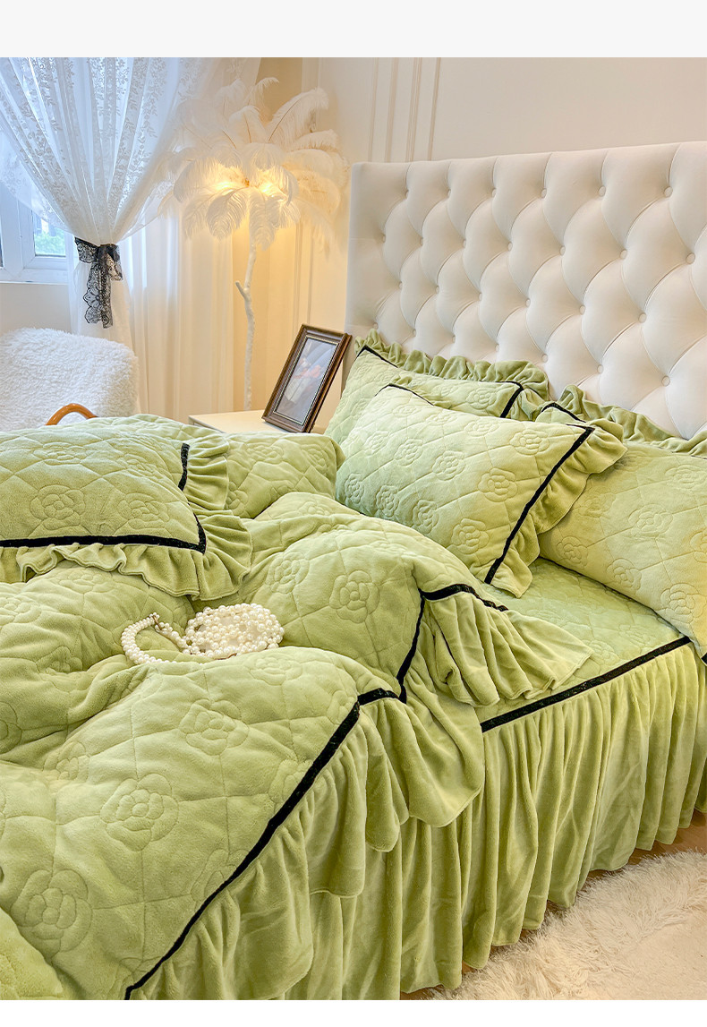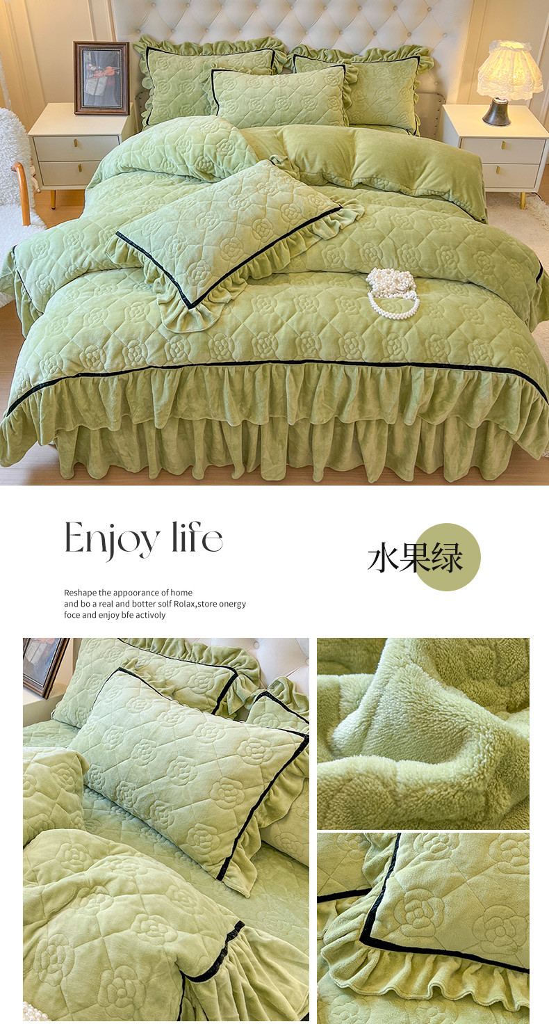 当前位置: 91家纺网 > 商品网购 > 床品套件 > 四件套 > 牛奶绒四件套 > 网红馆 2025新款高克重加厚保暖牛奶绒法式大花边四件套-眷恋 眷恋-水果绿