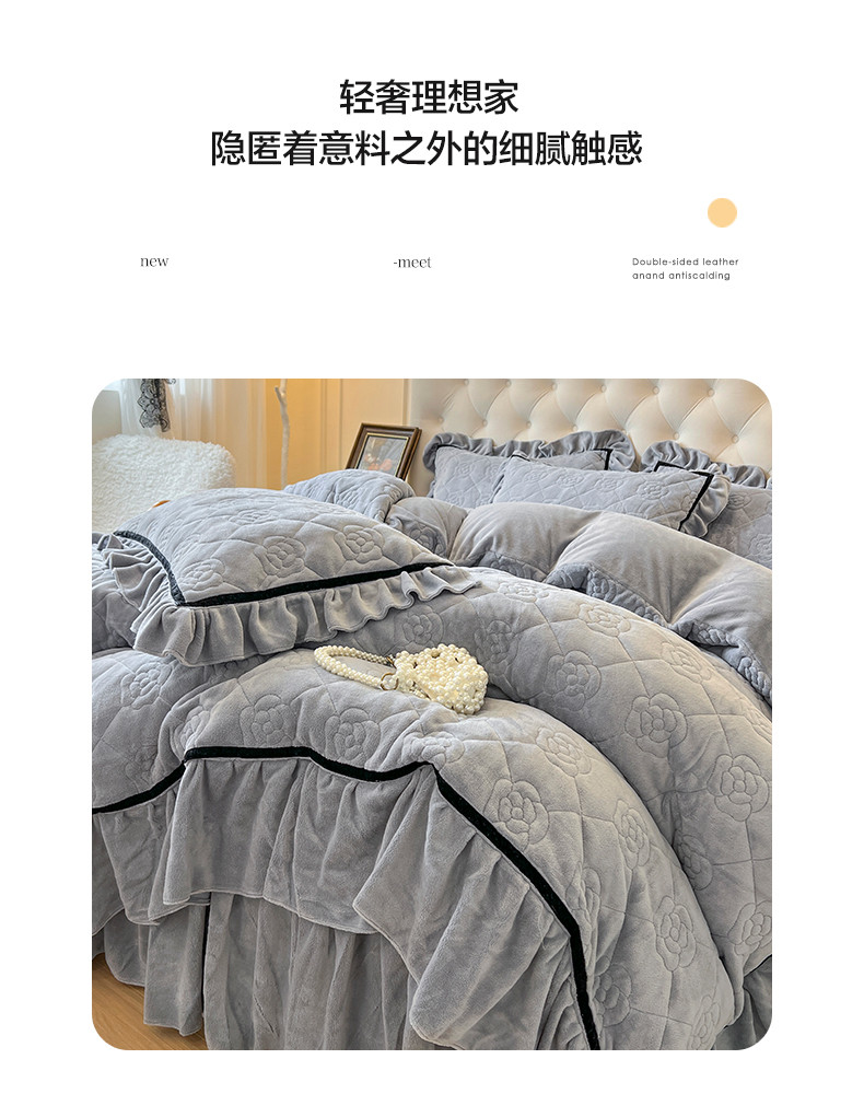 (总)网红馆(ck家纺) 2025新款高克重牛奶绒床裙四件套-卡妮娜系列,卡妮娜-粉色,卡妮娜-灰色,卡妮娜-卡其,卡妮娜-绿色,卡妮娜-米色