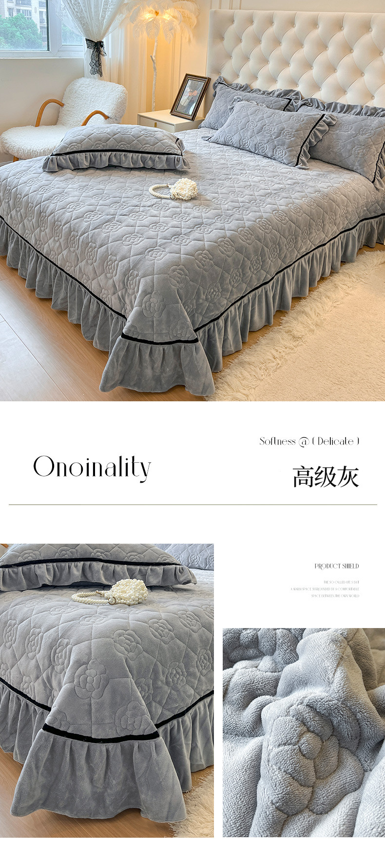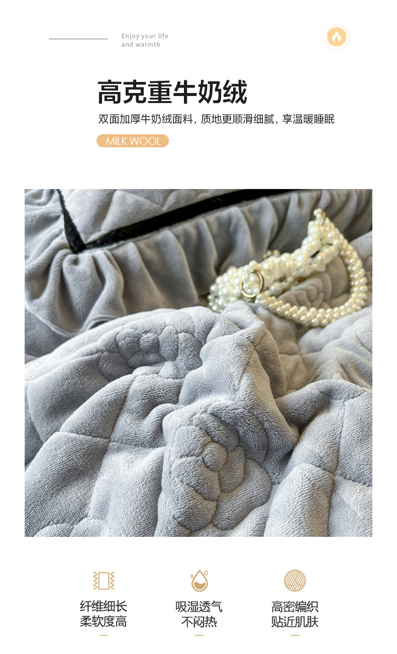 (总)网红馆(ck家纺) 2025新款高克重牛奶绒单床裙 床裙单件卡妮娜系列,卡妮娜-粉色,卡妮娜-灰色,卡妮娜-卡其,卡妮娜-绿色,卡妮娜-米色