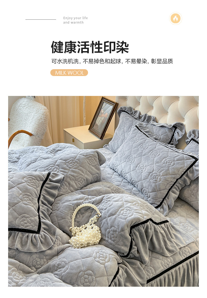 (总)网红馆(ck家纺) 2025新款色织提花牛奶绒床裙四件套-洛丽塔系列,洛丽塔-豆沙,洛丽塔-蓝色,洛丽塔-米色
