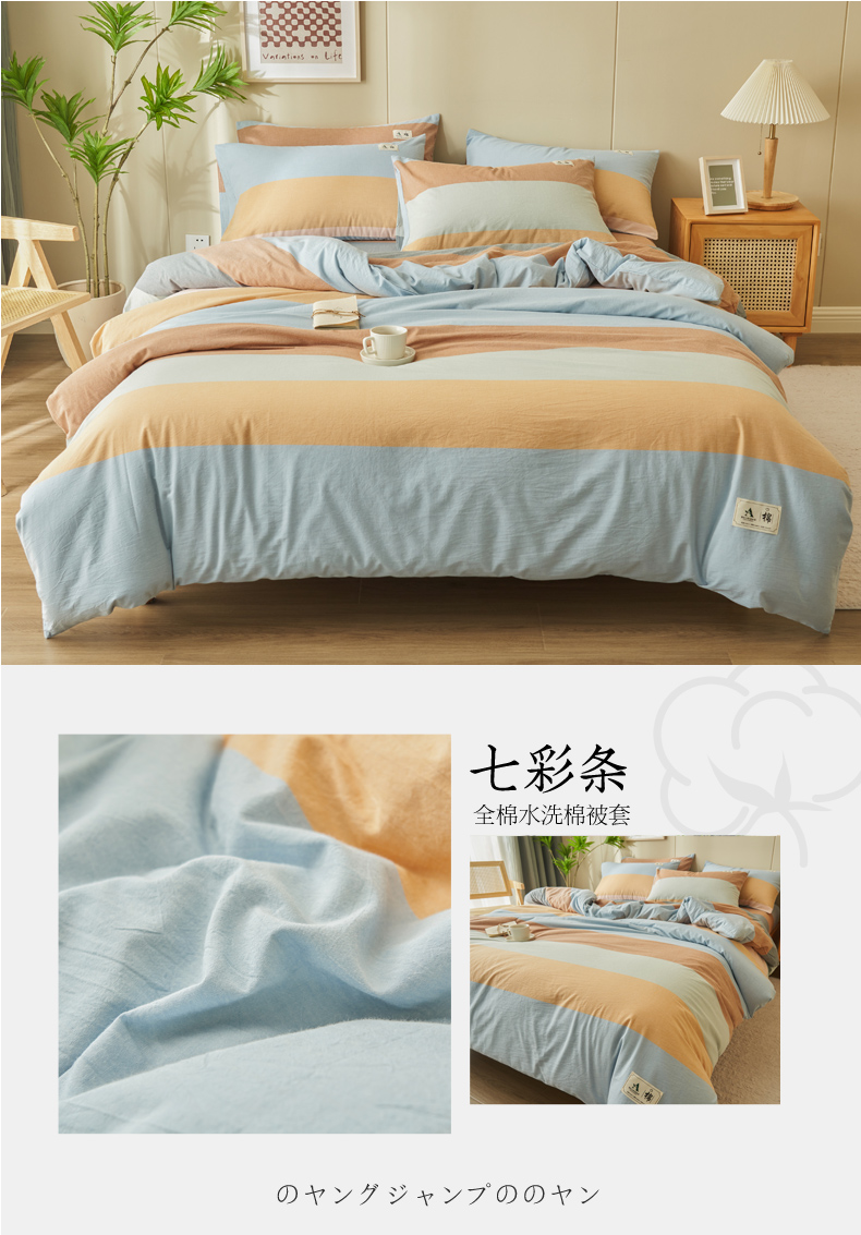 • 91家纺网 家纺一手货源 找家纺 21度C 2024新款全棉色织水洗被套 七彩条