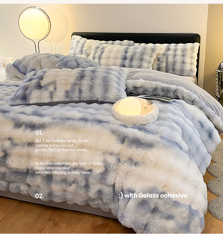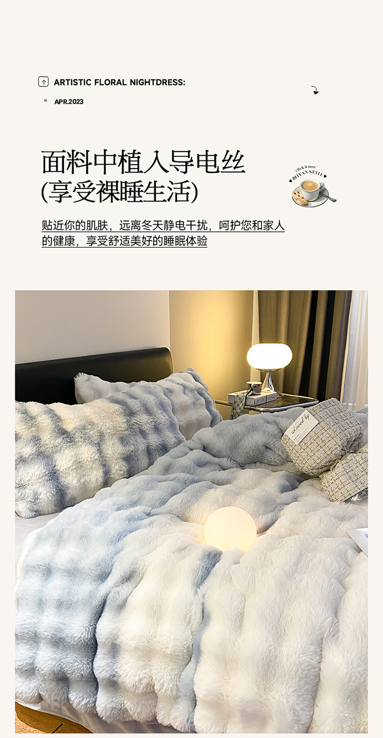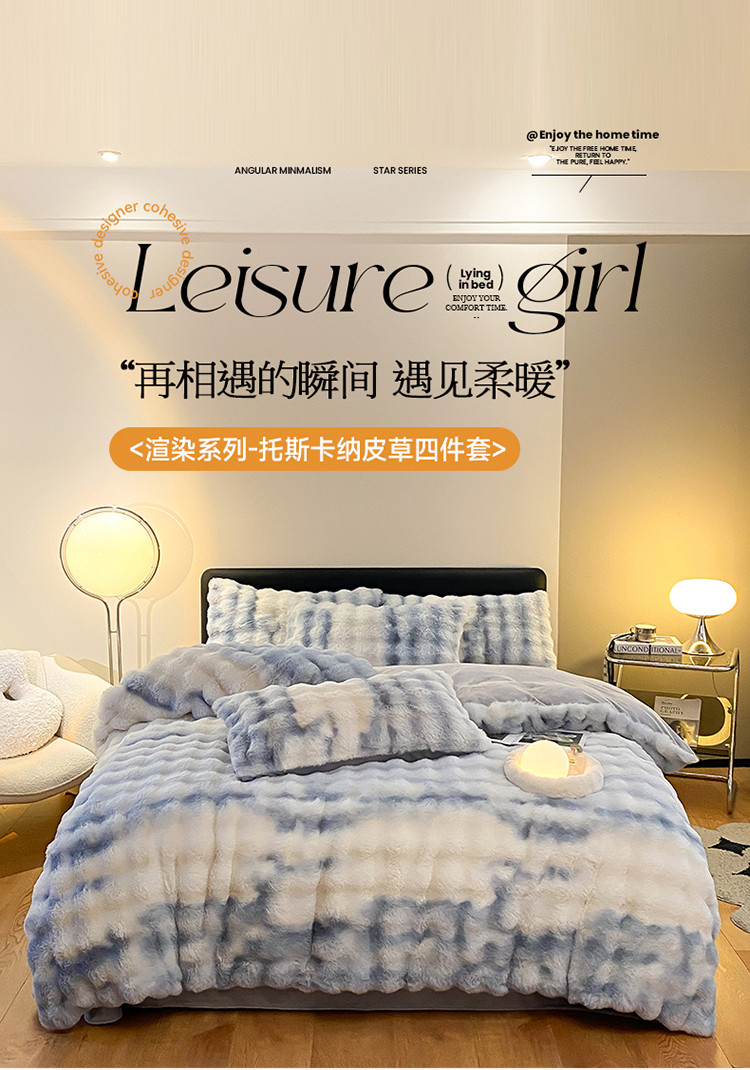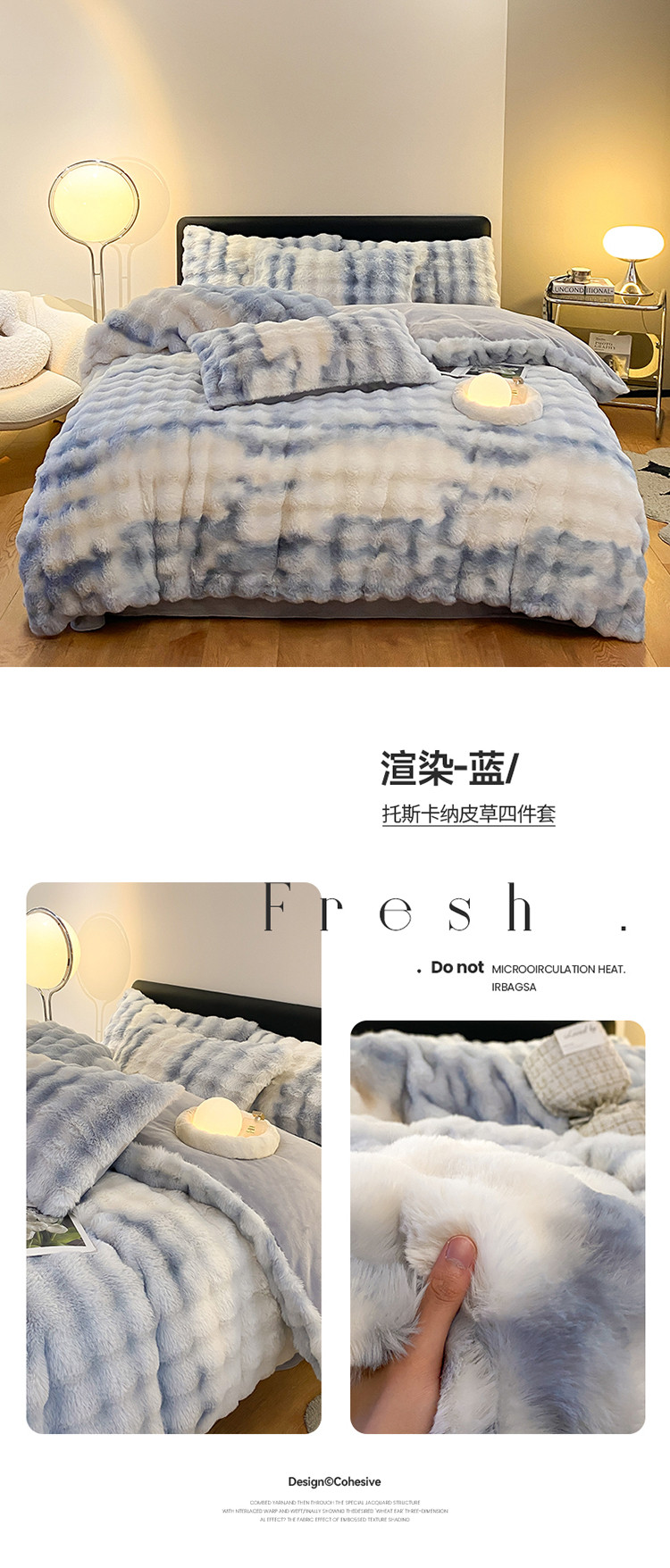 商品名称:澳梵 2023新款【极简浪漫】渲染系列-托斯卡纳皮草四件套 渲染-蓝