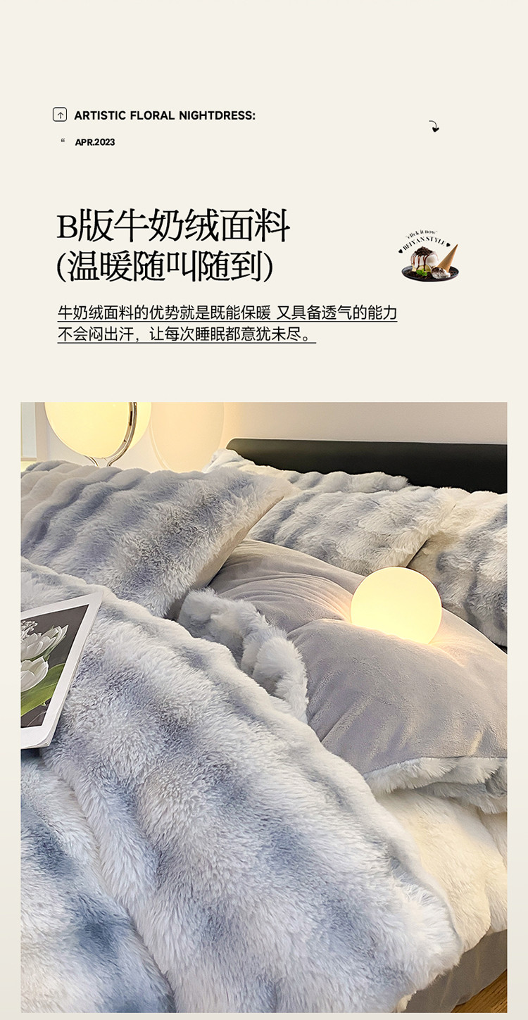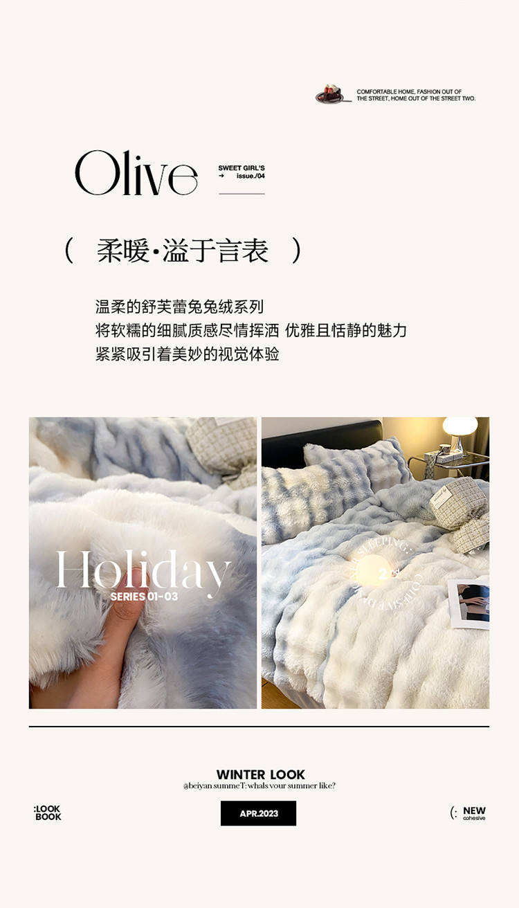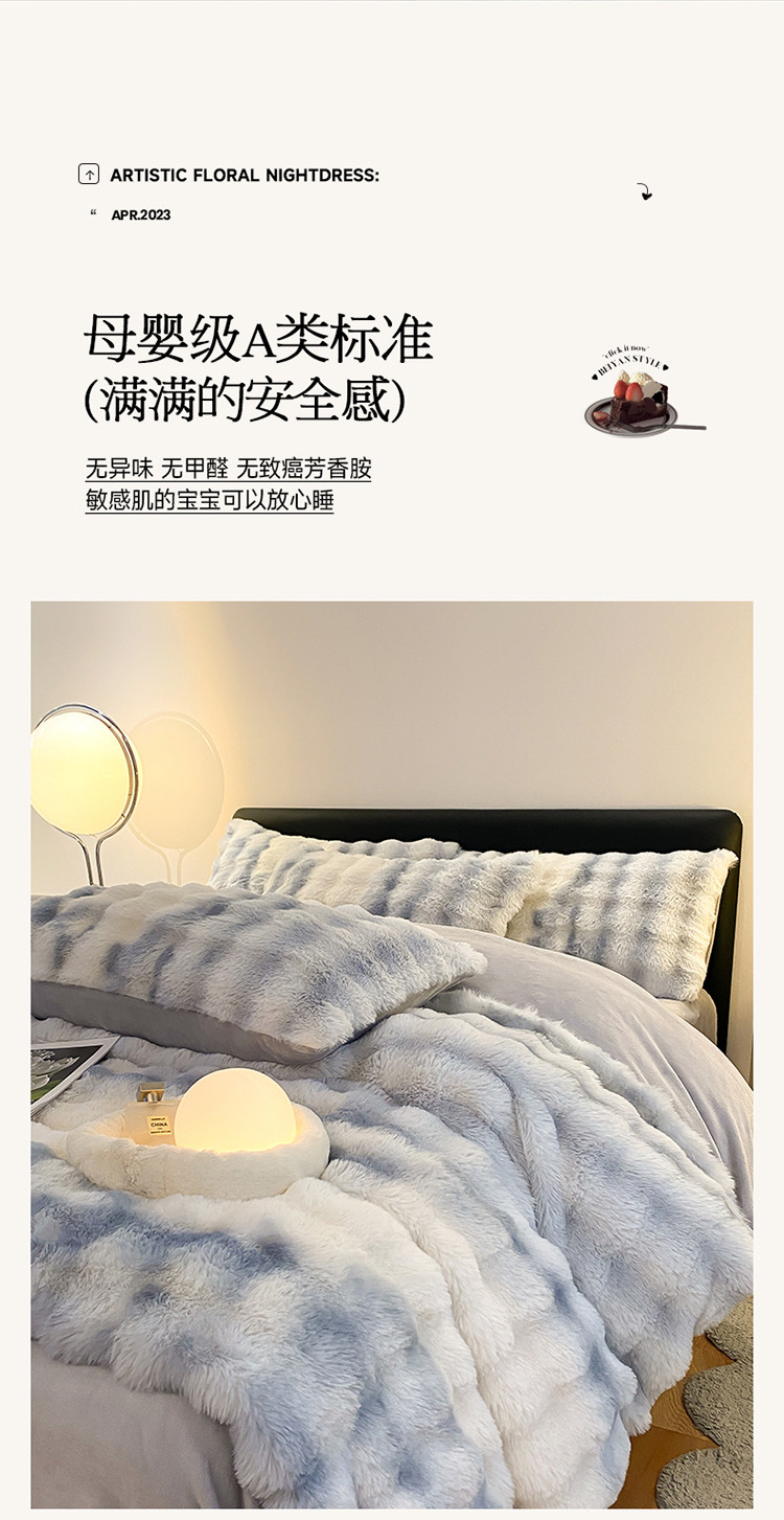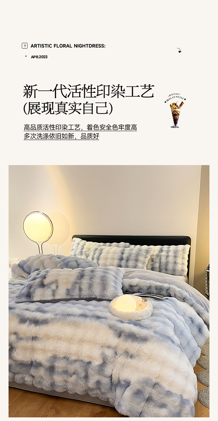 商品名称:澳梵 2023新款【极简浪漫】渲染系列-托斯卡纳皮草四件套 渲染-蓝
