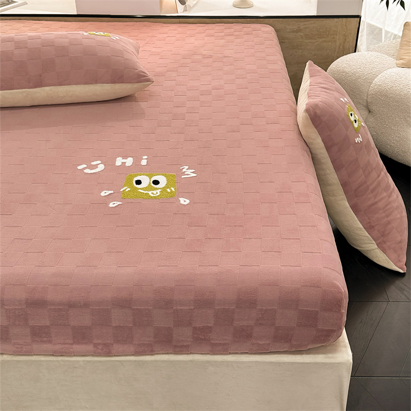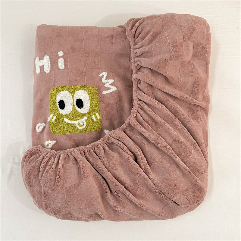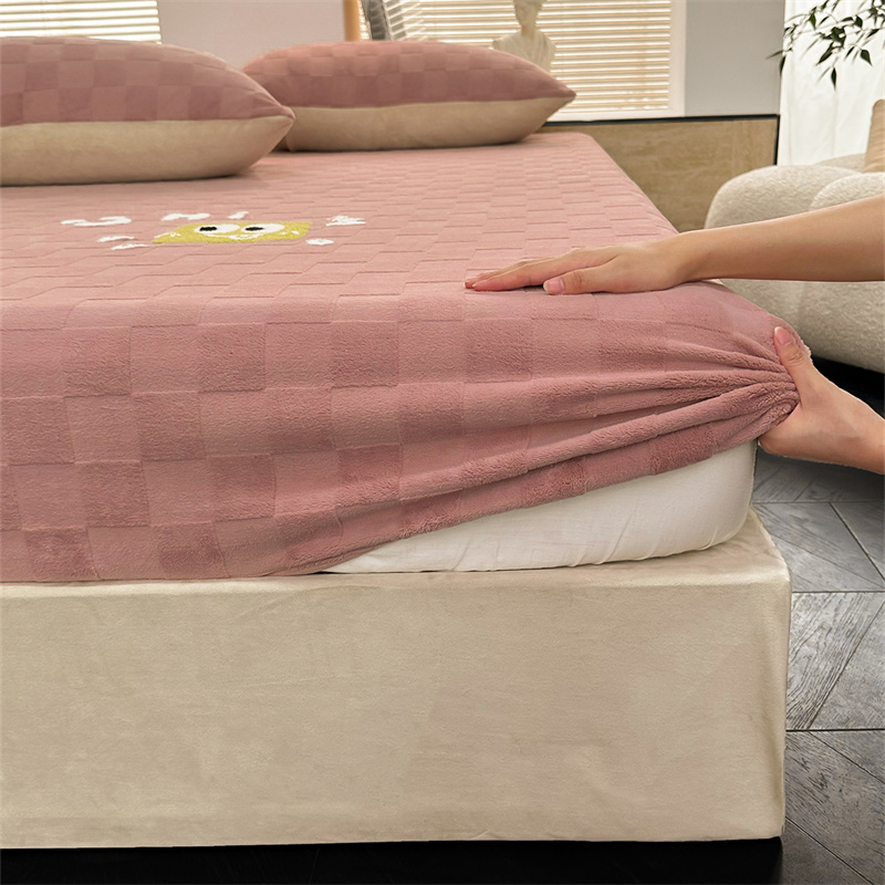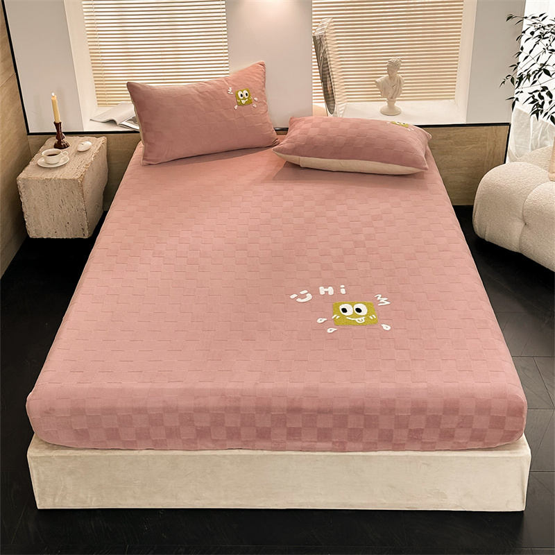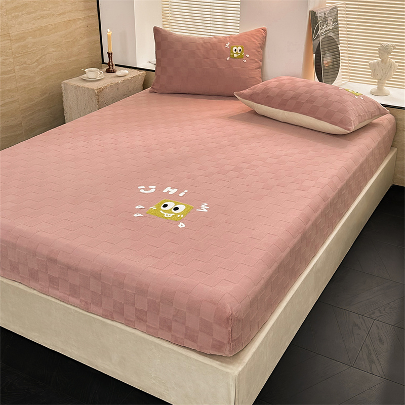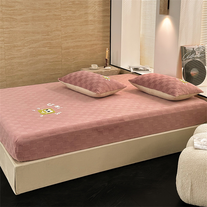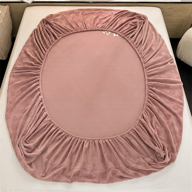 洋铭区(原狠狠爱)2023新款华夫格单品绒床笠 清格 豆沙