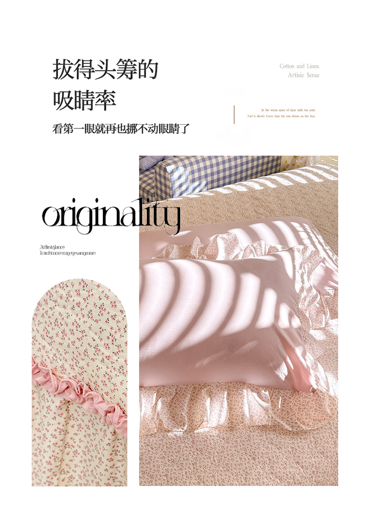 (总)漫布云家纺 2026春夏新款超柔云朵棉古法水洗棉床盖款四件套--赫本风系列,花慕里紫 , 梨花落 ,落日甜茶 ,莫松染 ,樱桃可可, 橘子花开
