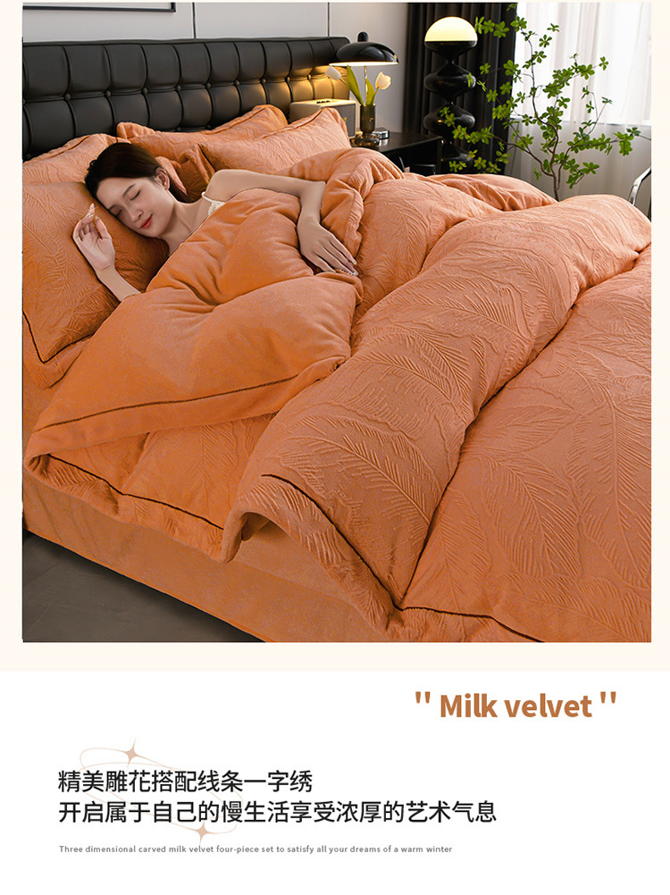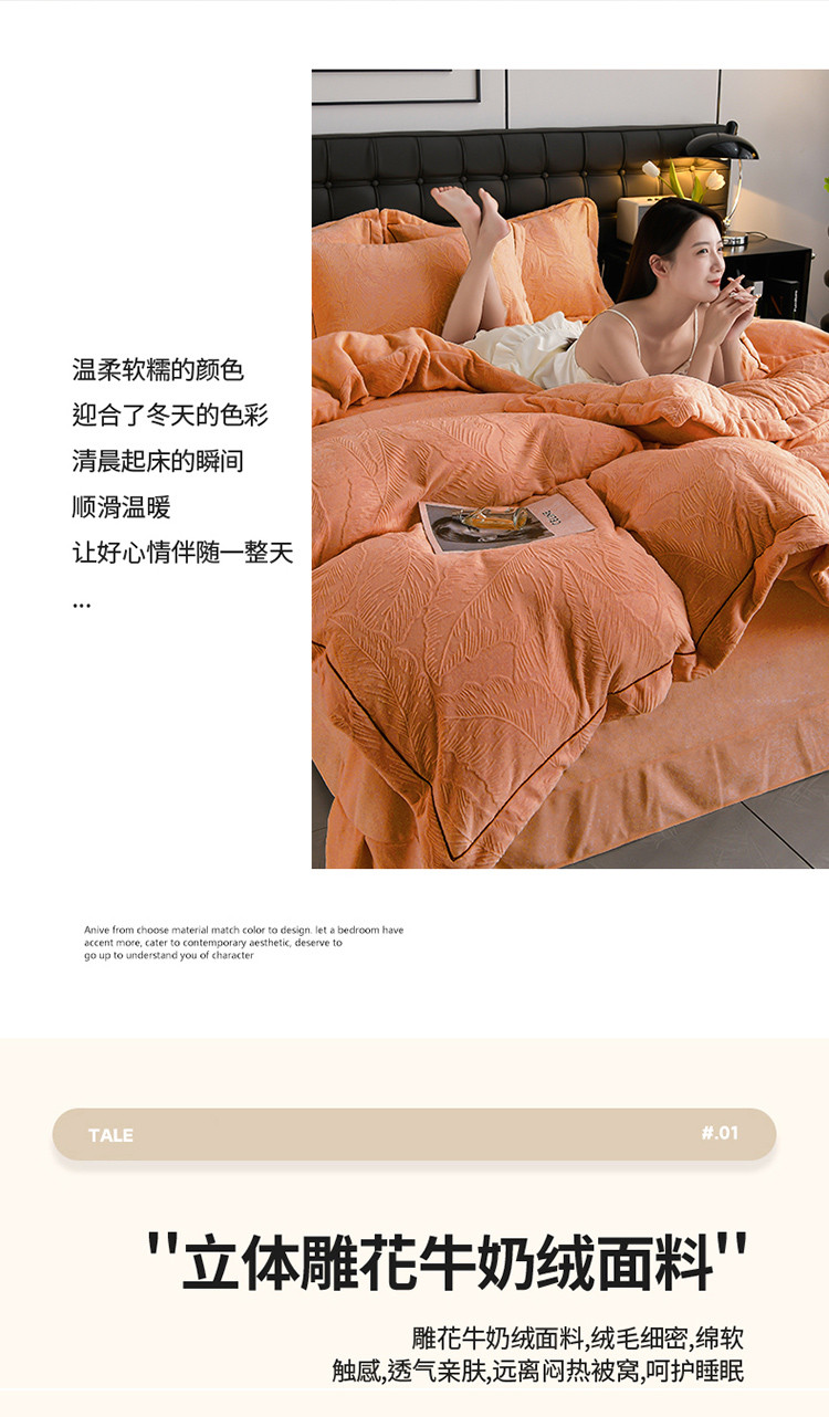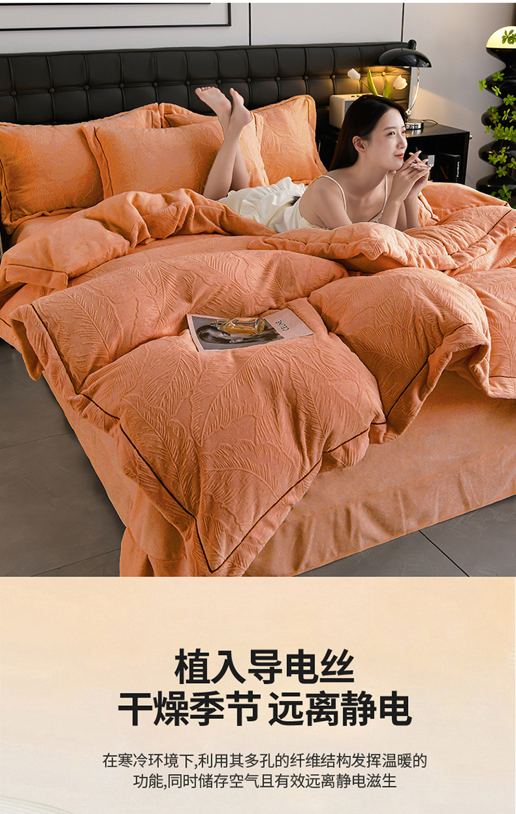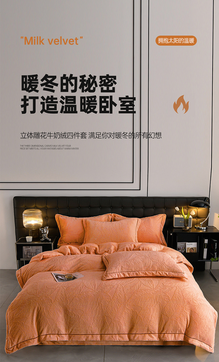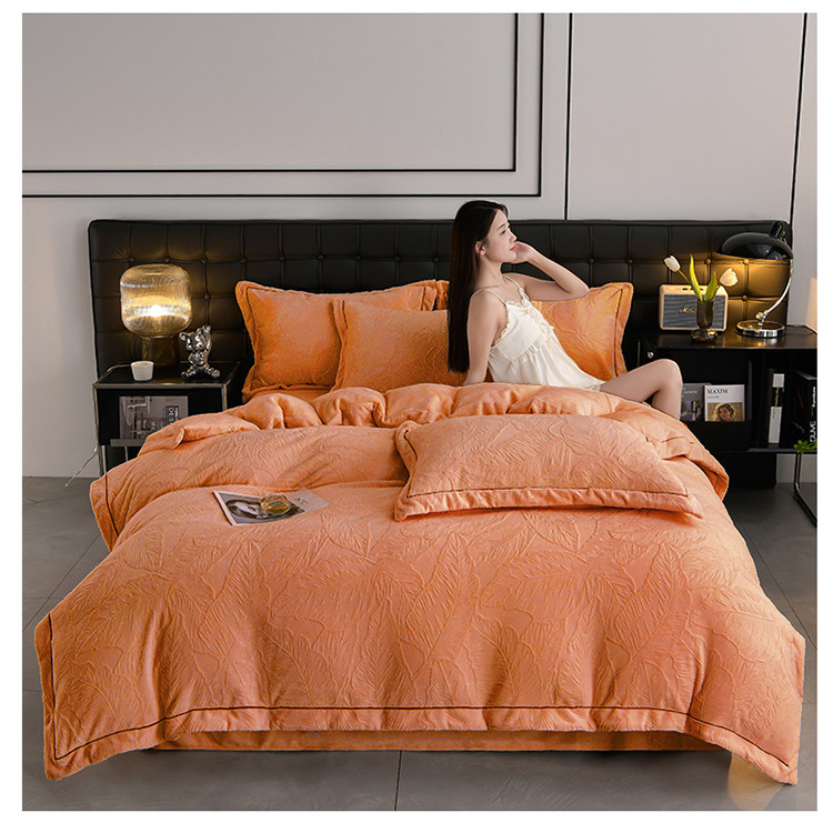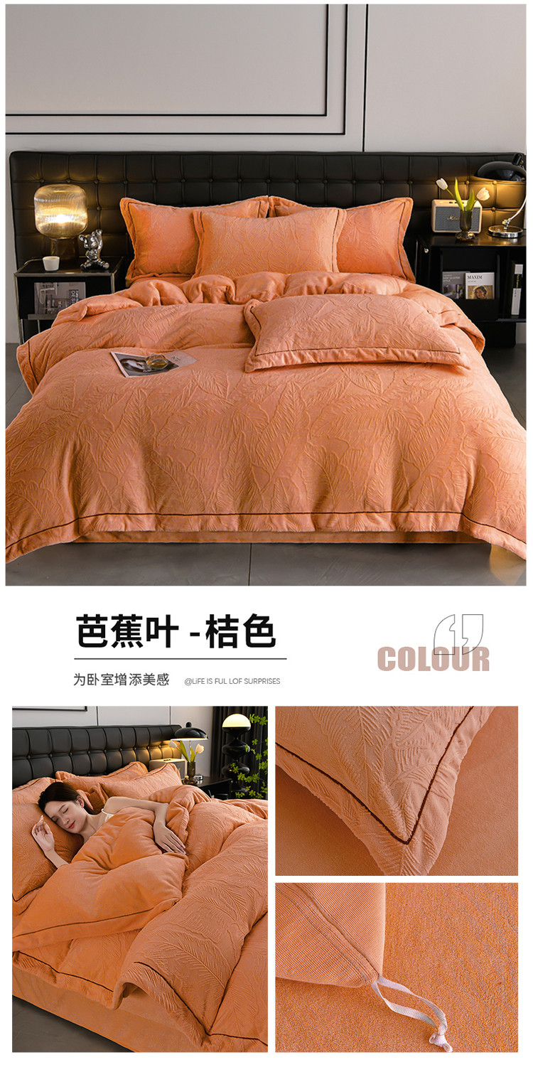 商品名称:苏迪 2025新款牛奶绒四件套-芭蕉叶 芭蕉叶-桔色