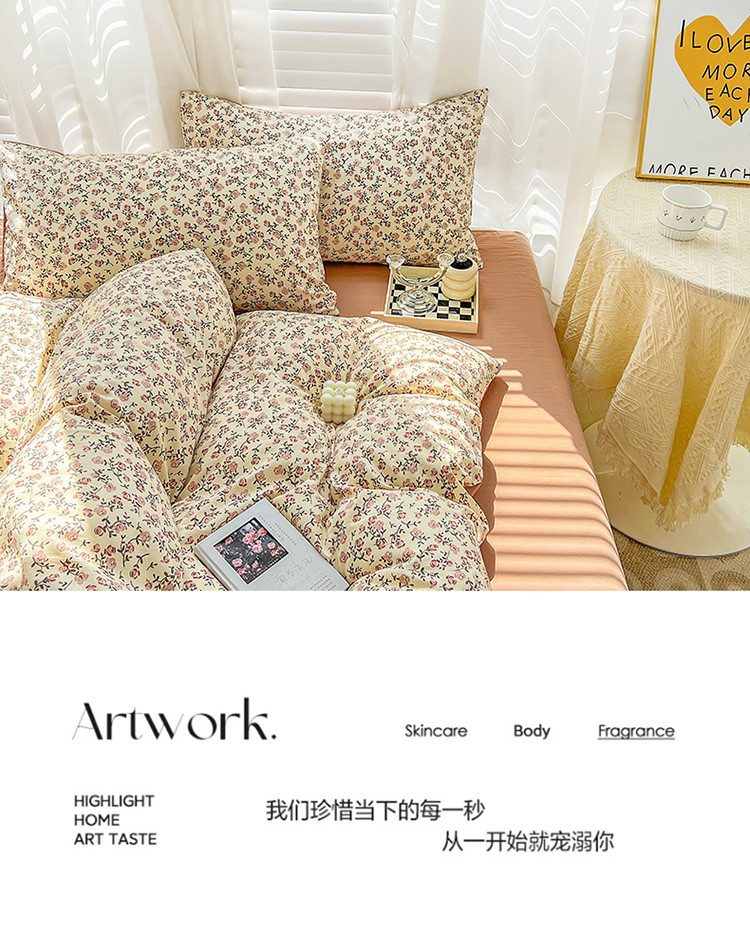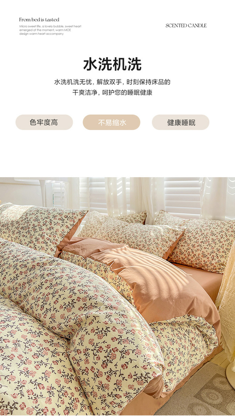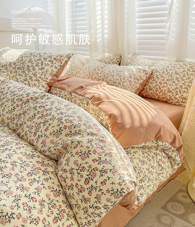 当前位置: 91家纺网 > 商品网购 > 床品套件 > 四件套 > 全棉普通四件套 > 暖芯优选 2023直播新款法式风双层纱棉麻水洗棉四件套 玫瑰园