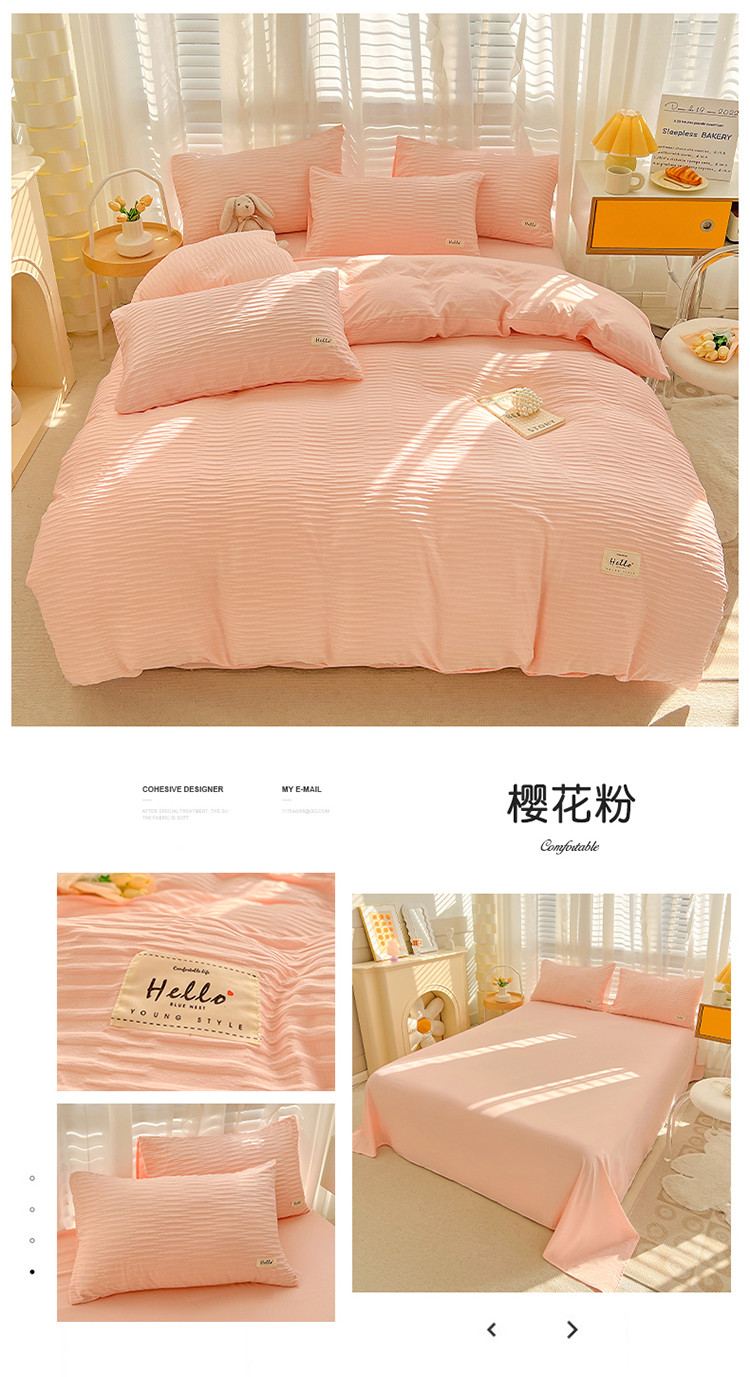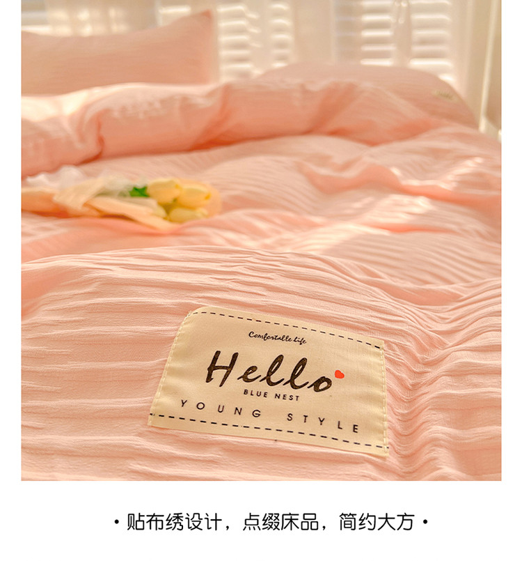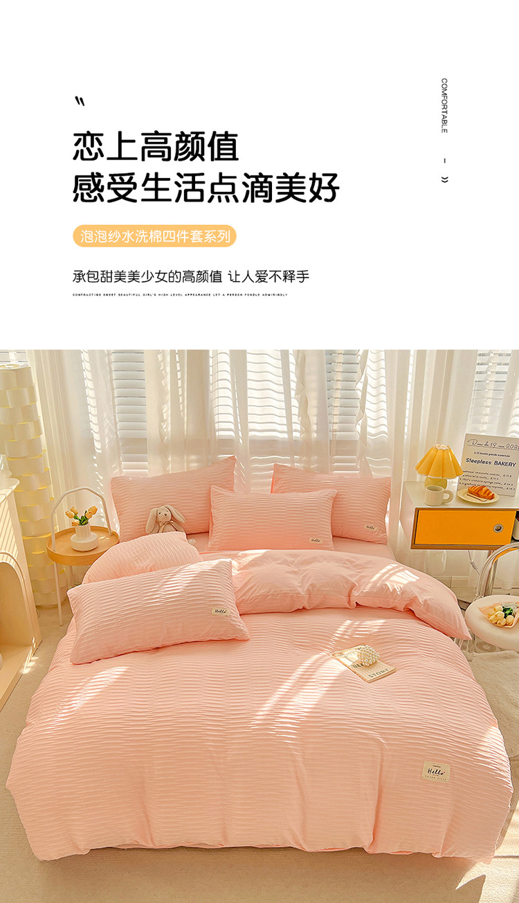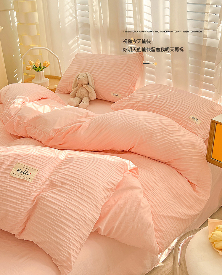 当前位置: 91家纺网 > 商品网购 > 床品套件 > 四件套 > 全棉普通四件套 > 暖芯优选 2023新款韩版泡泡纱水洗棉拼色床单床笠四件套 樱花粉
