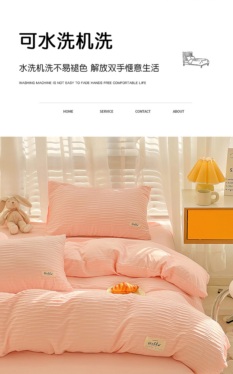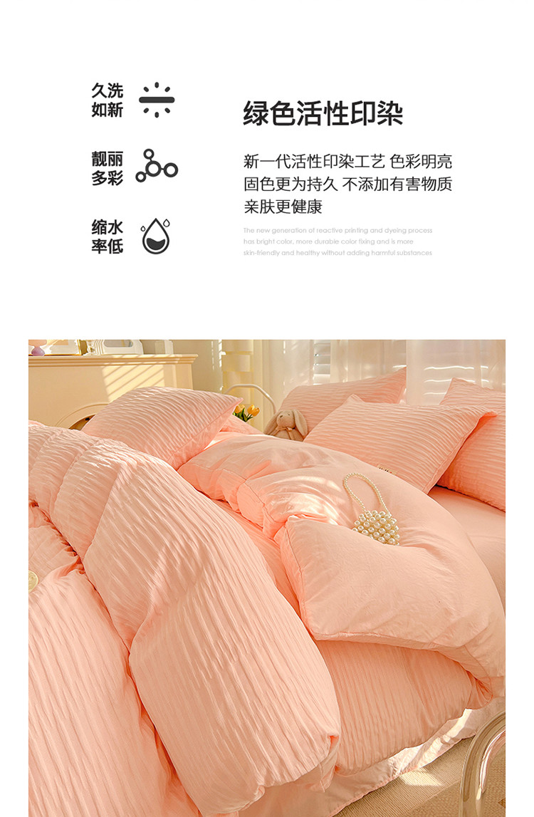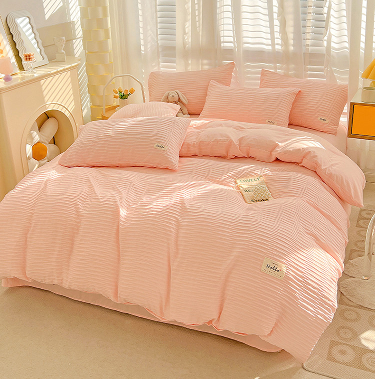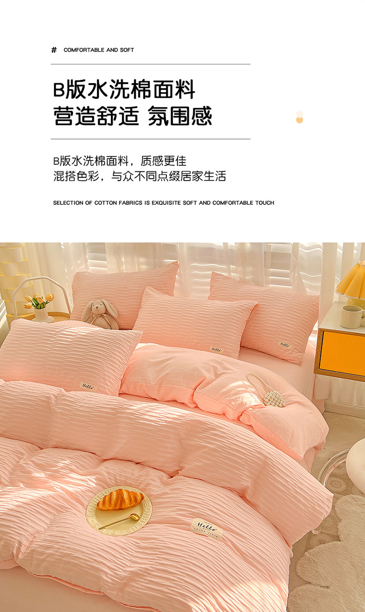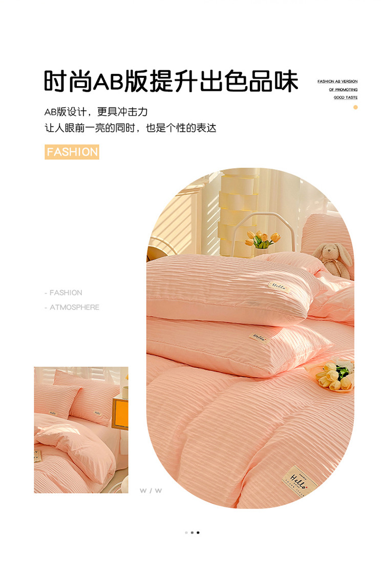 当前位置: 91家纺网 > 商品网购 > 床品套件 > 四件套 > 全棉普通四件套 > 暖芯优选 2023新款韩版泡泡纱水洗棉拼色床单床笠四件套 樱花粉