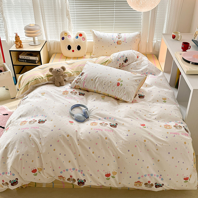 (总)昔可 2023新款学生季卡通普通款四件套,彩色气球熊,彩条恐龙,憨憨熊,花蜜小兔,蘑菇兔,圈圈草莓,蔬菜小兔,郁金香小萌狗