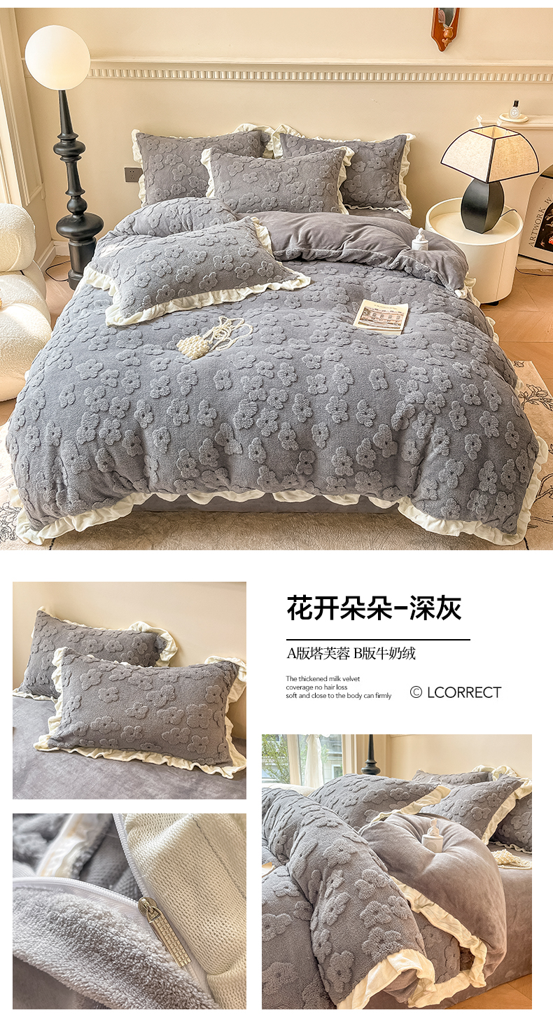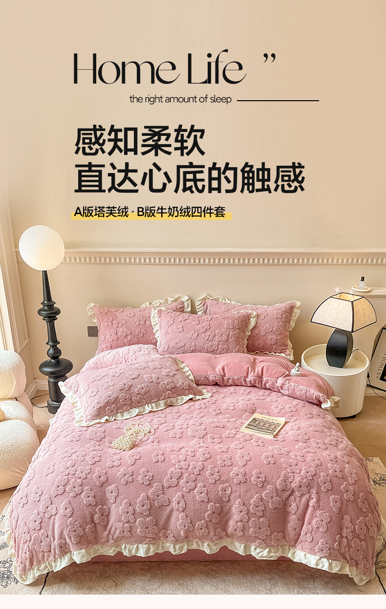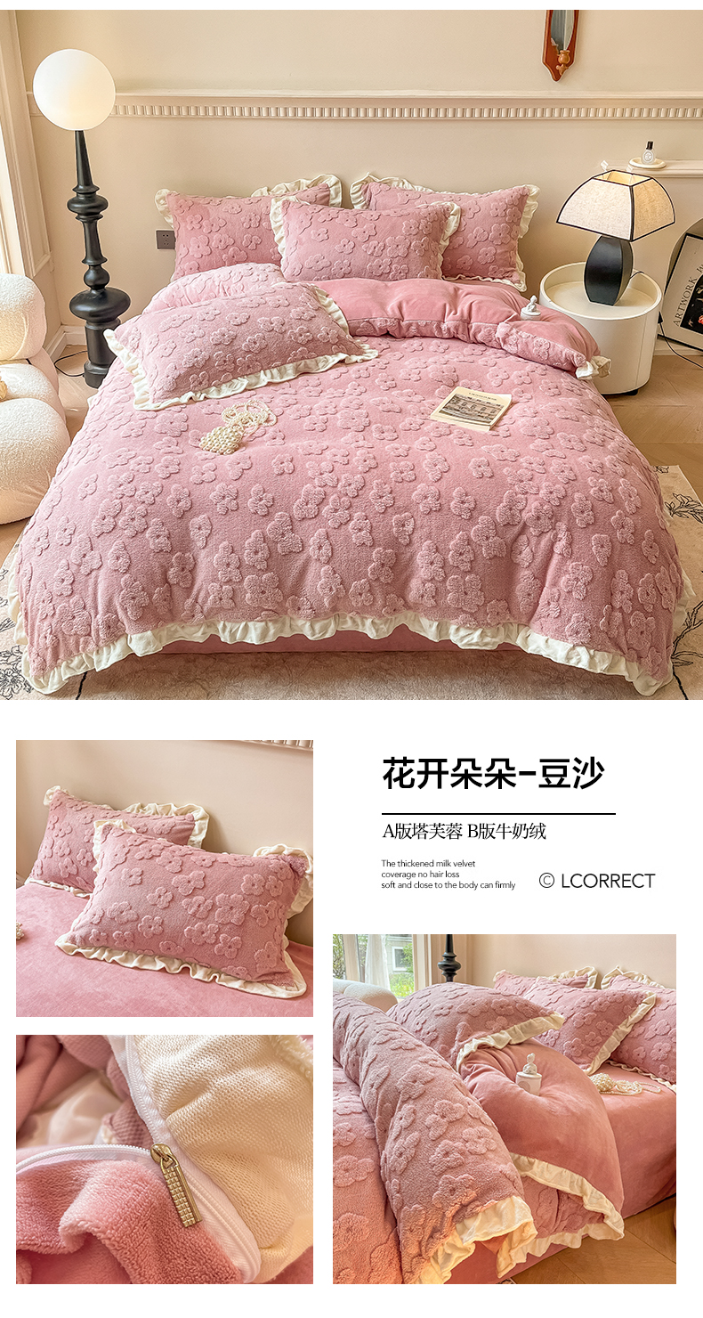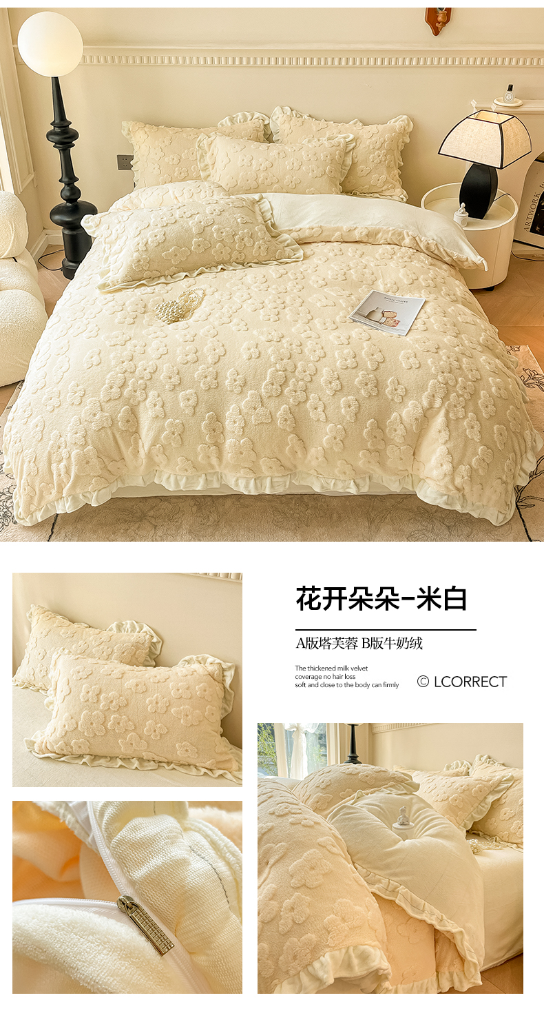 (总)沐辰 2023新款塔芙绒提花四件套-花开朵朵