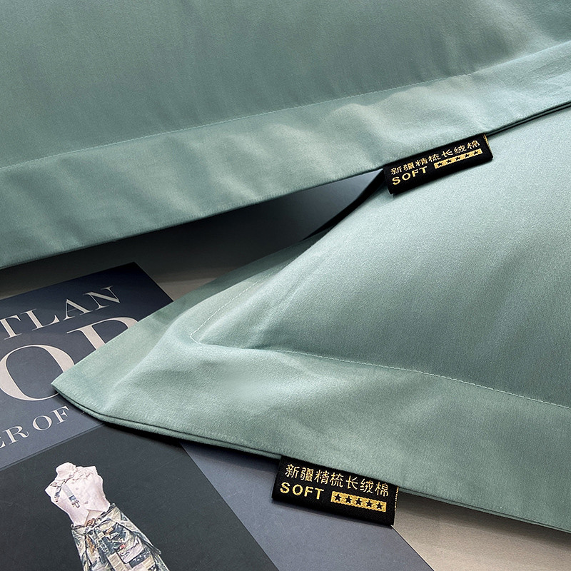 商品名称:莱阁亿 2023新款高支高密纯色全棉磨毛单枕套 森林绿