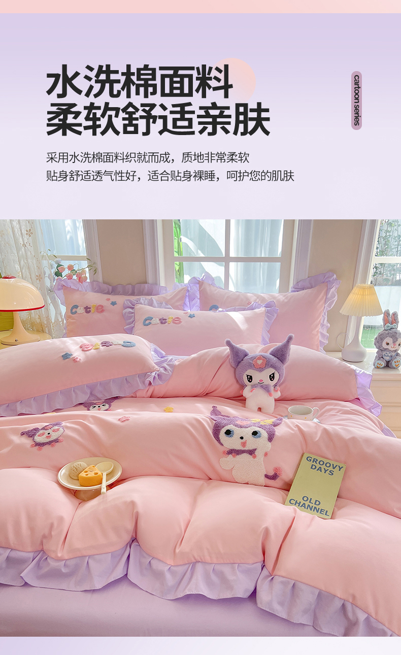 (总)雨菲家纺 2025新款学生季水洗棉毛巾绣花荷叶花边三件套四件套床单床笠款,开心狗粉,开心狗黄,开心狗蓝,美人鱼粉,美人鱼粉紫,美人鱼黄,美人鱼蓝,美人鱼紫,米米兔粉,米米兔粉紫,米米兔杏,米米兔杏紫,米米兔紫