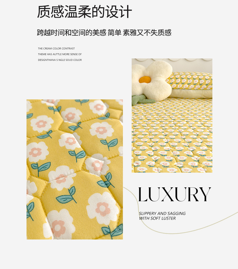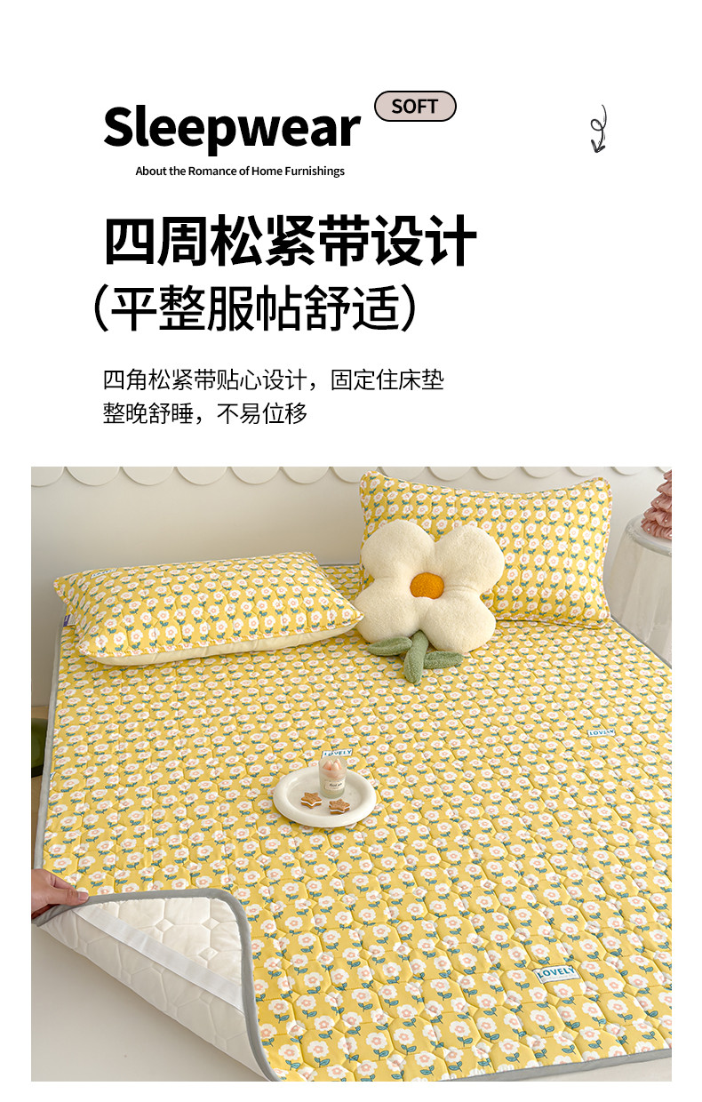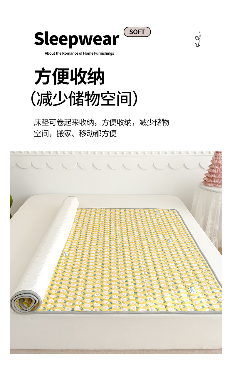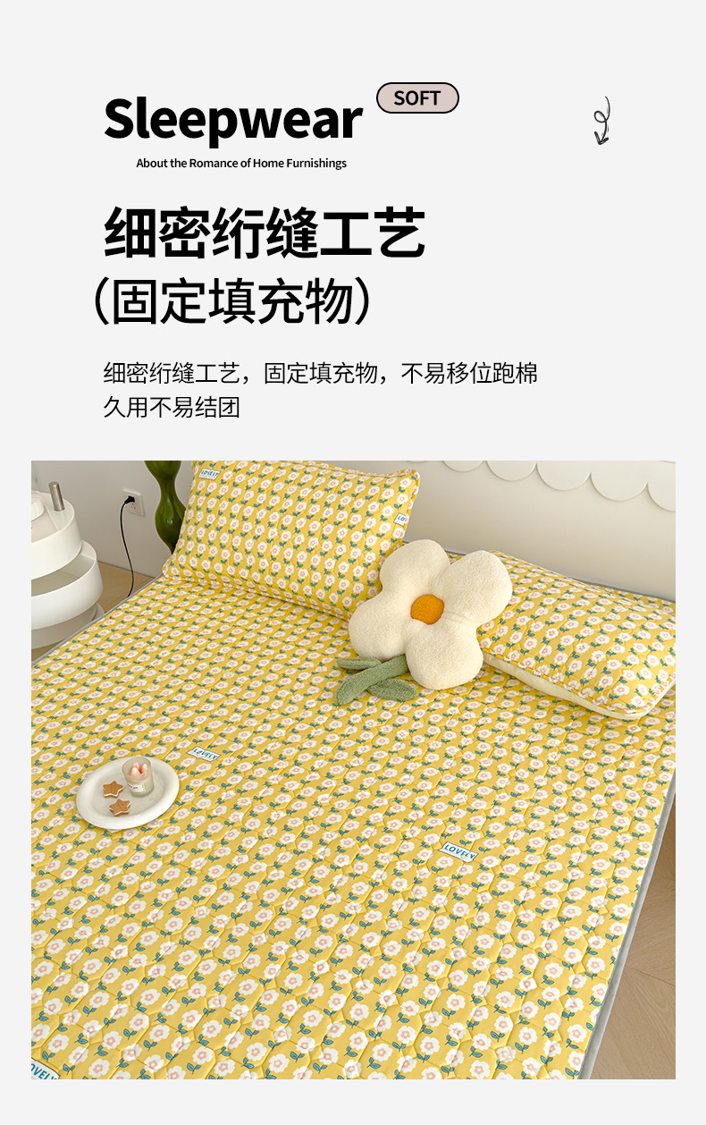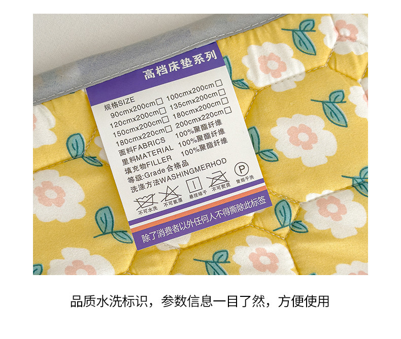 商品名称:伊人坊 2024新款亲肤水洗薄款软床垫防滑床护垫床褥学生垫子可机洗 陌上花开-黄