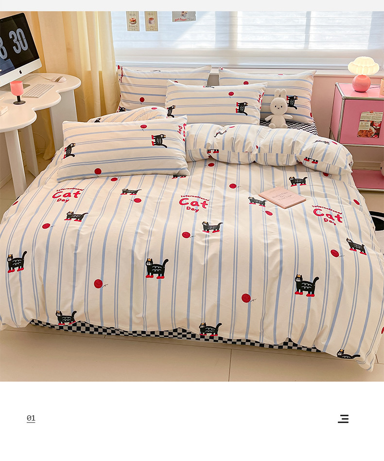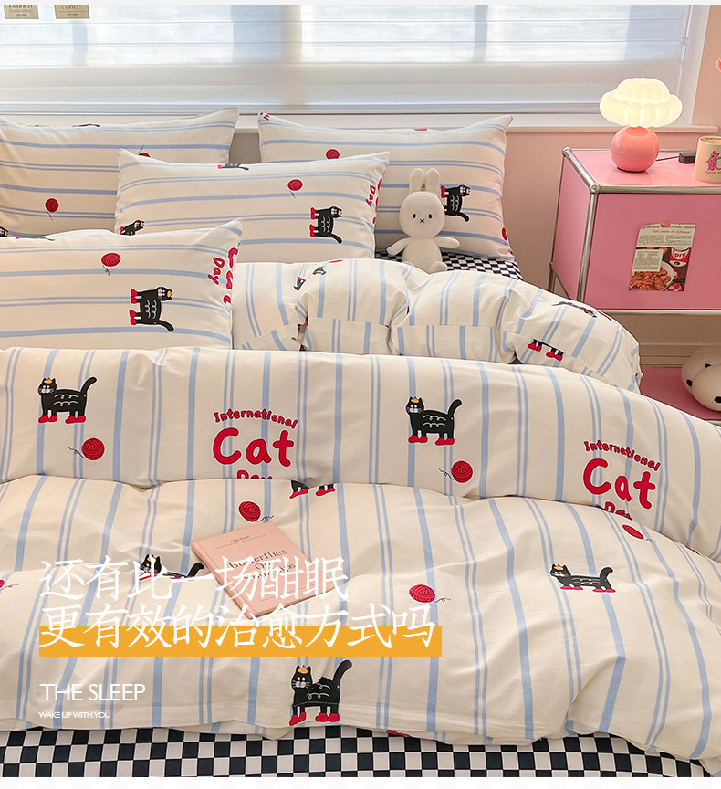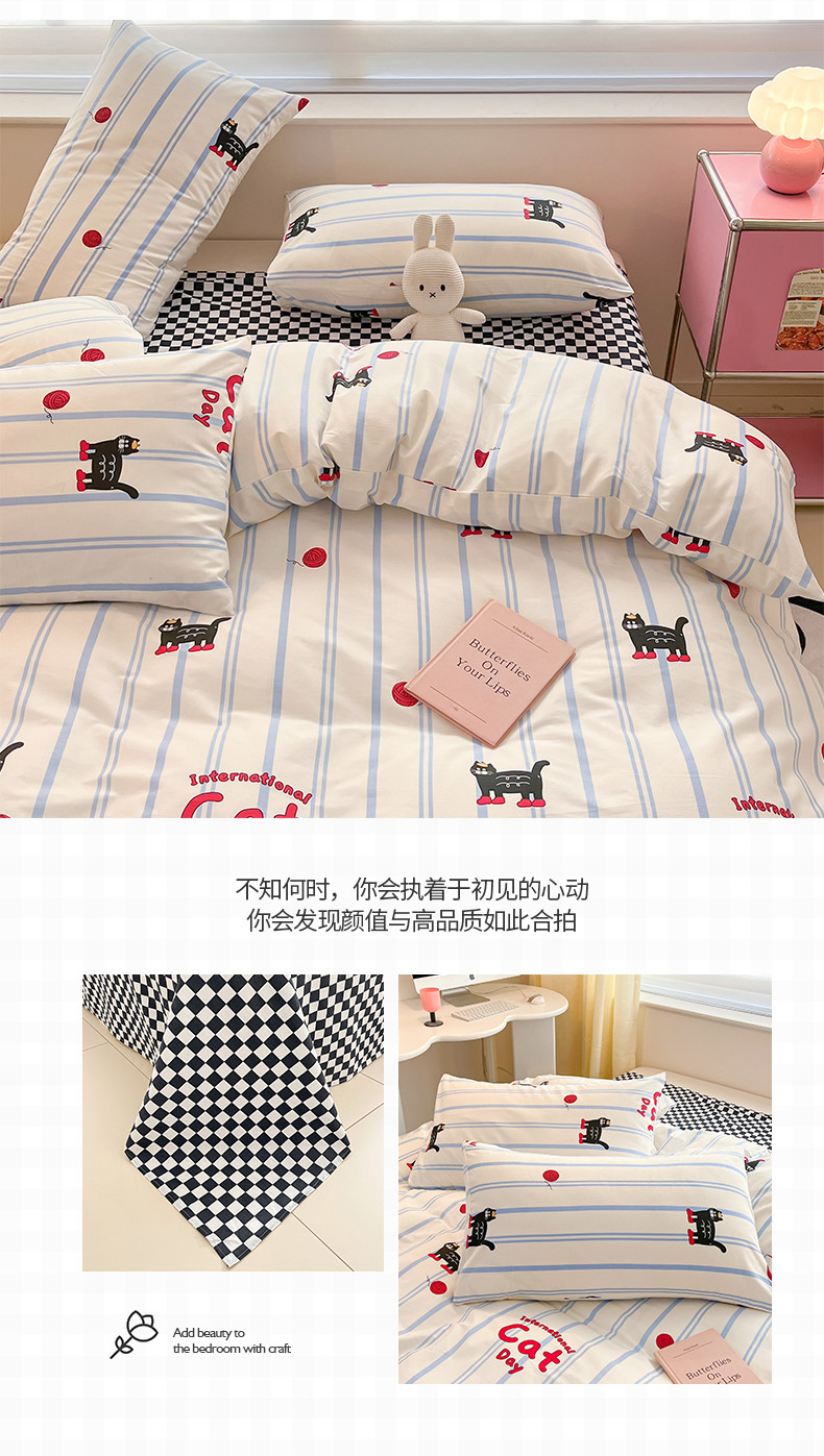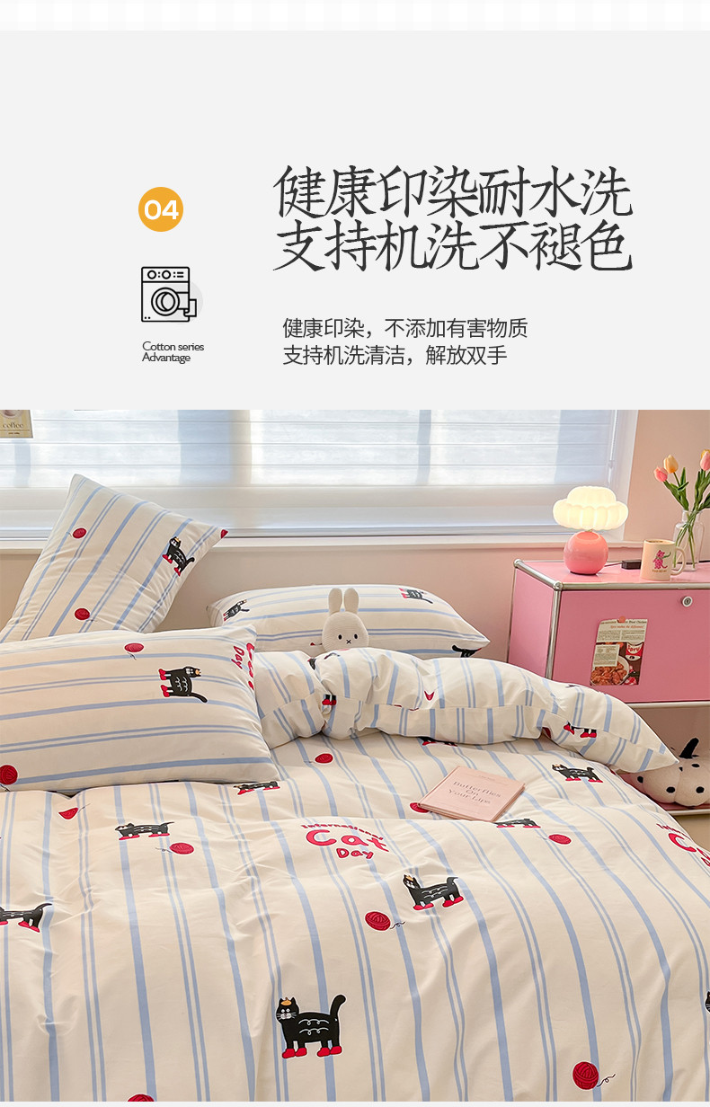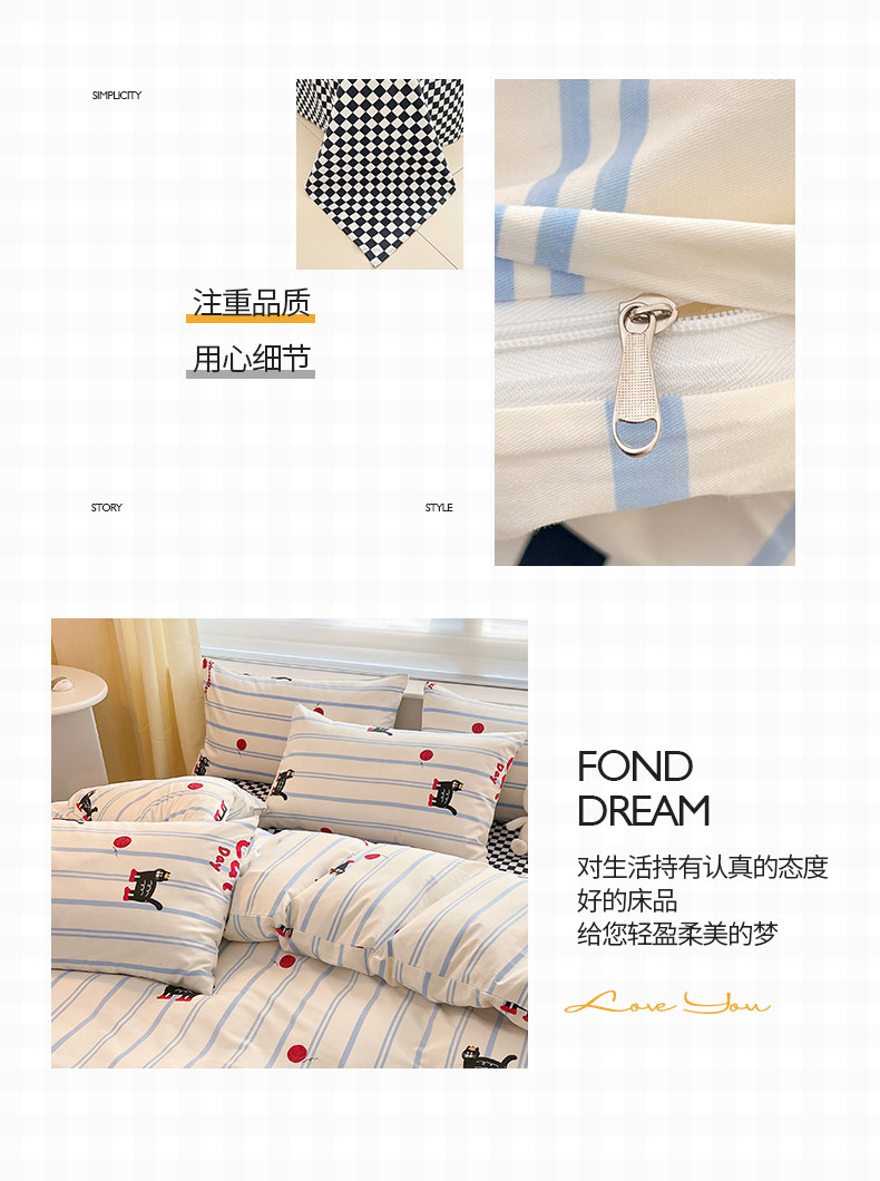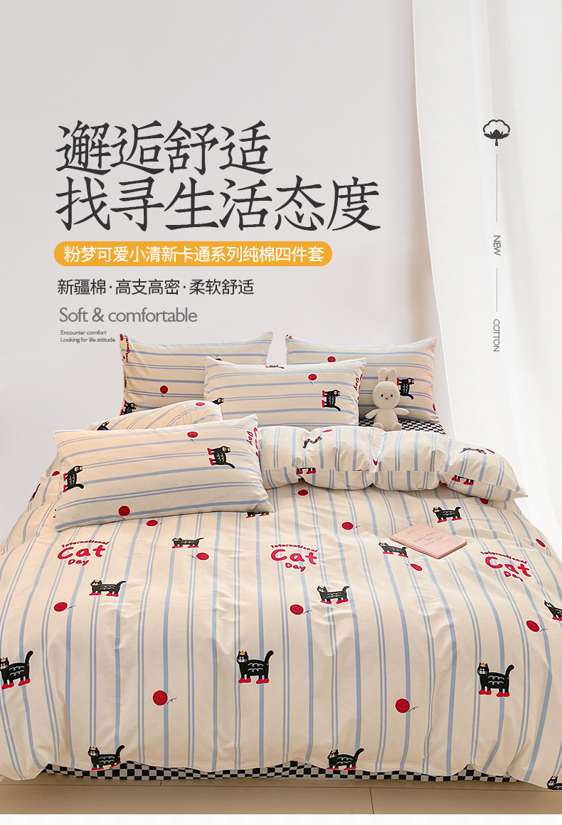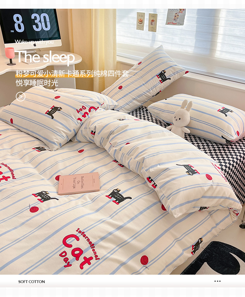 (总)桃子家居 2026新款ins小清新费尔岛猫咪全棉纯棉印花四件套,棉-费尔岛狗狗,棉-蓝豹纹猫,棉-蓝格线条狗,棉-美好熊兔,棉-喵吃鱼粉,棉-喵吃鱼蓝,棉-少女黑皮猫,棉-甜粉樱桃猫,棉-甜甜日记,棉-星星猫咪,棉-星月小马,棉-紫格梦幻狗