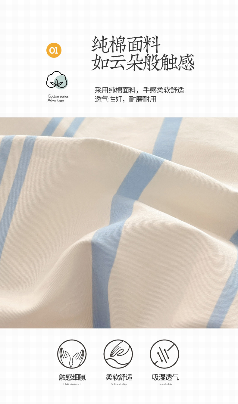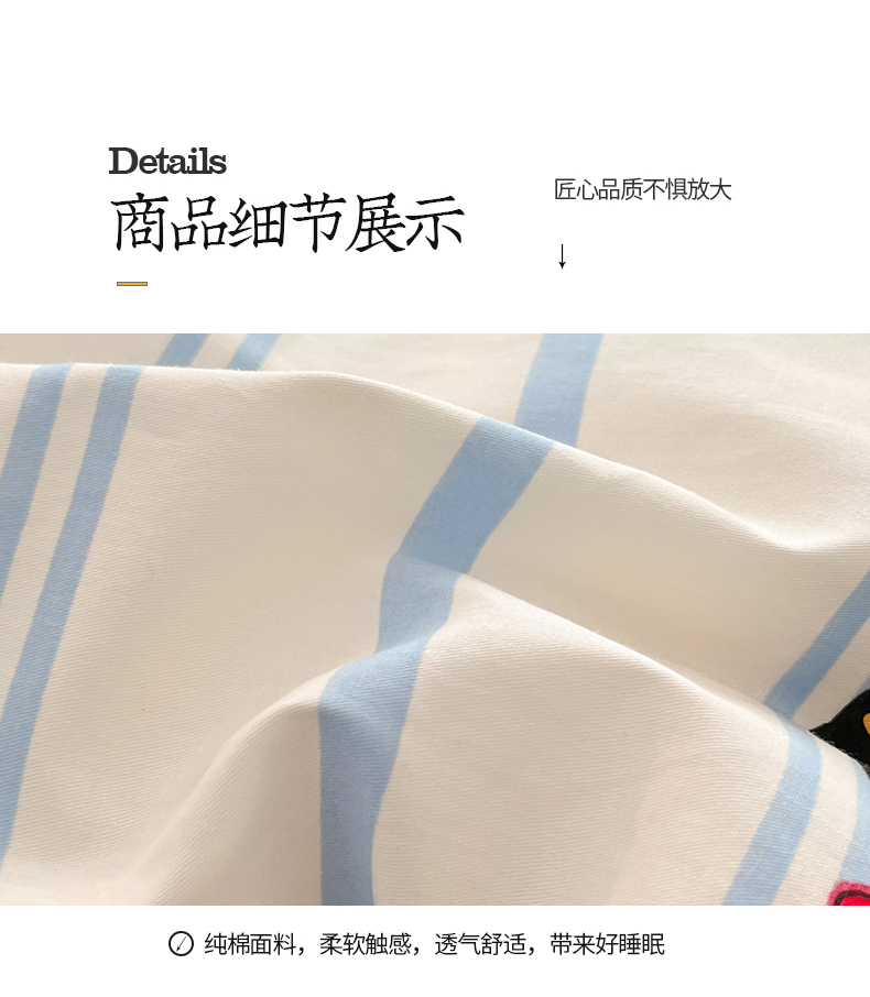 商品名称:桃子家居 2024新款纯棉13372粉梦可爱小清新卡通系列四件套 棉-蓝小猫