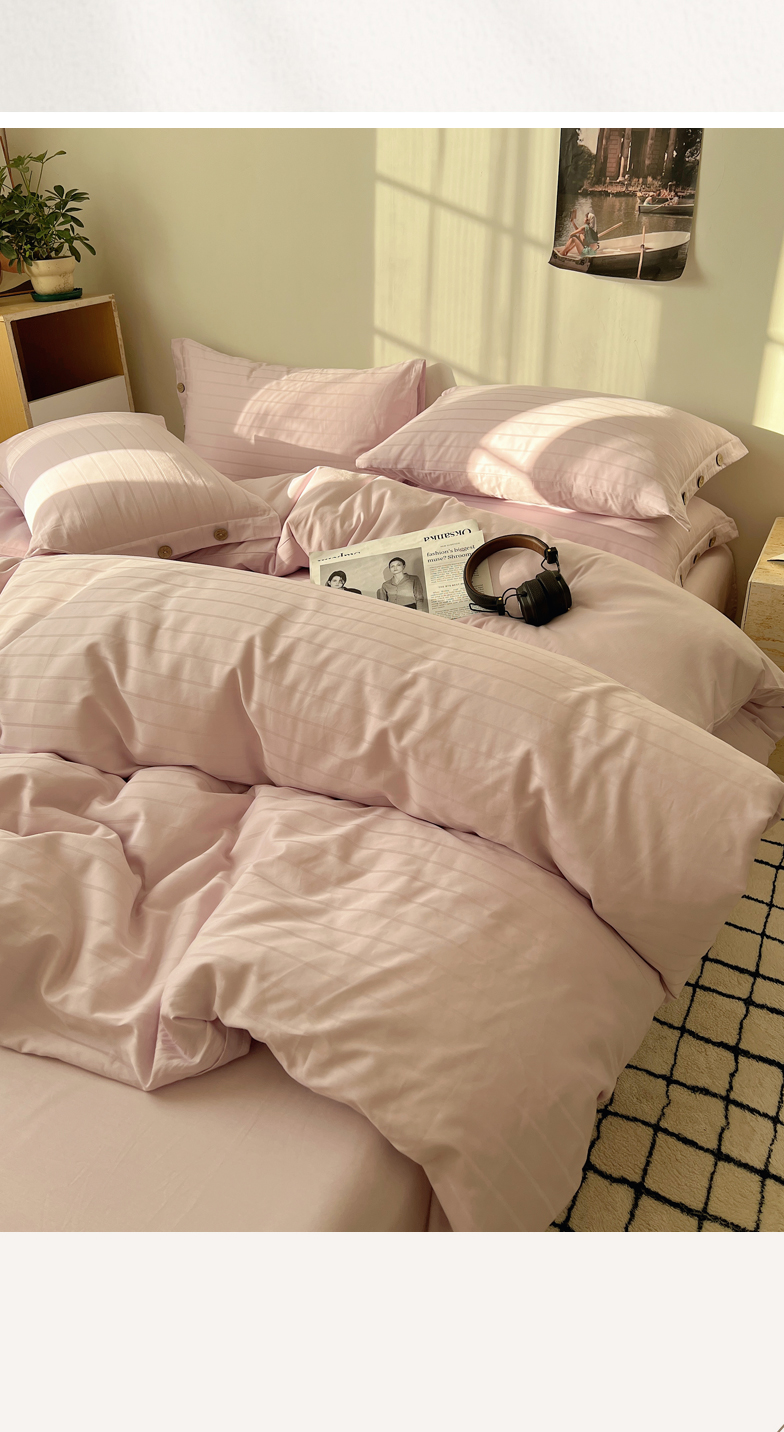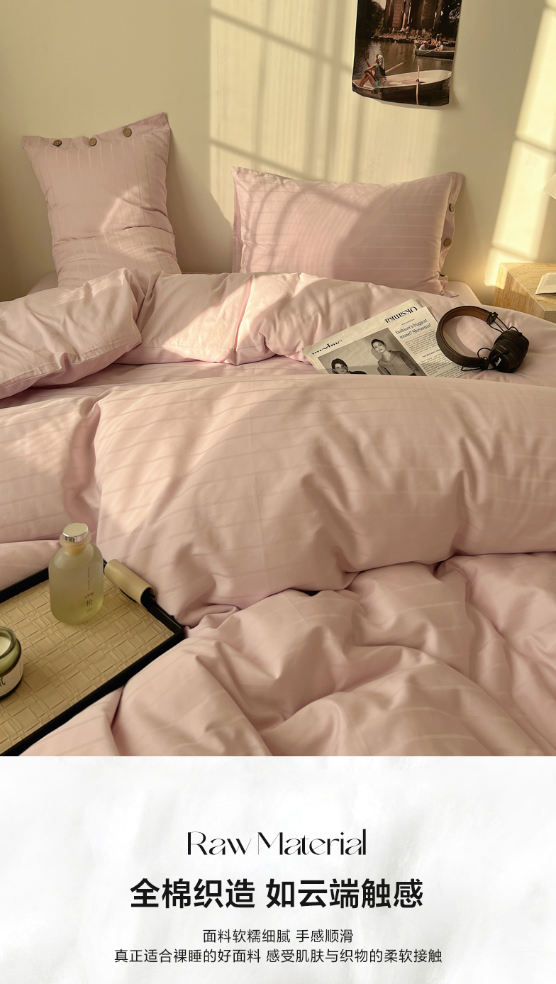 当前位置: 91家纺网 > 商品网购 > 床品套件 > 四件套 > 长绒棉四件套 > 三朵家纺 2024新款春夏无印侘寂风提花长绒棉四件套 宽条-木槿紫
