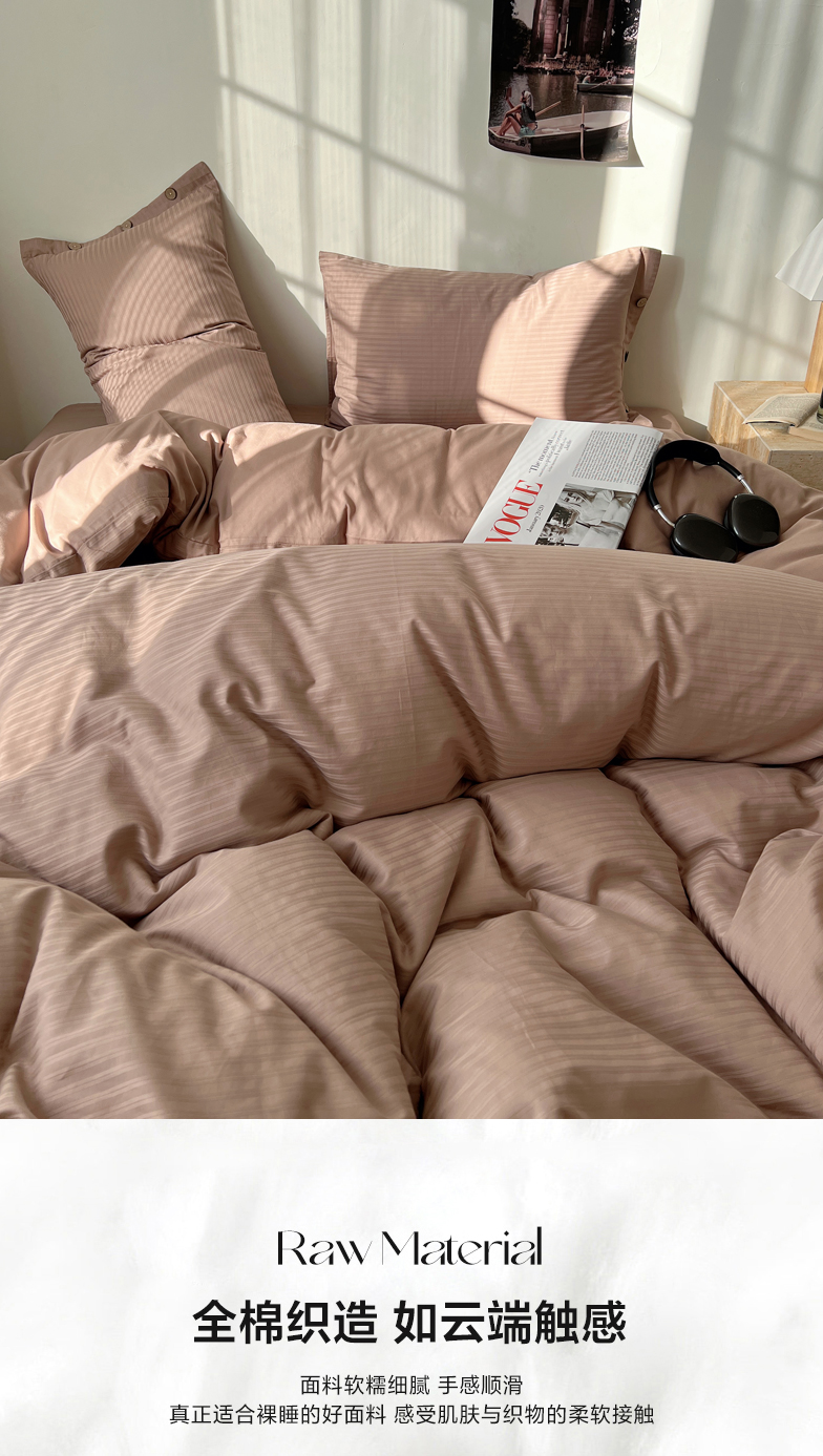 当前位置: 91家纺网 > 商品网购 > 床品套件 > 四件套 > 长绒棉四件套 > 三朵家纺 2024新款春夏无印侘寂风提花长绒棉四件套 细条-奶茶拿铁