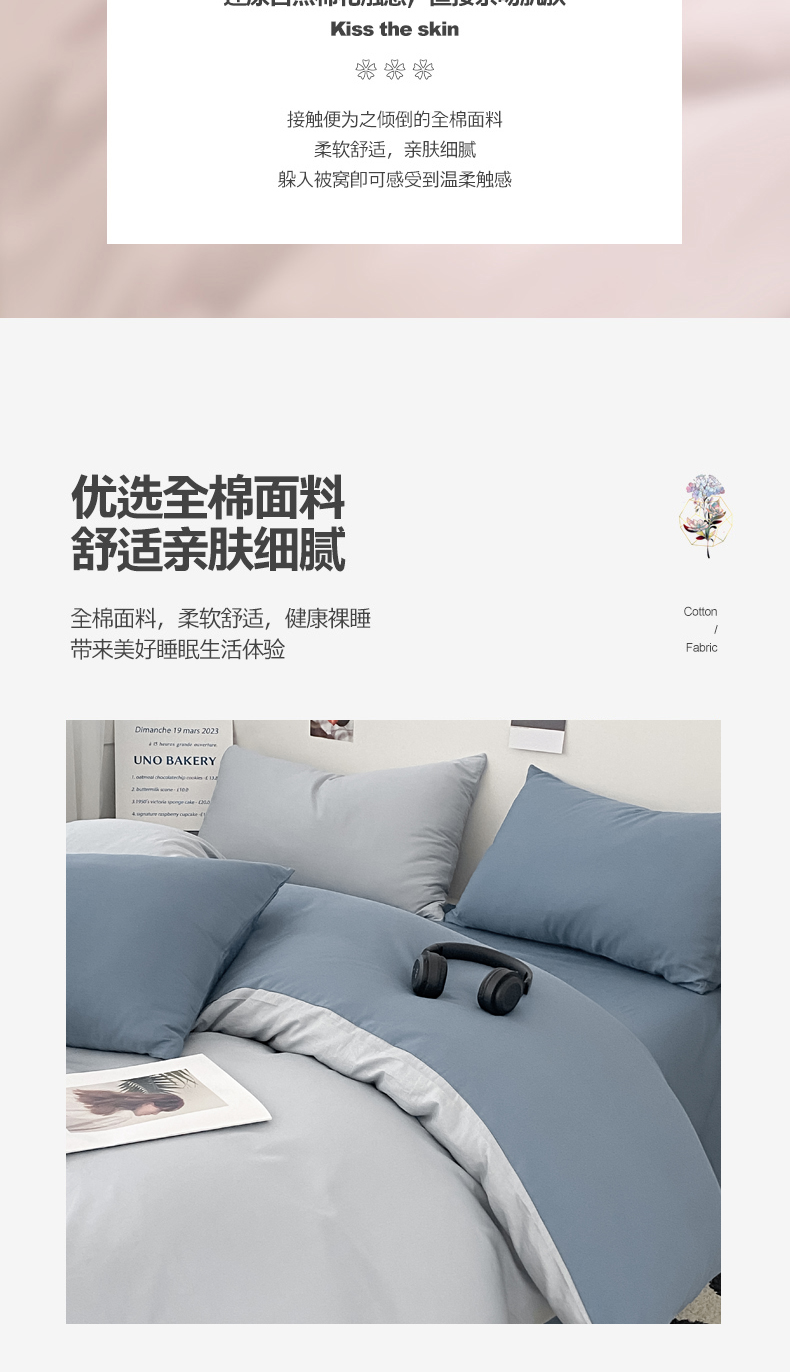 商品名称:(总)三朵家纺 2024新款春夏13372全棉精梳棉混搭四件套