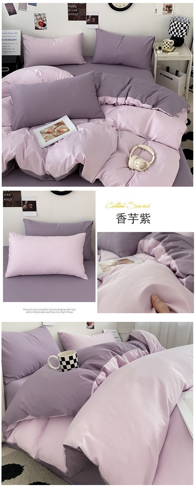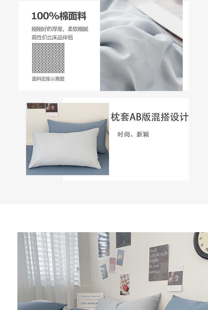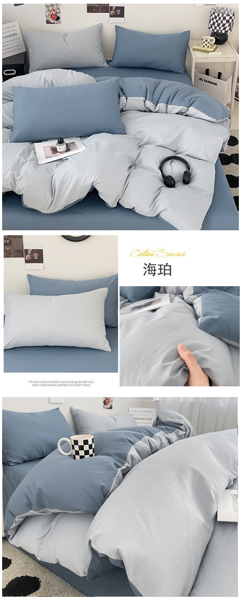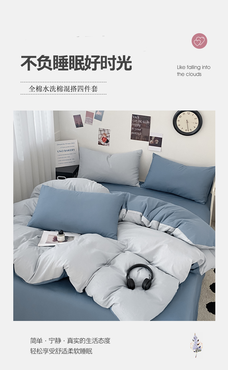 (总)三朵家纺 2026新款ins风全棉纯色双拼水洗棉四件套极简风系列,风青月白,焦糖曲奇,蓝韵雾纱,流光奶绿,抹茶奶黄,浅蓝芝士,香芋奶昔,烟墨灰,云纱可可