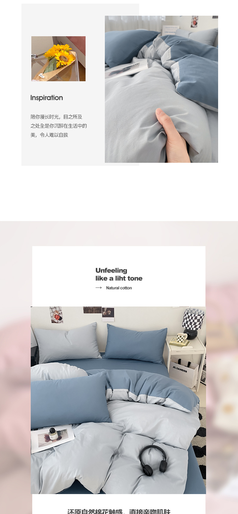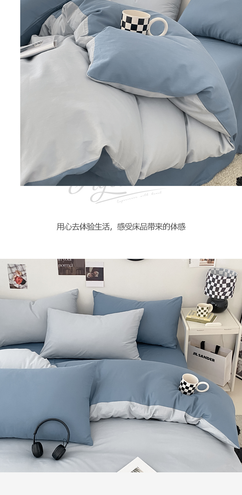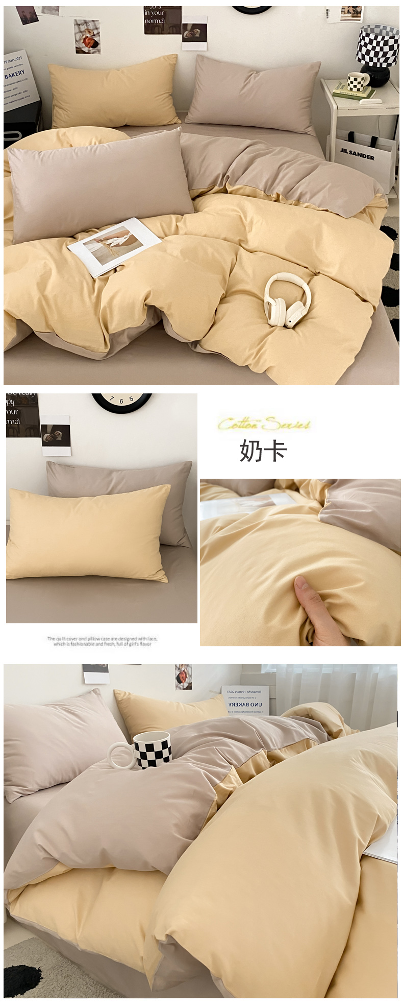 (总)三朵家纺 2026新款ins风全棉纯色双拼水洗棉四件套极简风系列,风青月白,焦糖曲奇,蓝韵雾纱,流光奶绿,抹茶奶黄,浅蓝芝士,香芋奶昔,烟墨灰,云纱可可